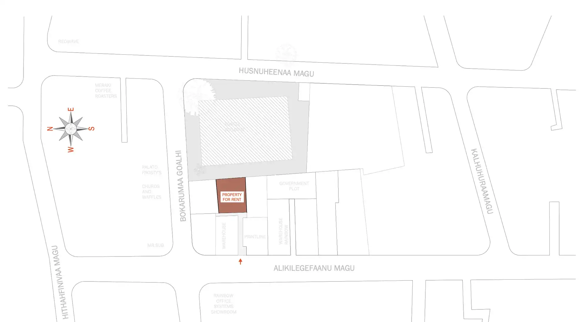 A spacious 2-storey property located at G. Raiymina, Alikilegefaanu Magu, now available for rent. The building offers 800 sqft on the ground floor and 500 sqft on the first floor, making it ideal for storage purposes with the convenience of an office or staff quarters upstairs. The building is at the end of Alikilegefaanu Magu near Muliaage.