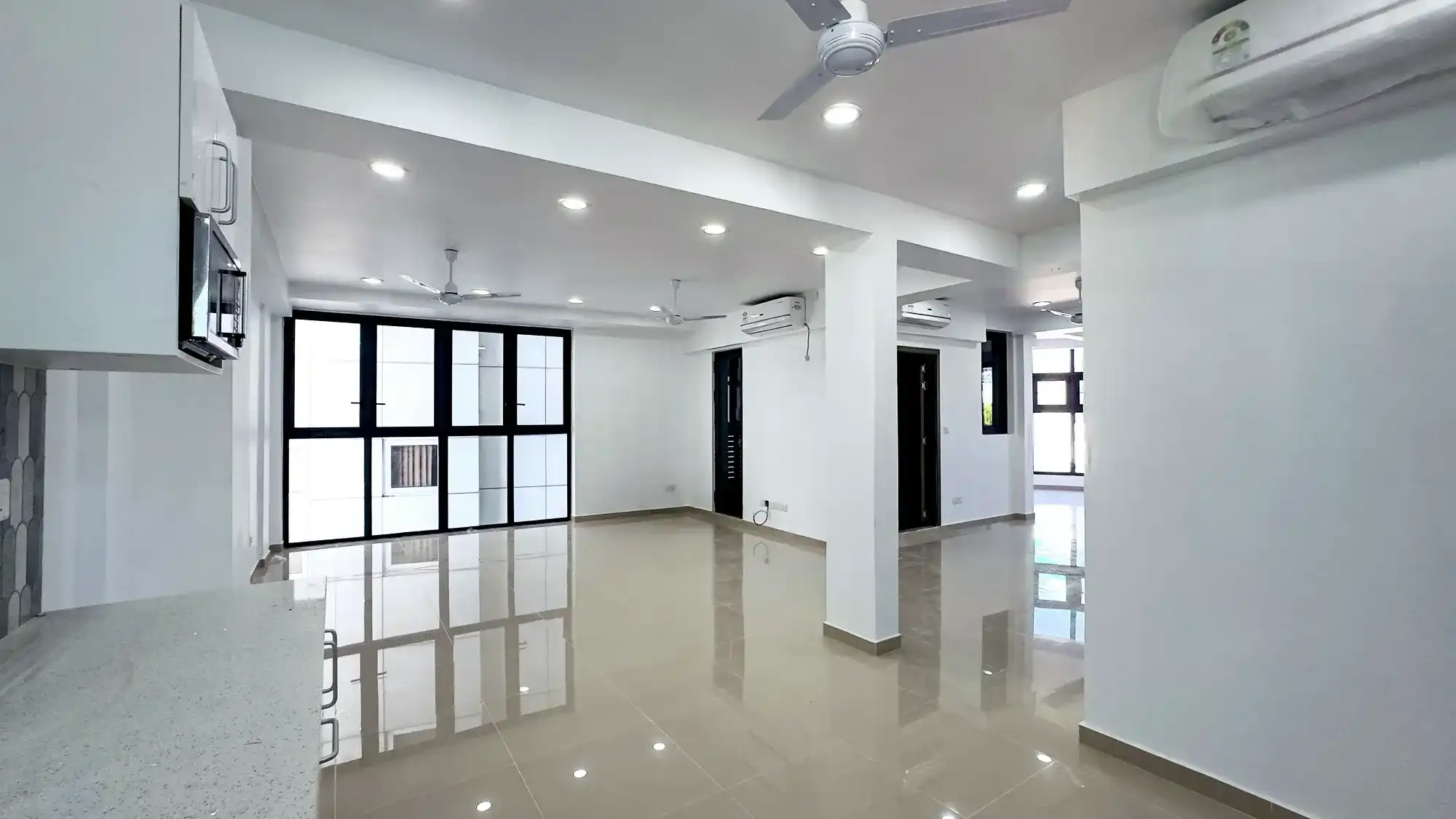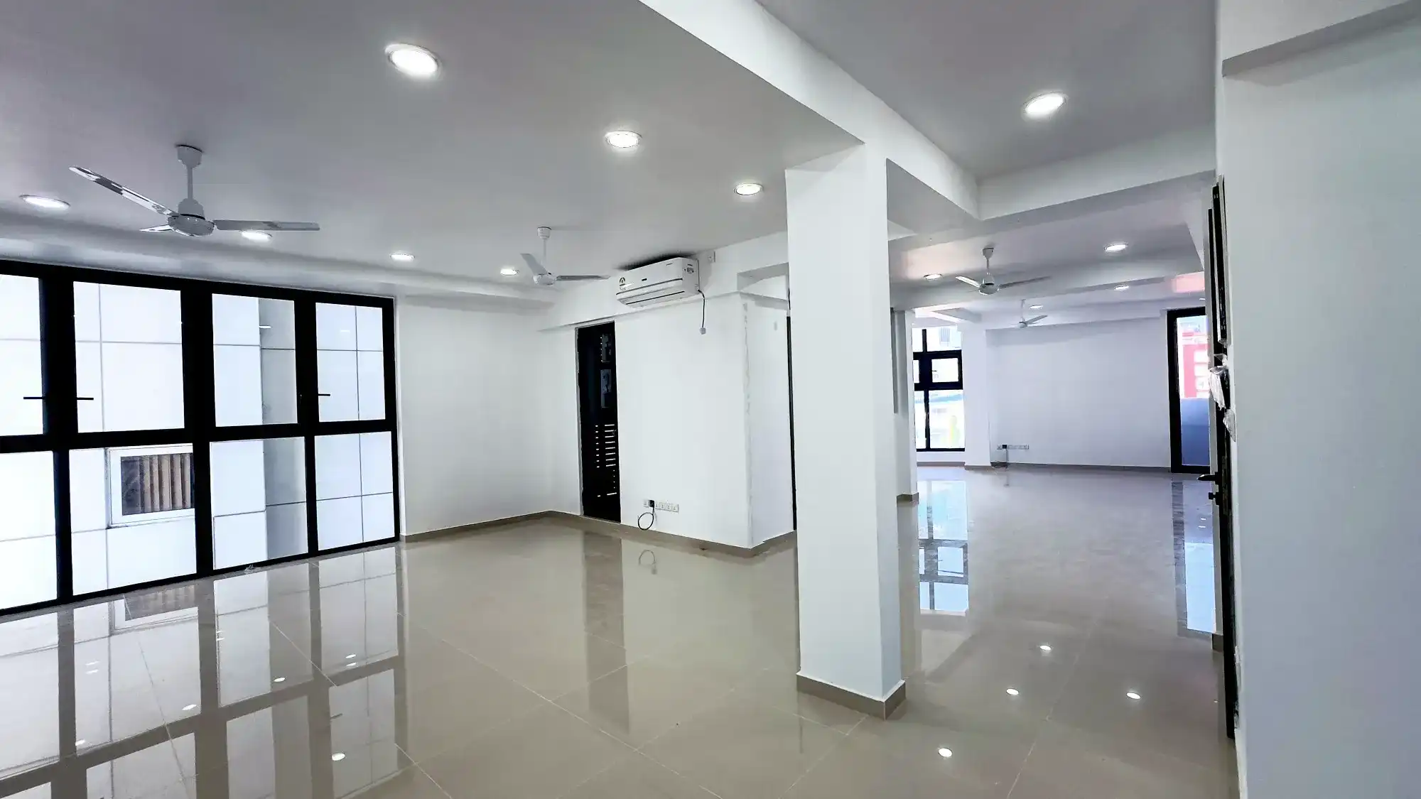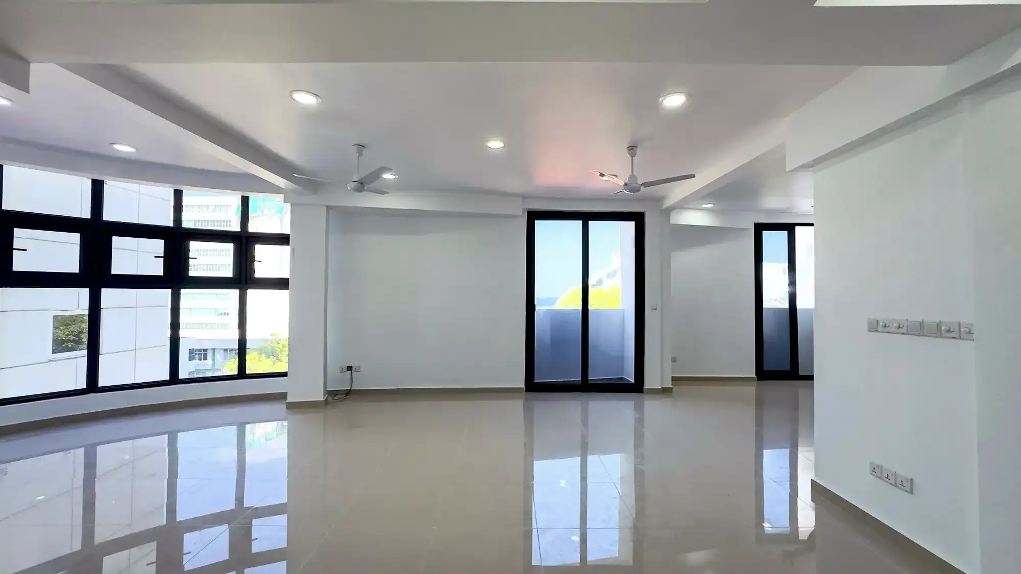 This brand-new, spacious and well-ventilated commercial unit is located on the 7th floor of a building on Sikka Goalhi, Henveyru — just behind the Parliament building. The area is highly connected and surrounded by key government offices, major banks, corporate headquarters and commercial hubs, including the People’s Majlis, Bank of Maldives, Bank of Ceylon and State Bank of India. Its central position makes it an ideal location for professional offices, consultancies or private institutions.