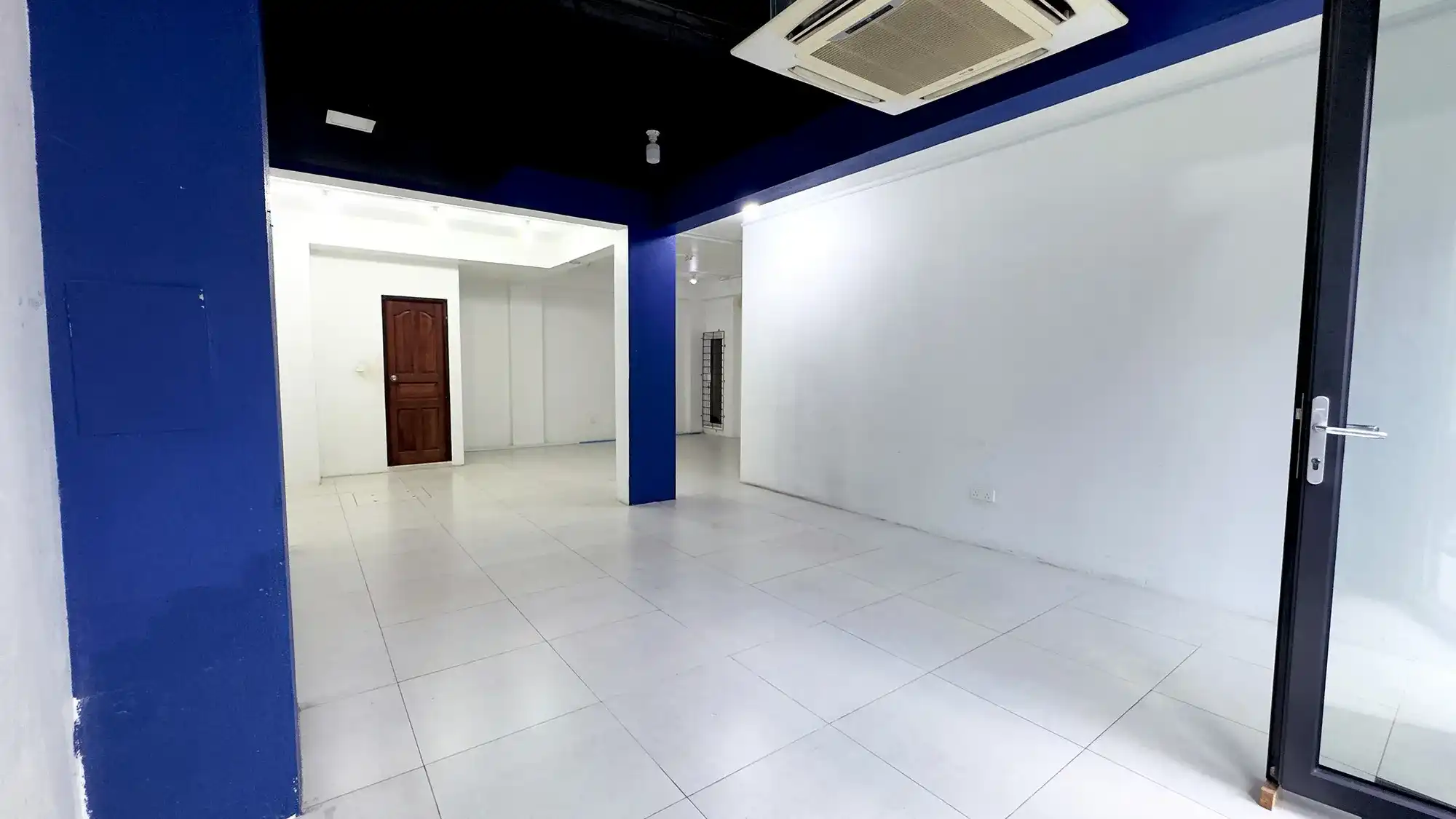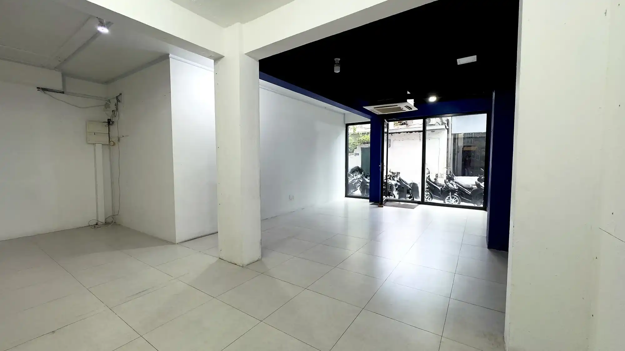 The unit occupies the ground floor and includes one toilet. It is ideal for retail shops, showrooms, or commercial display spaces. An additional adjacent ground-floor godown is also available for lease and tenants may choose to rent both units together for a combined rate of MVR 100,000 per month. Please note that the space is not available for cafés, restaurants, or takeaway operations.
