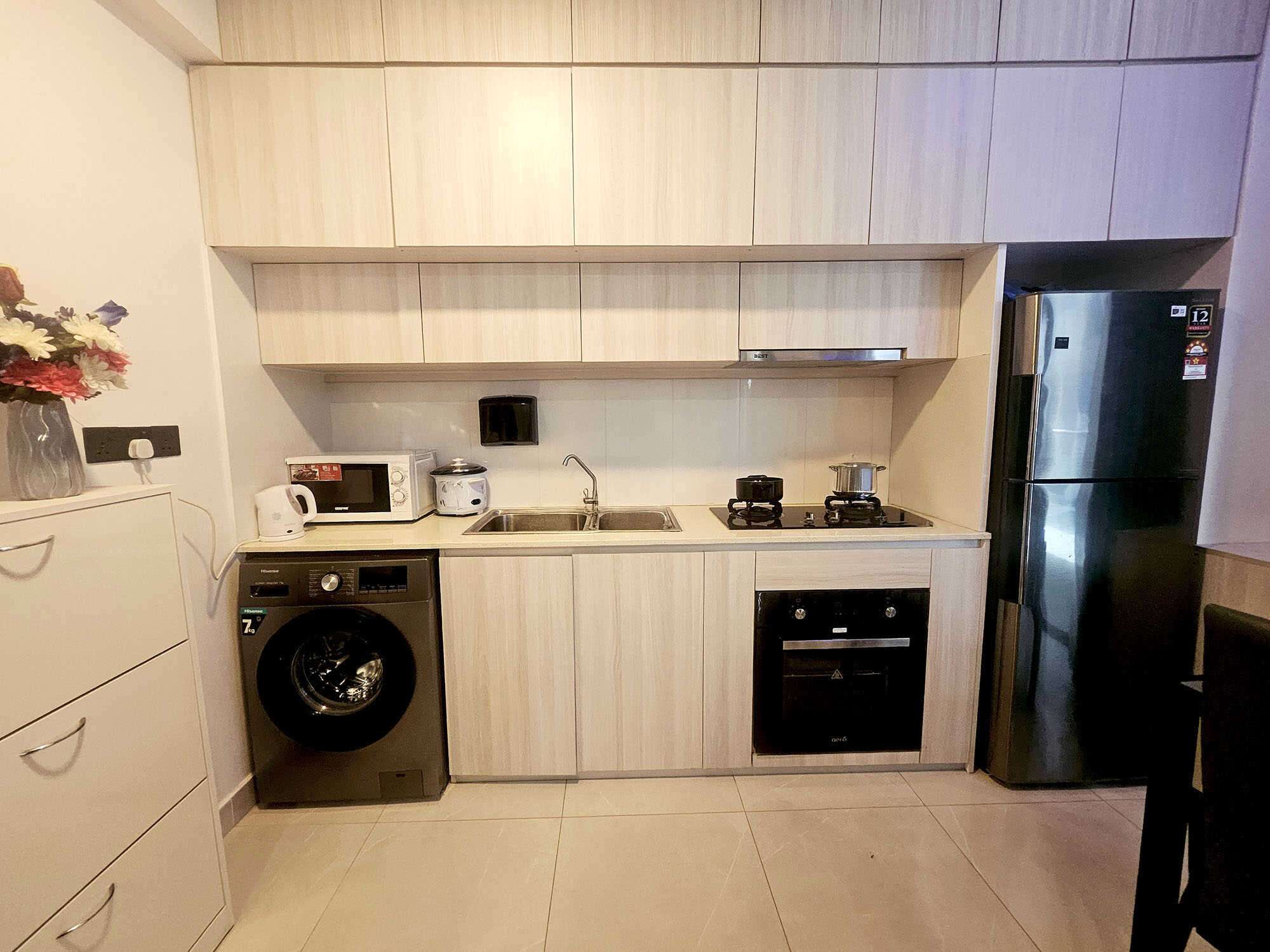 This fully furnished 1-bedroom apartment is located on the 3rd floor and features an attached bathroom, city-facing balcony and excellent natural light and ventilation throughout. The apartment is fully air-conditioned, including the kitchen and living area, and the bathroom is fitted with high-quality branded sanitary ware for both style and durability.