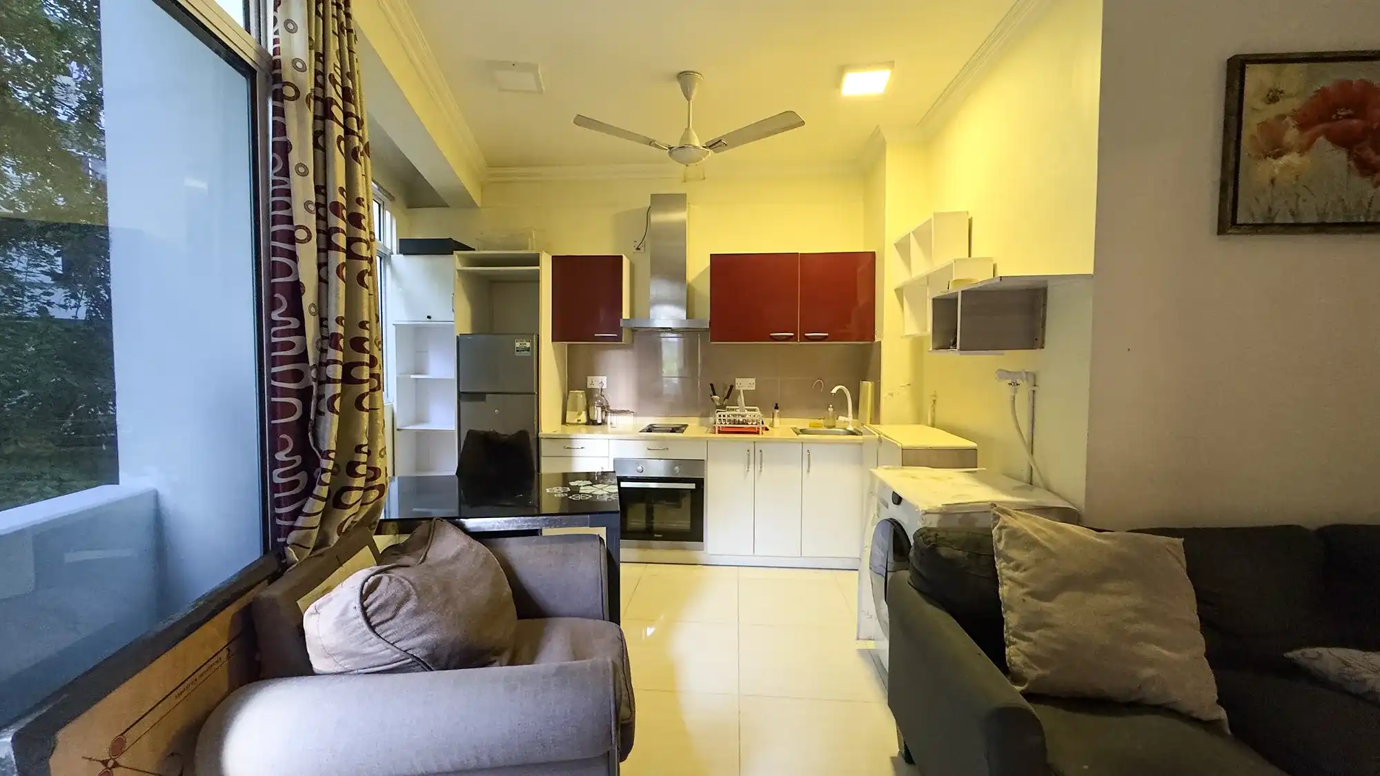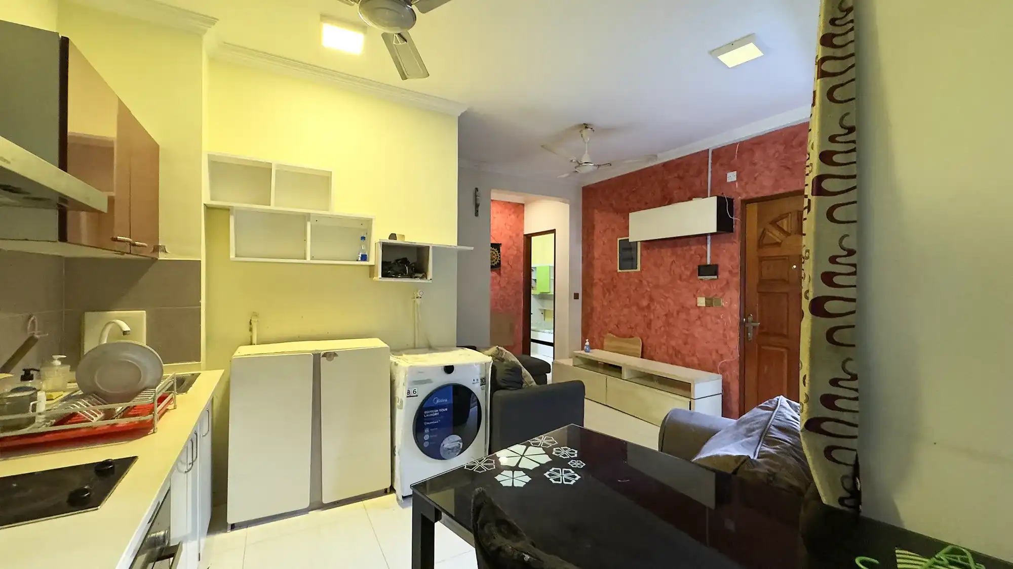 Conveniently positioned within minutes of government offices, banking hubs, shops, cafés and other daily necessities, the apartment offers excellent connectivity within the city. It is ideal for a couple with a child looking for a practical living space in a well-connected area of Male'.