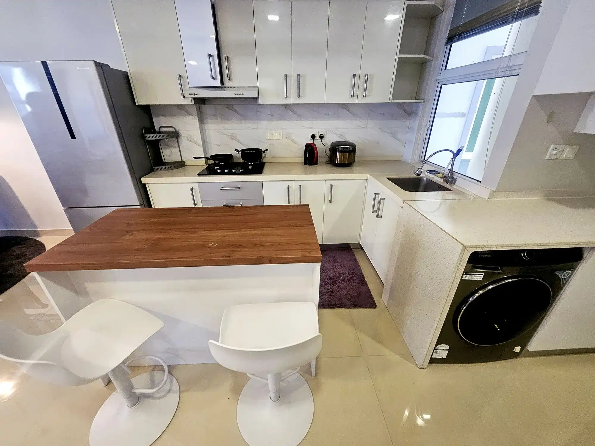 The apartment features an open kitchen layout with a dedicated laundry area, and is fully air-conditioned. Ideal for couples or small families looking for a fresh and functional living space in a well-connected area of Hulhumale’.