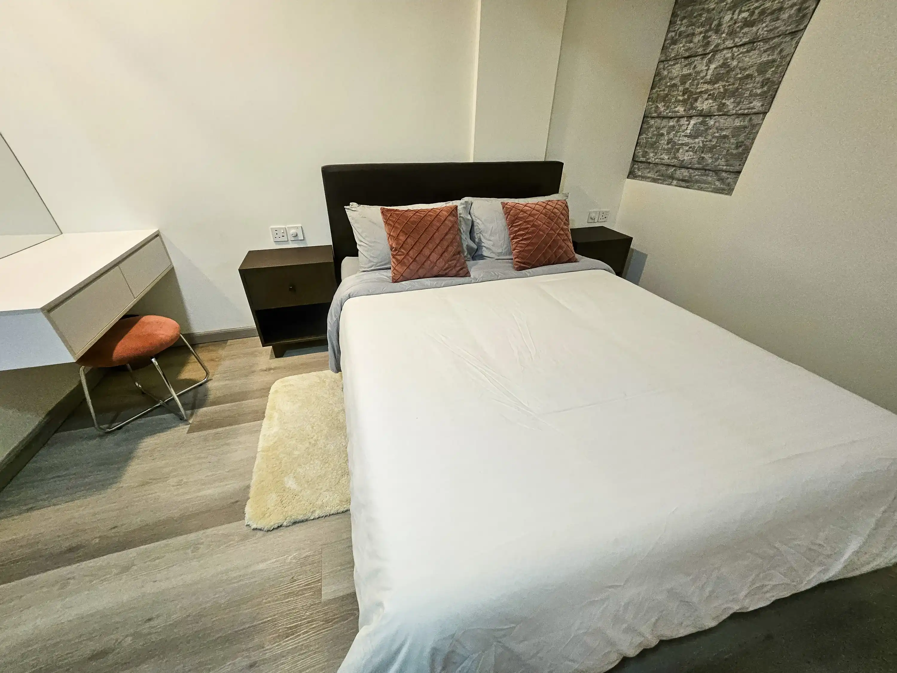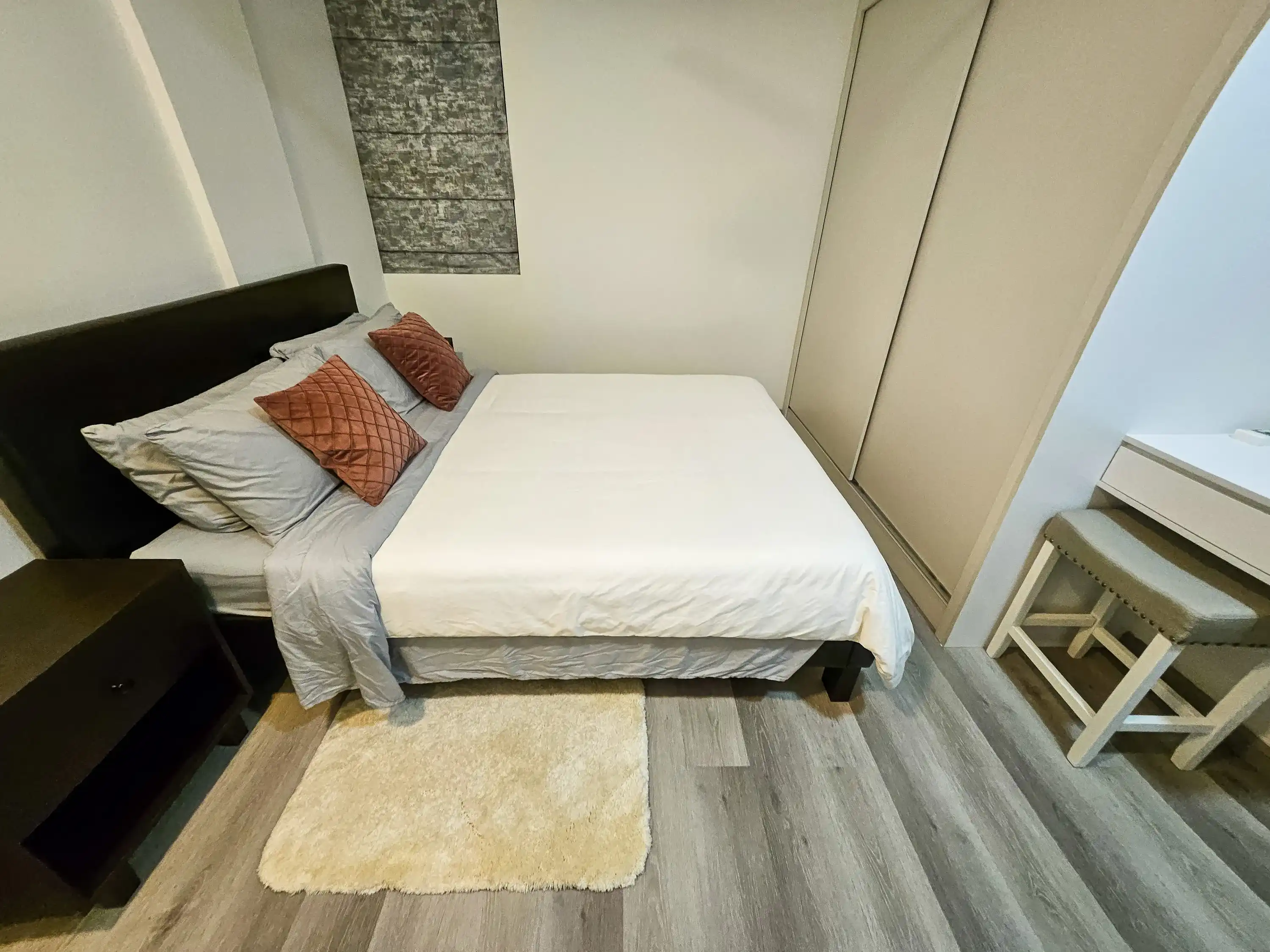 This fully furnished 2-bedroom, 3-bathroom apartment is located on the 8th floor of the condominium and features attached bathrooms for both bedrooms. The entire unit is fully air-conditioned and includes a separate laundry area along with a city-view balcony, offering both comfort and privacy. Ideal for residents seeking modern urban living with access to luxury amenities.