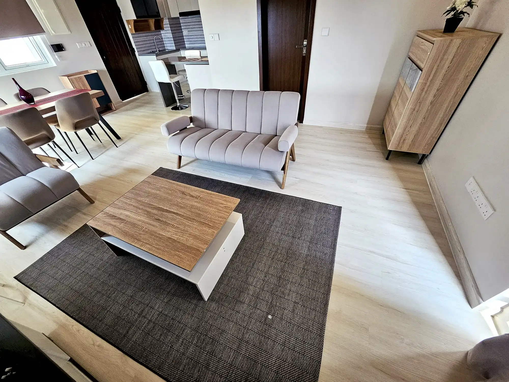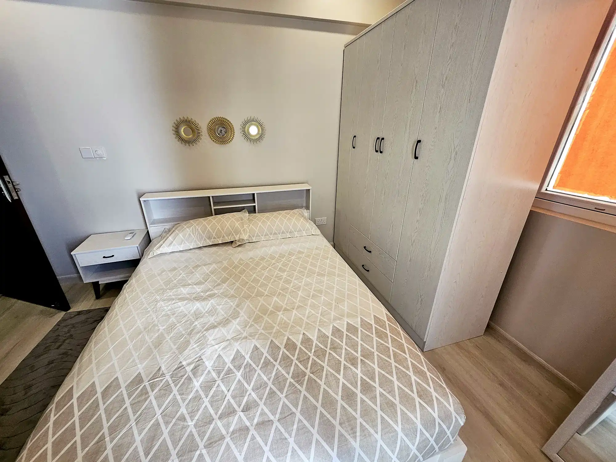 This well-ventilated 2-bedroom apartment is located on the 7th floor and features attached bathrooms in both bedrooms. The apartment comes fully furnished and is fully air-conditioned throughout. It includes an open kitchen layout with a separate laundry area and a balcony offering excellent city views over Hulhumale' Phase 1, making it an ideal choice for small families or professionals seeking convenient and secure condominium living.