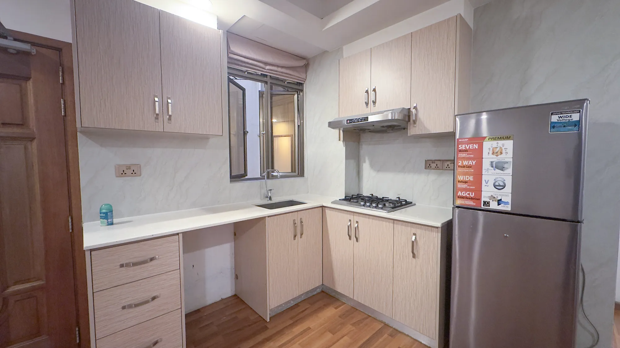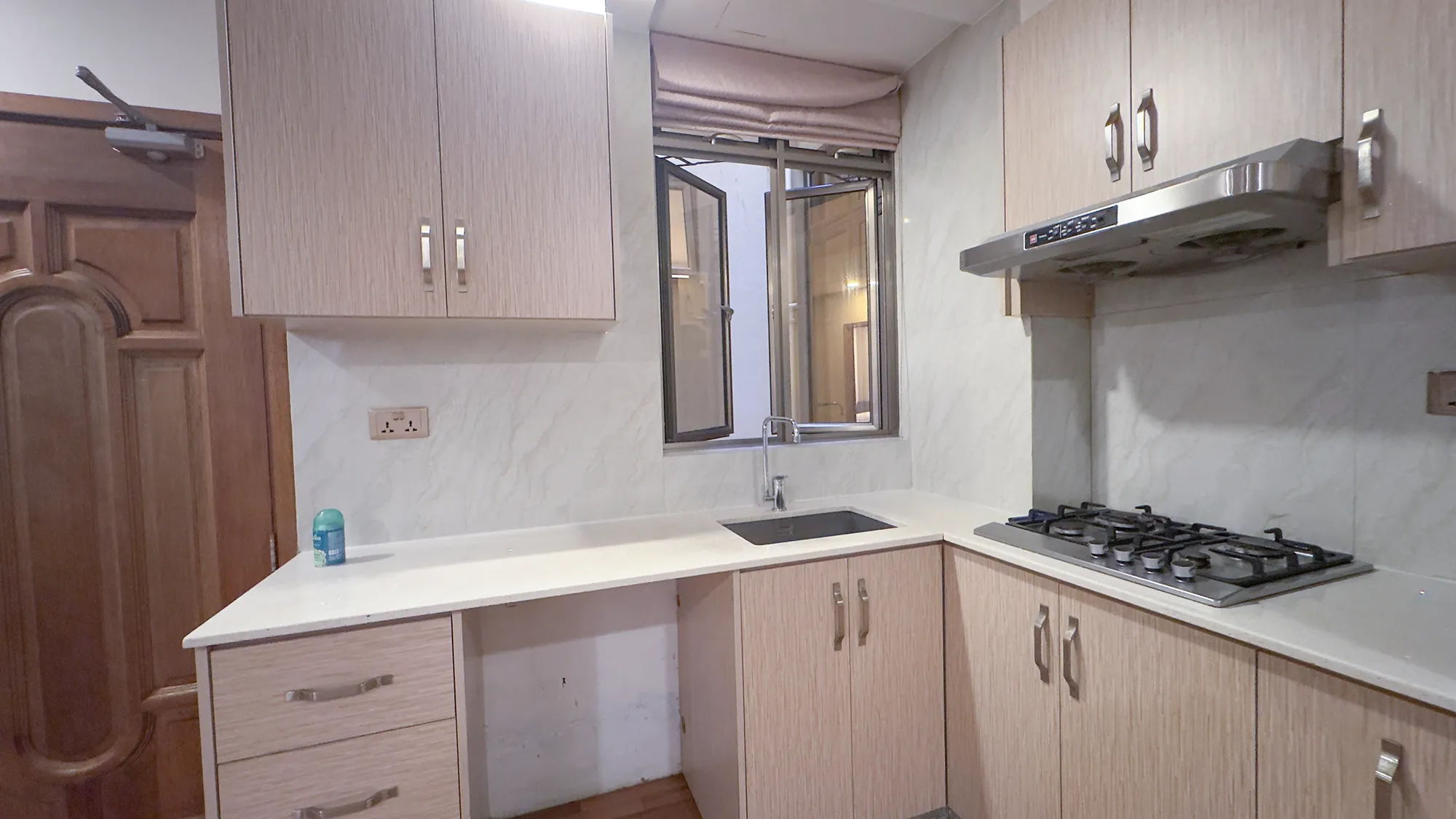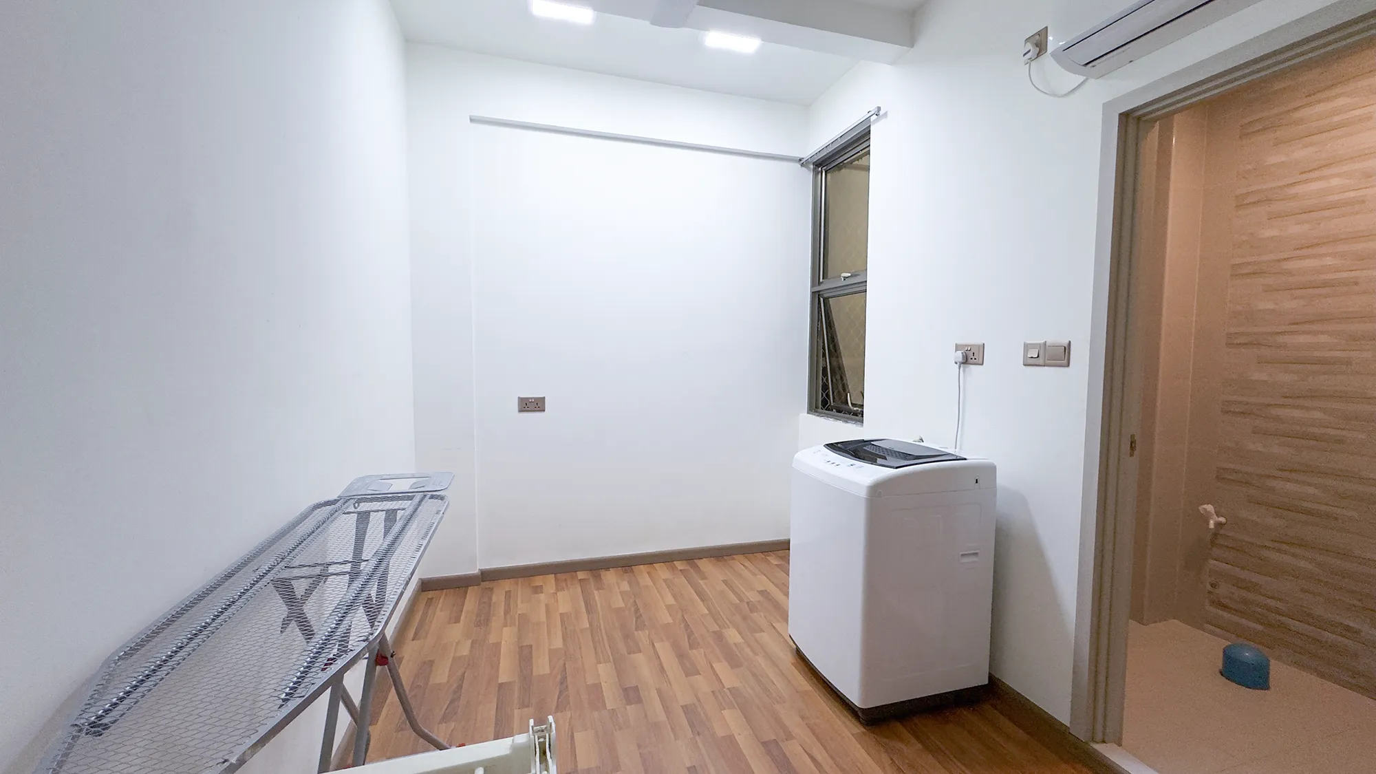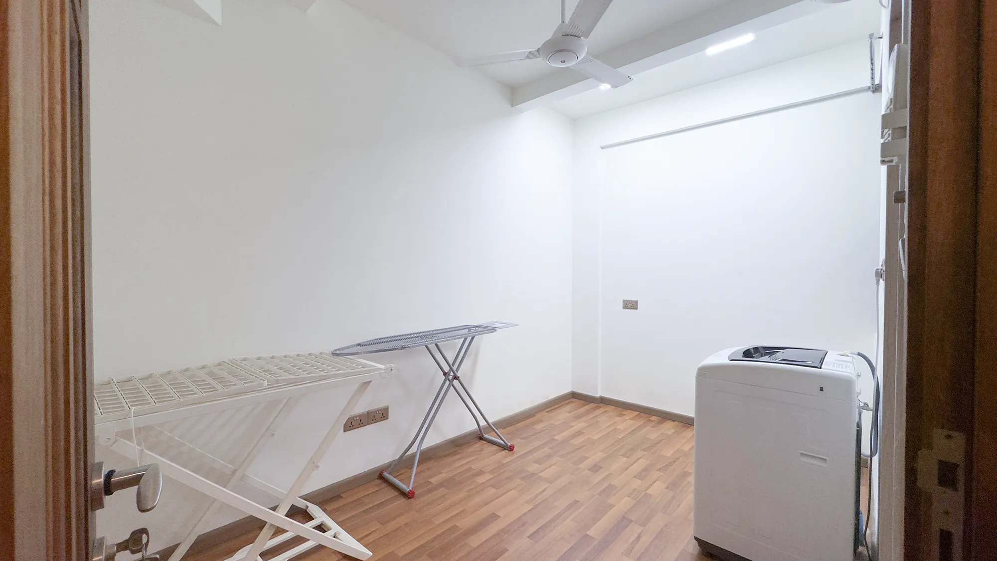This spacious 860 sqft apartment is located on the 8th floor of a mixed-use building, with Breadmatters Café occupying the ground and first floors. The apartment features two spacious bedrooms with attached bathrooms, an open-plan living and dining area and a separate laundry area with an additional store room. While the apartment does not include a balcony, it is fully air-conditioned throughout and finished with elegant parquet flooring, offering both style and comfort.