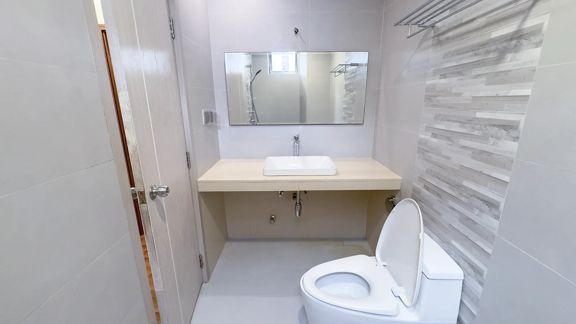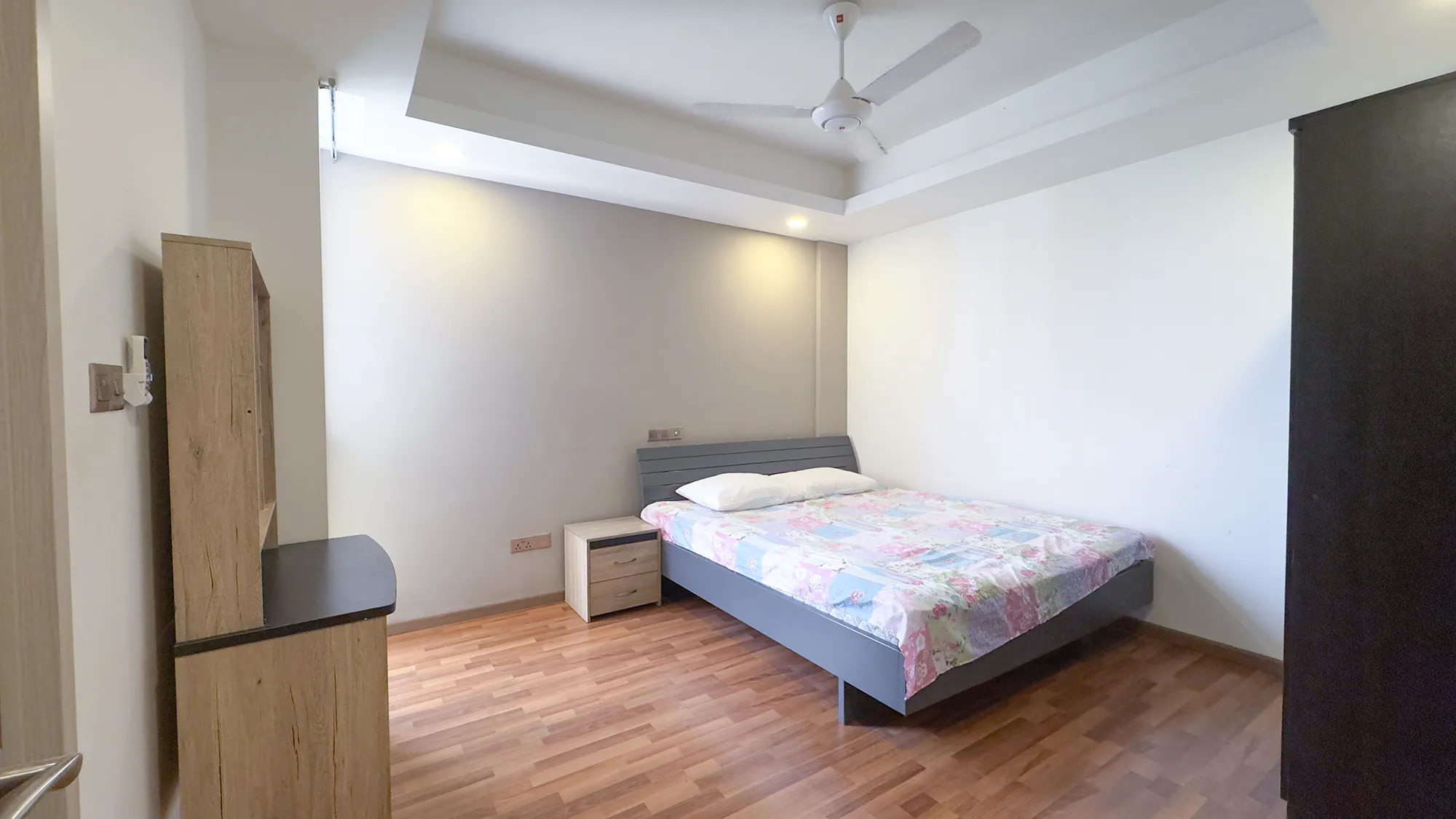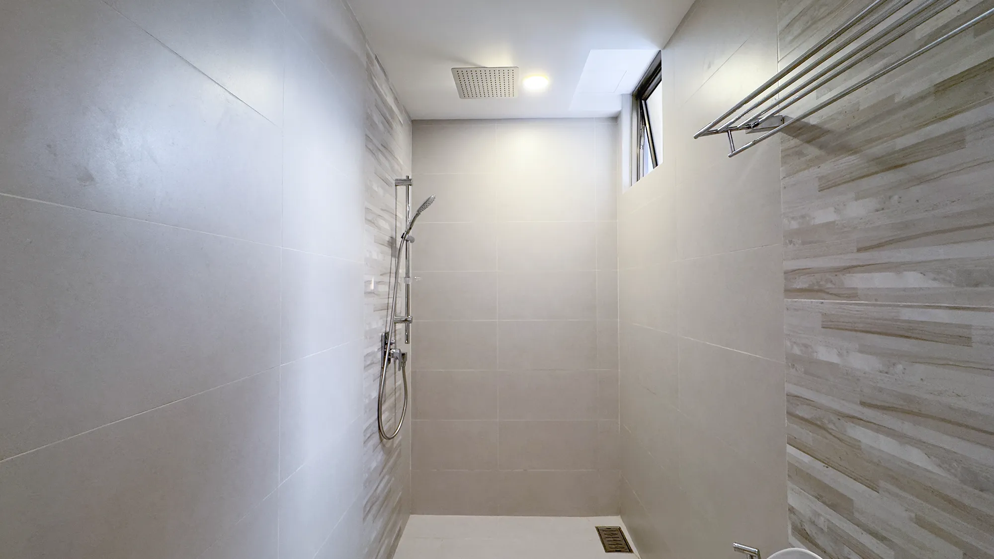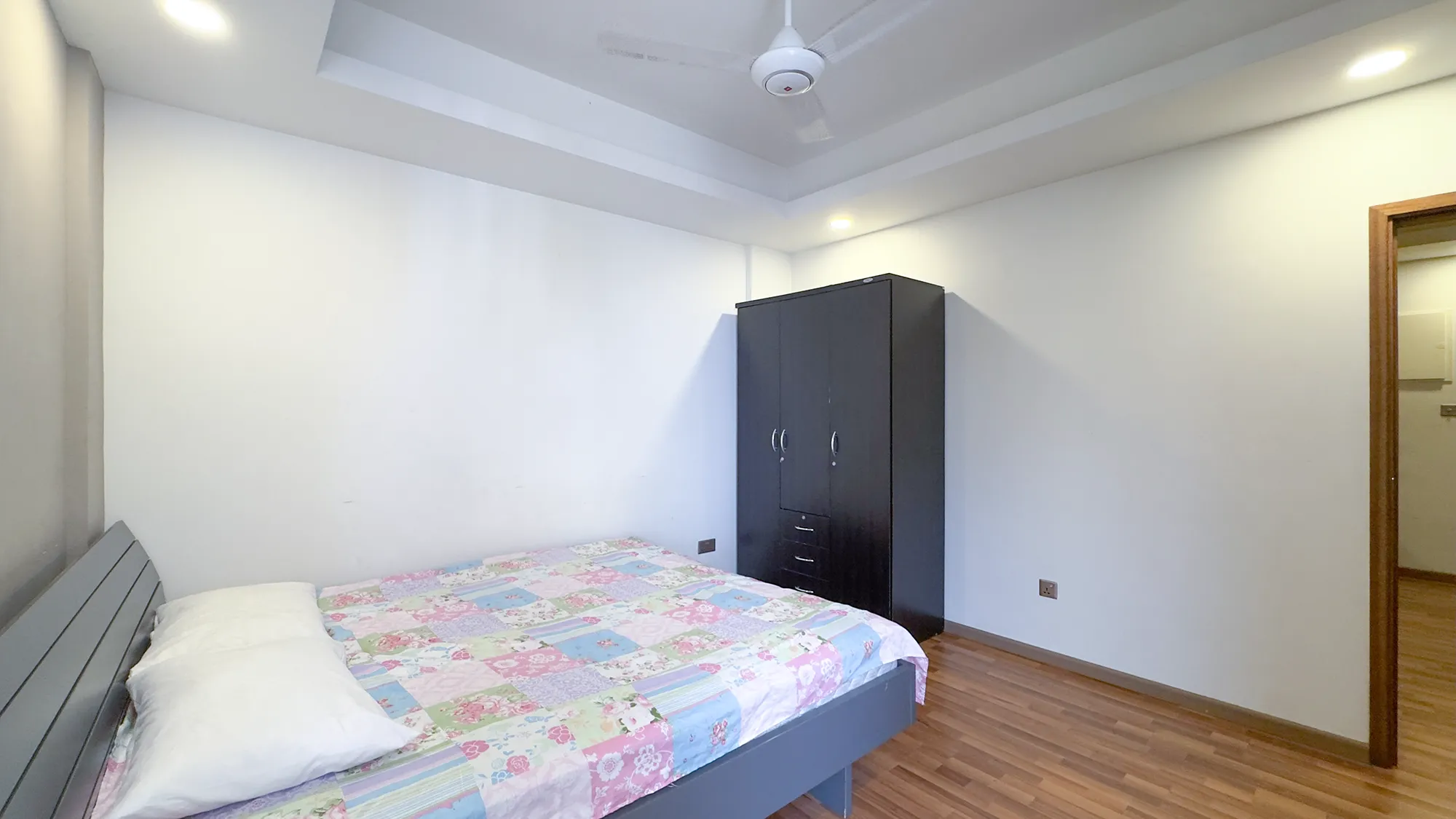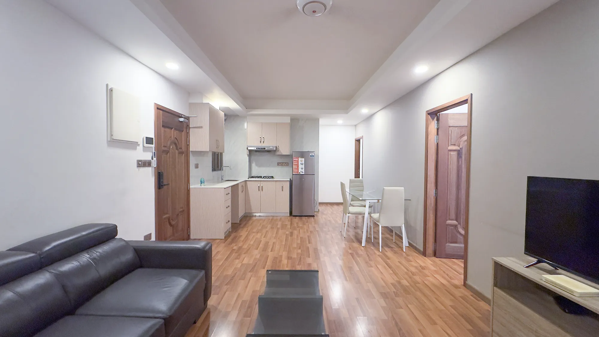 This spacious 860 sqft apartment is located on the 8th floor of a mixed-use building, with Breadmatters Café occupying the ground and first floors. The apartment features two spacious bedrooms with attached bathrooms, an open-plan living and dining area and a separate laundry area with an additional store room. While the apartment does not include a balcony, it is fully air-conditioned throughout and finished with elegant parquet flooring, offering both style and comfort.