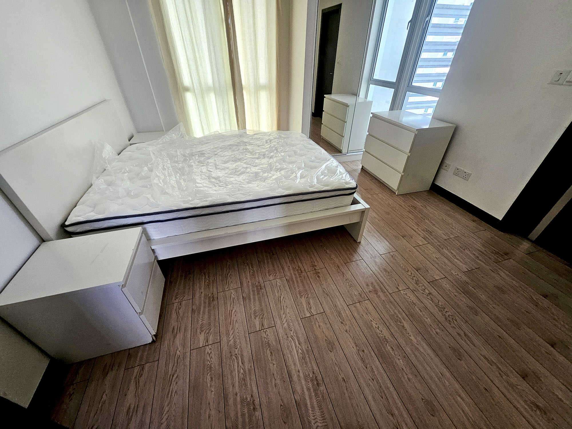 This 6th floor, 2+1 bedroom apartment comes with attached bathrooms and is fully air-conditioned to ensure your comfort. The closed kitchen is equipped with all the modern amenities you need, including an oven, microwave, fridge, stove, hood, cutlery and crockery. You will also find a separate laundry area, multiple balconies and excellent ventilation in all areas.