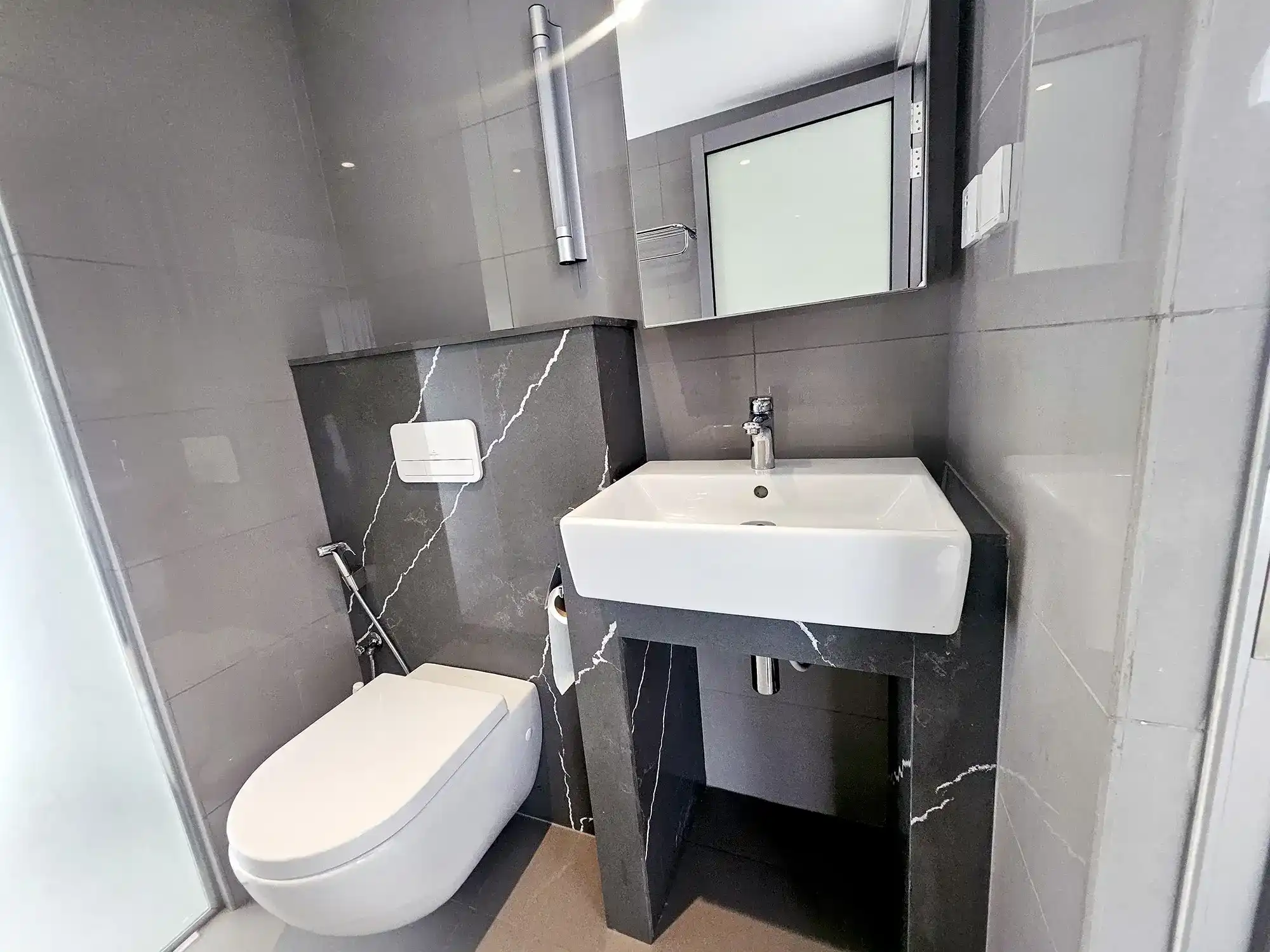 This fully furnished 2+1 bedroom apartment is located on the 4th floor of the development. All bedrooms feature attached bathrooms and the entire apartment is fully air-conditioned to ensure year-round comfort. The closed kitchen is fitted with high-end appliances including an oven, microwave, refrigerator, dishwasher, stove, hood, along with cutlery and crockery. The apartment also includes a separate laundry area, a city-view balcony and excellent natural ventilation throughout, creating a bright and comfortable living space.