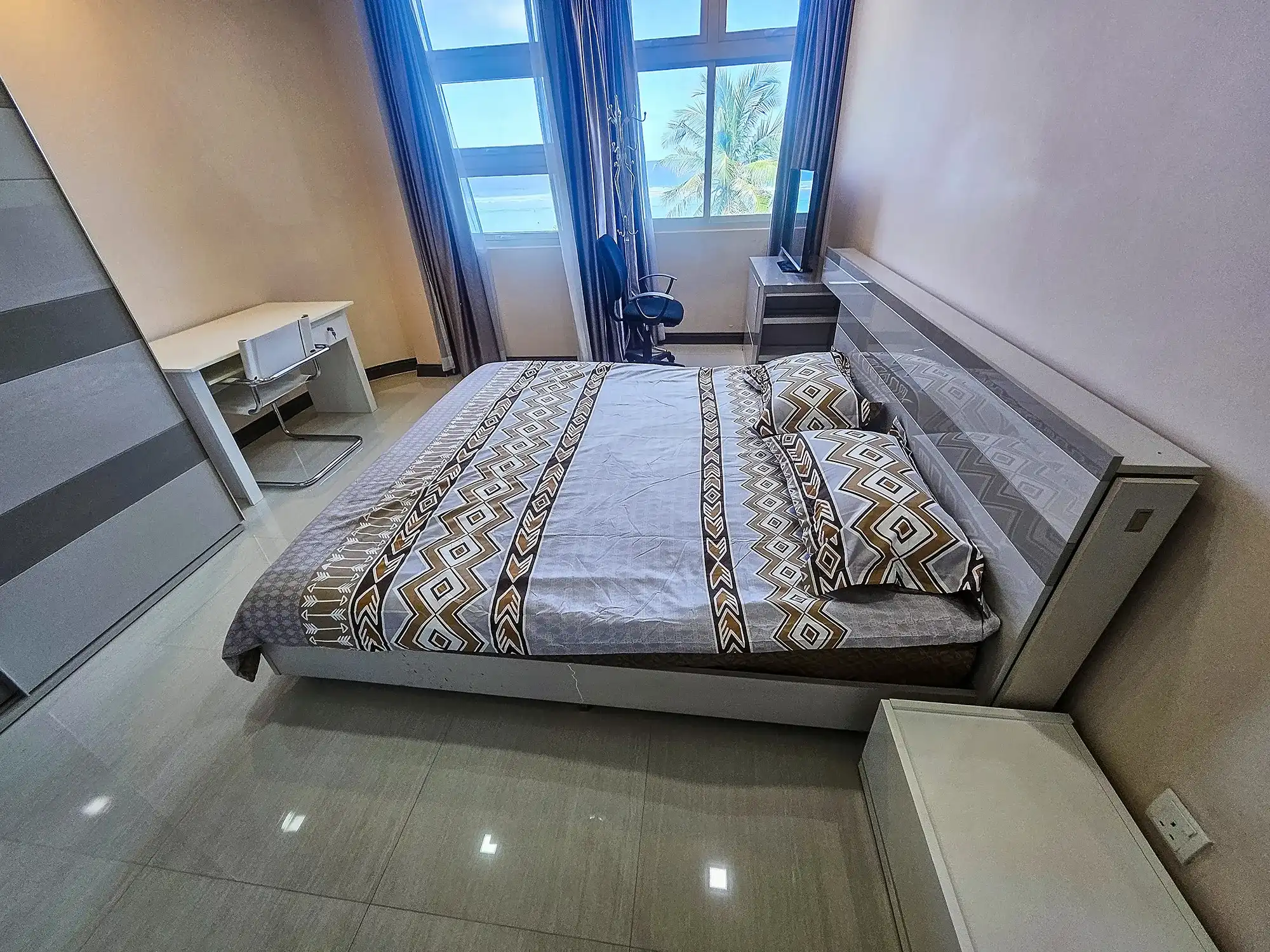 This premium beachfront apartment is located in a prime area of Hulhumale’, near Sonee Hardware, offering unobstructed sunrise views across the ocean. Perfectly positioned on Beach Road, the building provides direct access to the beach, making it an exceptional residence for those seeking both comfort and coastal living.