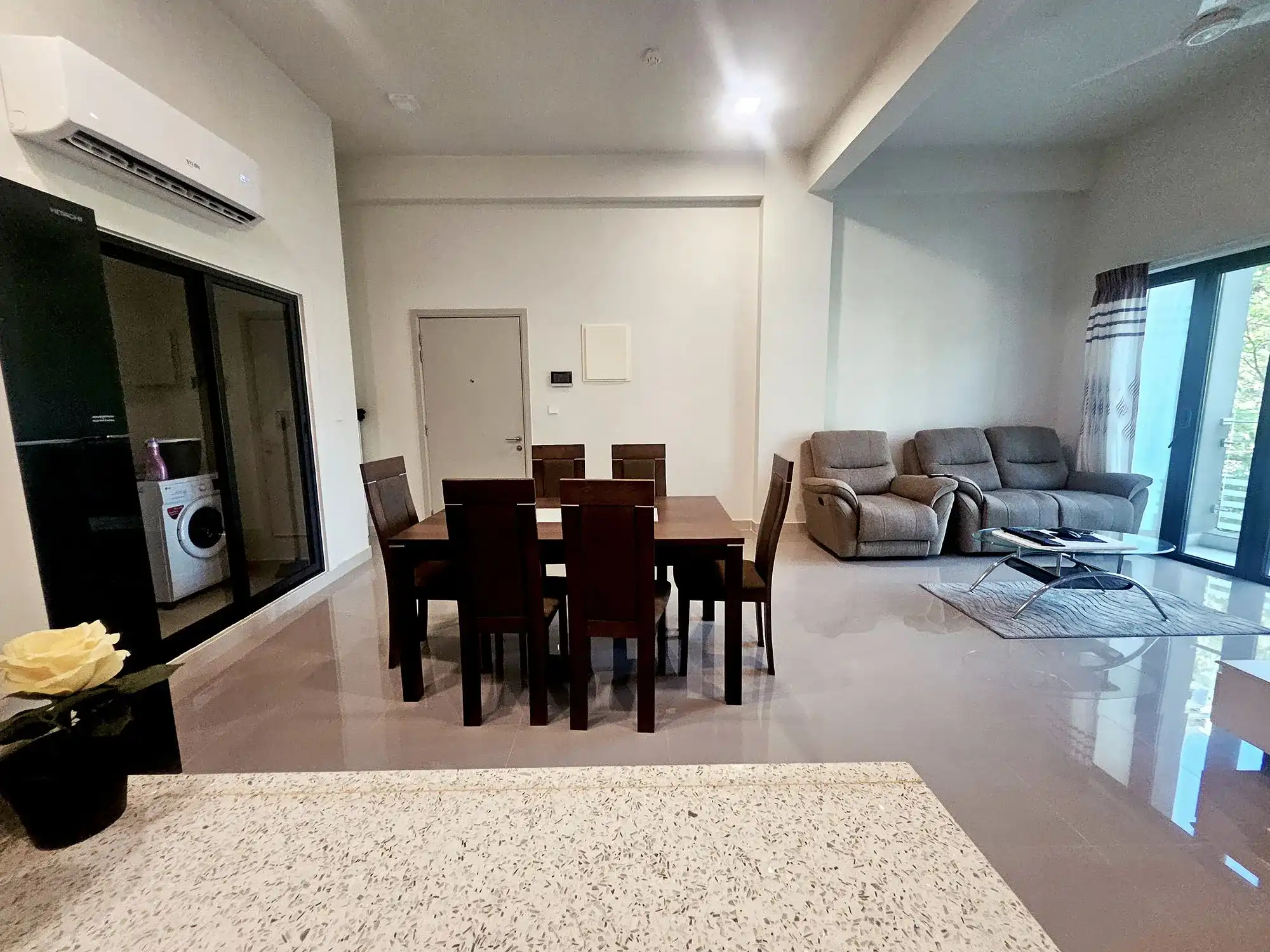 Located on the 1st floor, this 3-bedroom apartment features attached bathrooms for each bedroom. The unit is fully air-conditioned and includes a large city view balcony, a functional open kitchen and a separate laundry area, making it both practical and relaxing to live in.