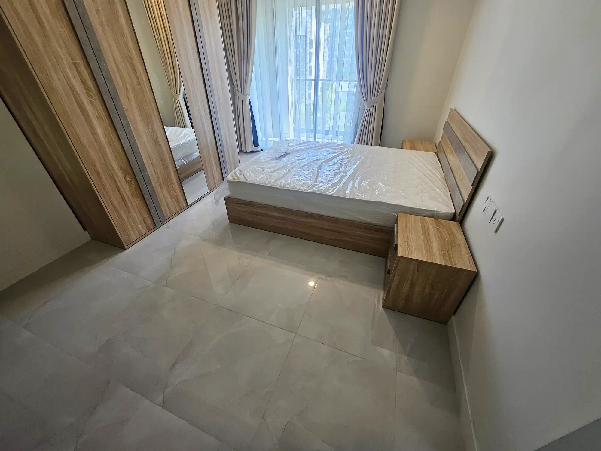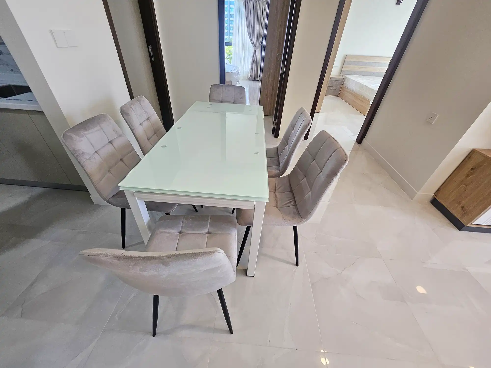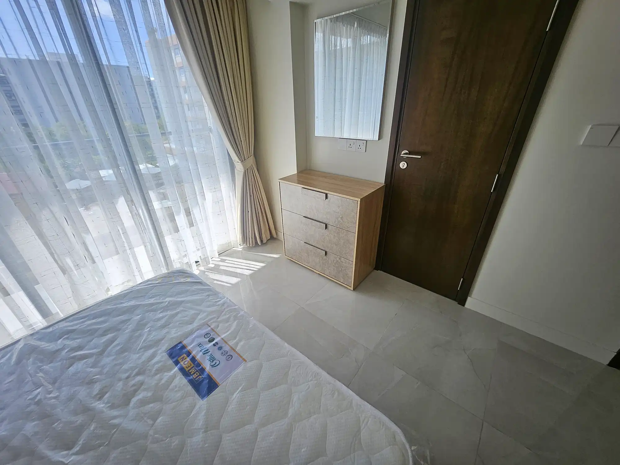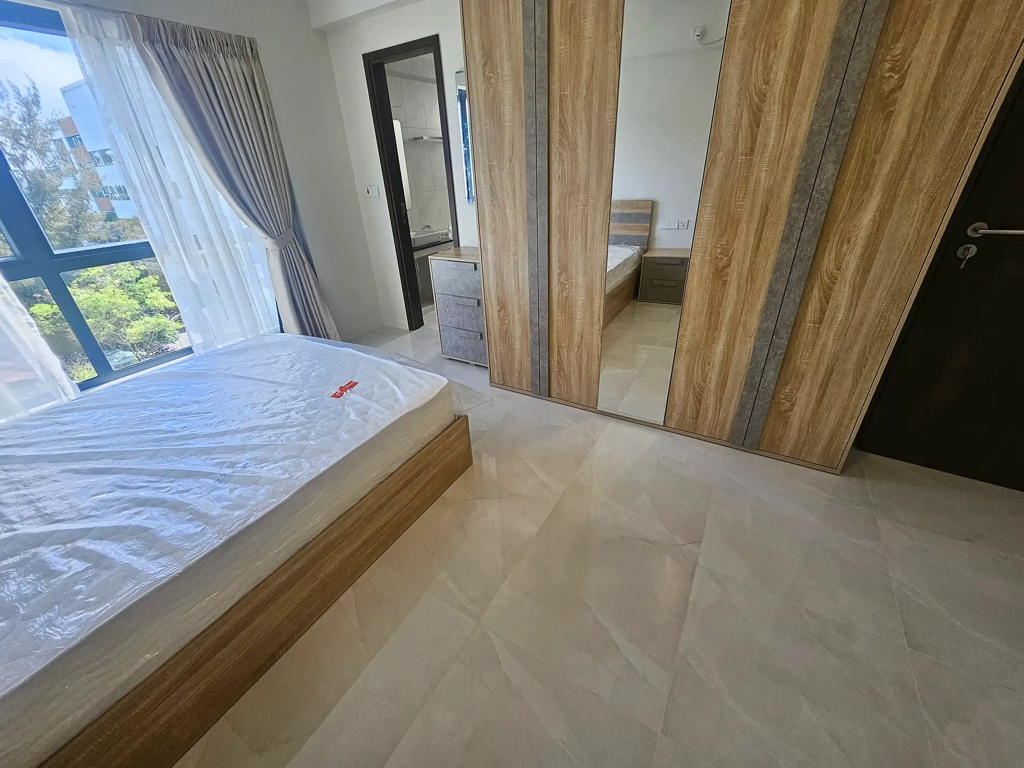 This 3-bedroom apartment, located on the 4th floor, features thoughtfully designed interiors with a contemporary style. Each bedroom has an attached bathroom fitted with branded sanitary ware, and the entire apartment is fully air-conditioned. The unit includes a separate laundry room, a TV rack in the living area, and three spacious city-view balconies that provide abundant natural light and ventilation.