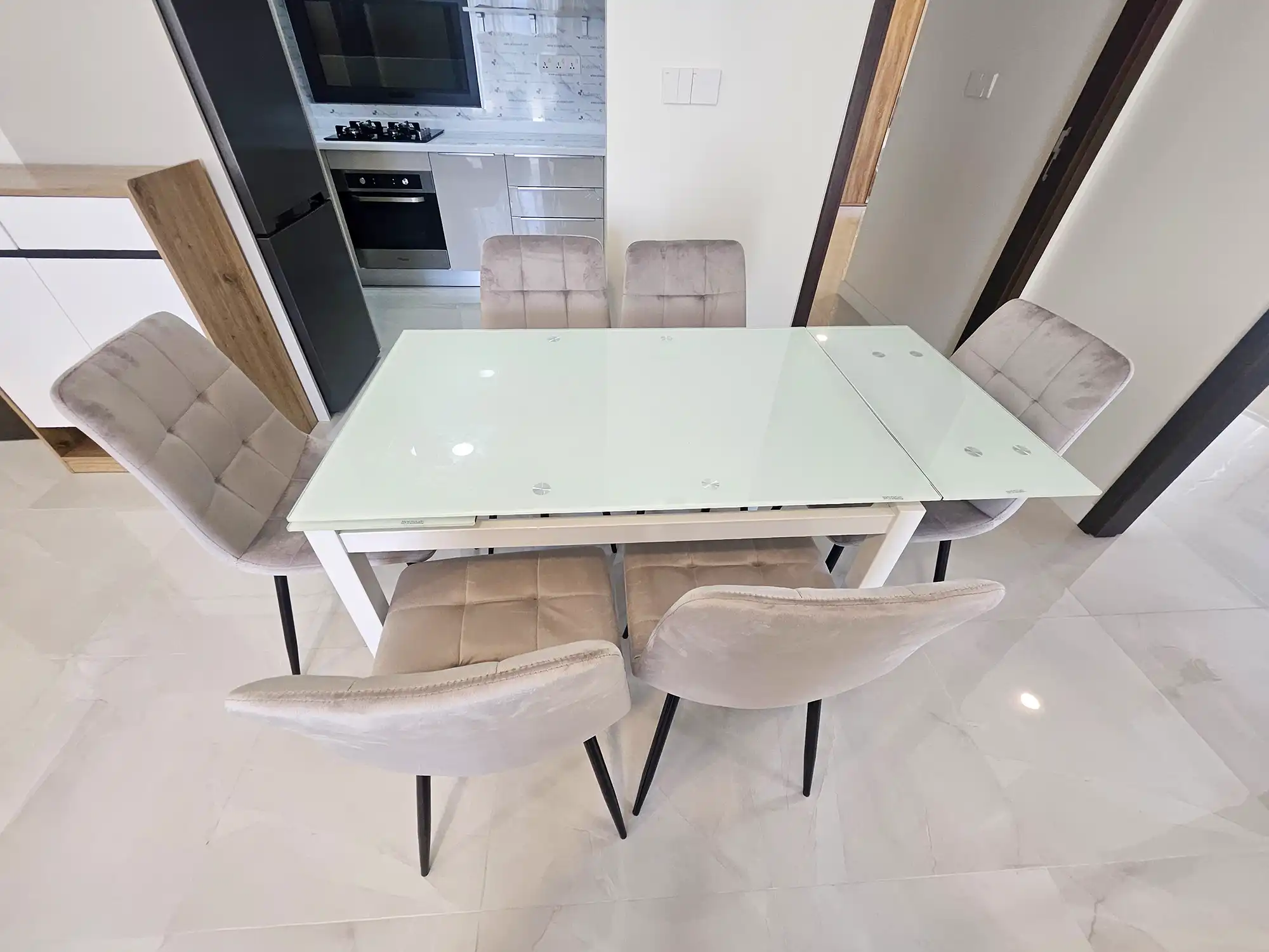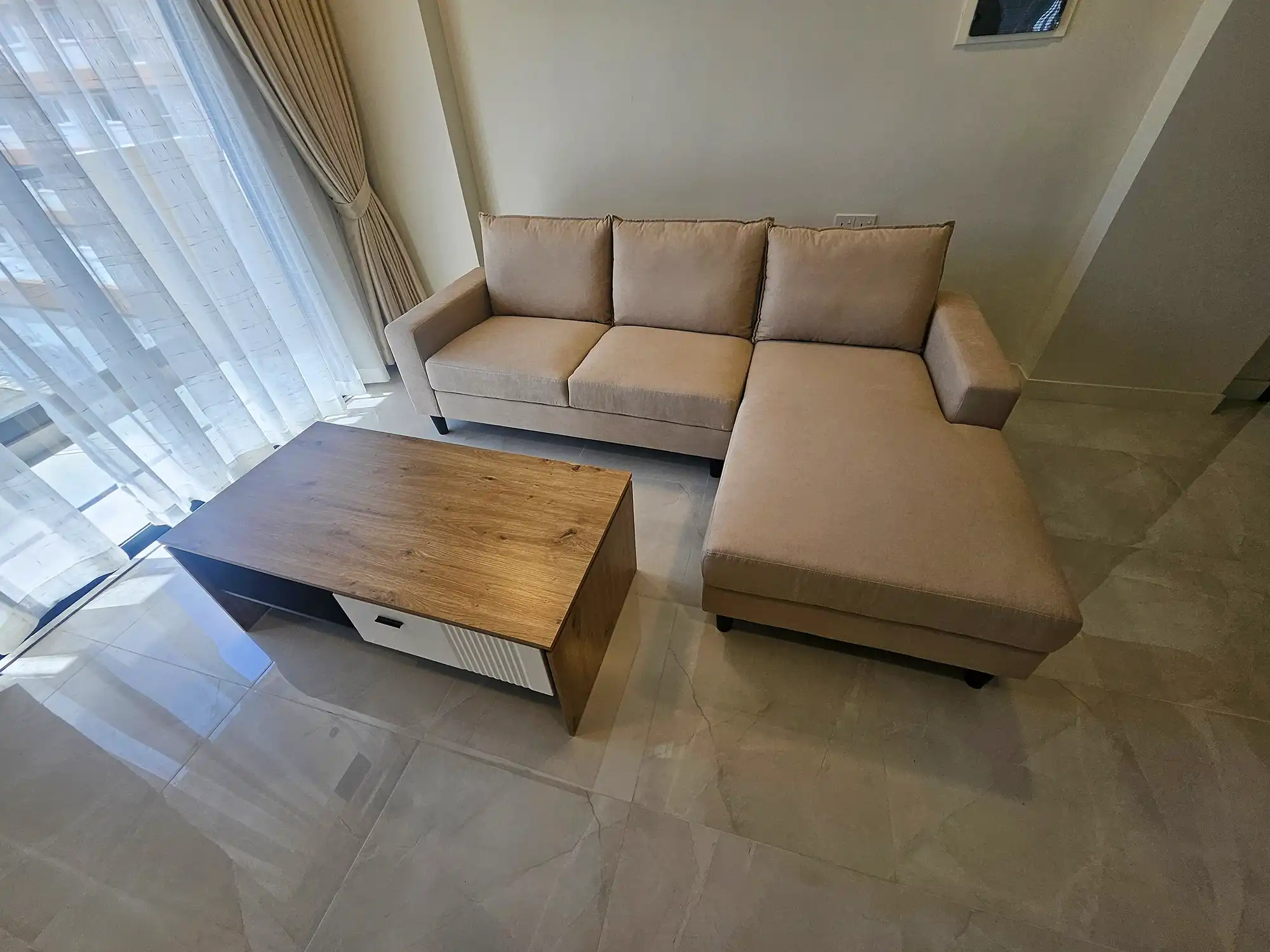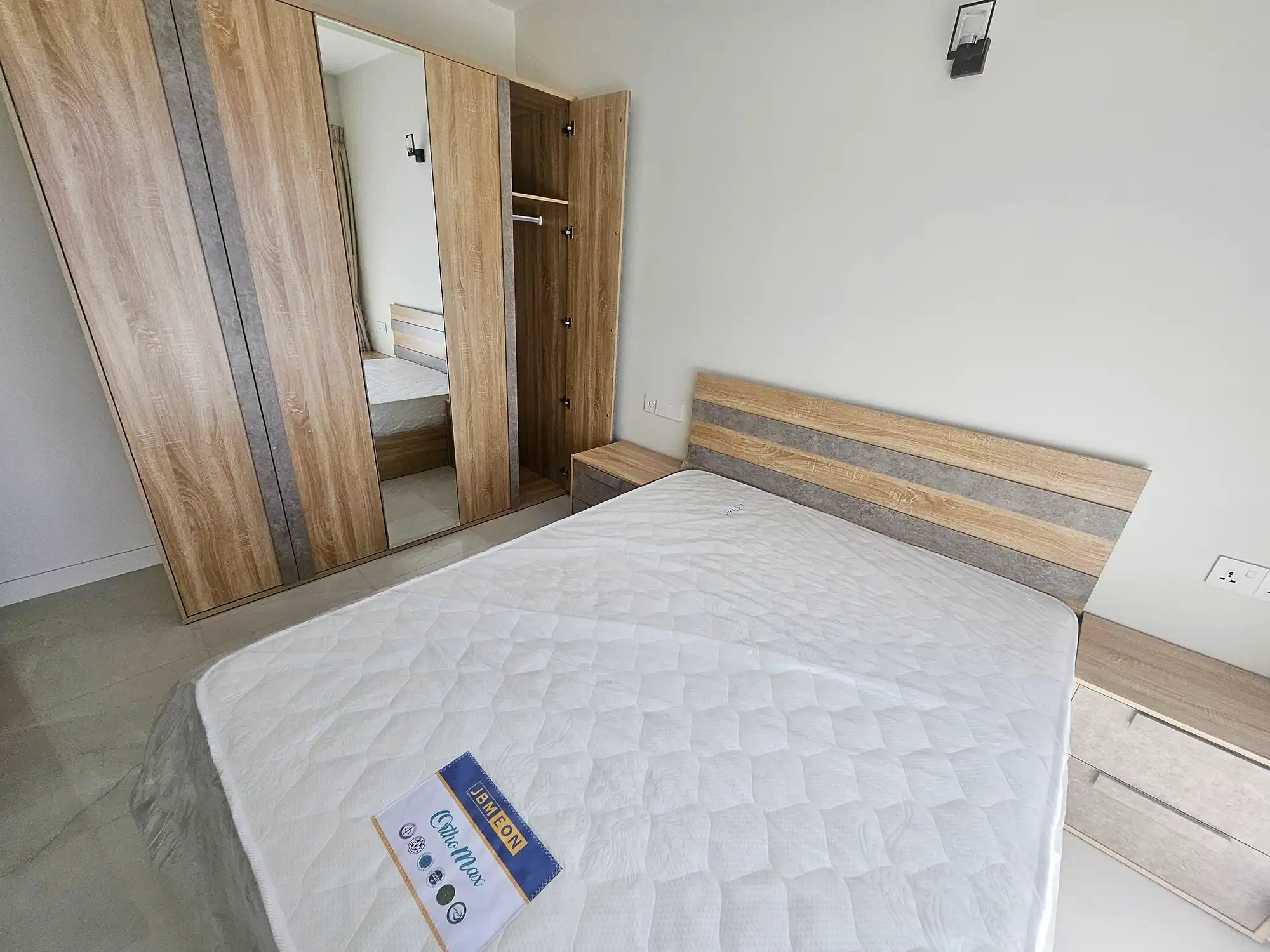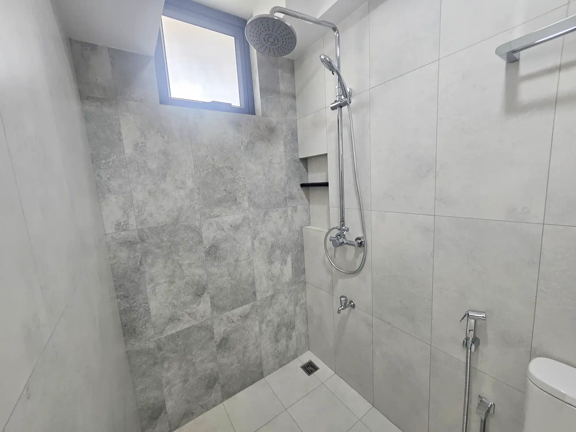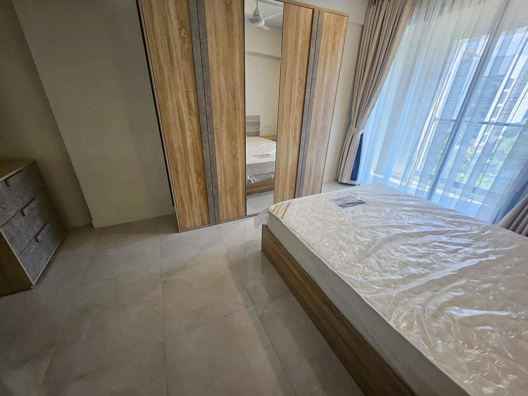 This 3-bedroom apartment, located on the 4th floor, features thoughtfully designed interiors with a contemporary style. Each bedroom has an attached bathroom fitted with branded sanitary ware, and the entire apartment is fully air-conditioned. The unit includes a separate laundry room, a TV rack in the living area, and three spacious city-view balconies that provide abundant natural light and ventilation.