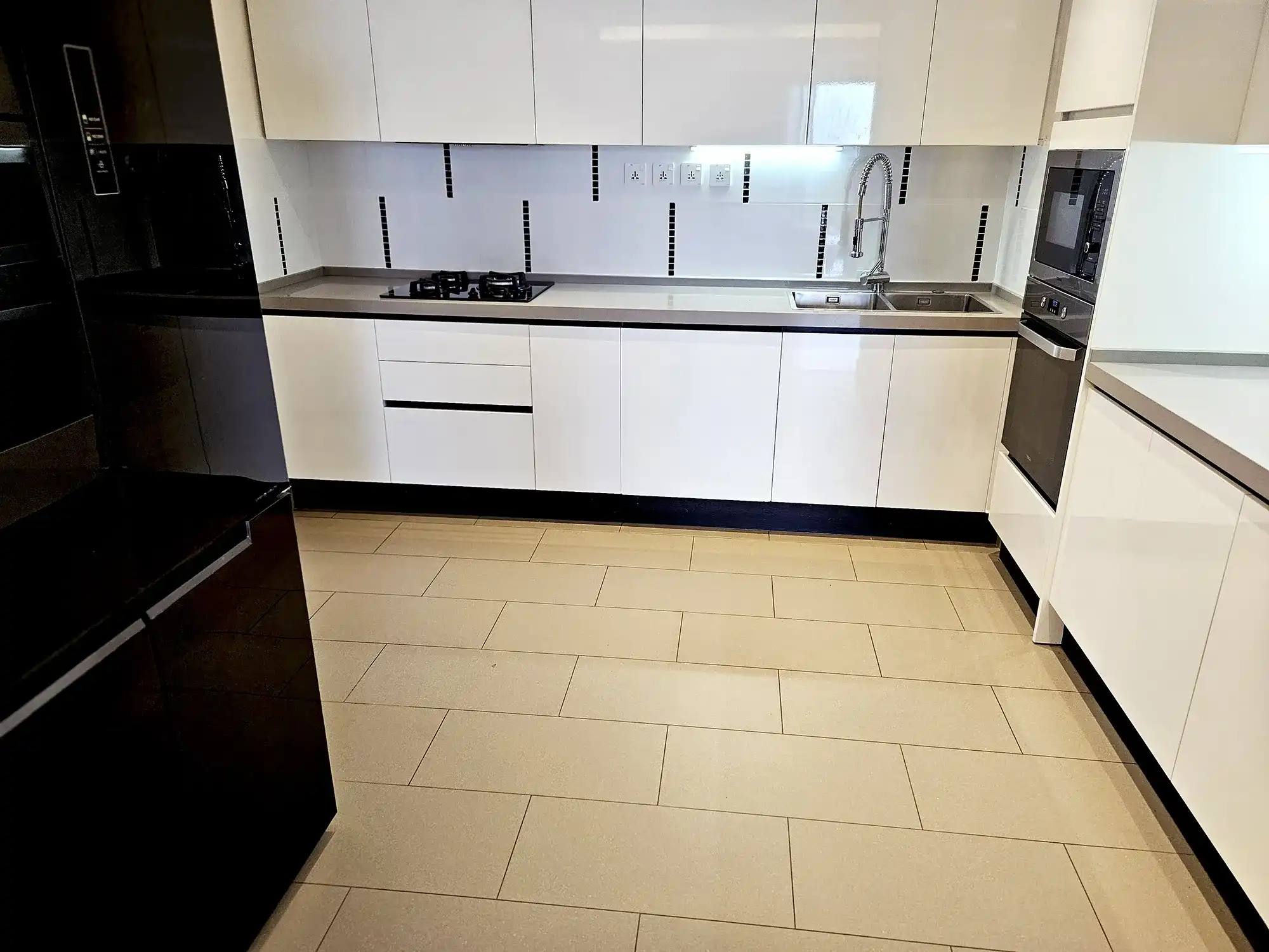 This spacious 3-bedroom unit is fully air-conditioned with attached bathrooms for each bedroom. It features a separate closed kitchen equipped with high-end appliances including an oven, microwave, stove, hood, refrigerator, cutlery and crockery. A dedicated laundry area adds convenience, while the large sea view balcony provides a serene retreat with panoramic ocean views.