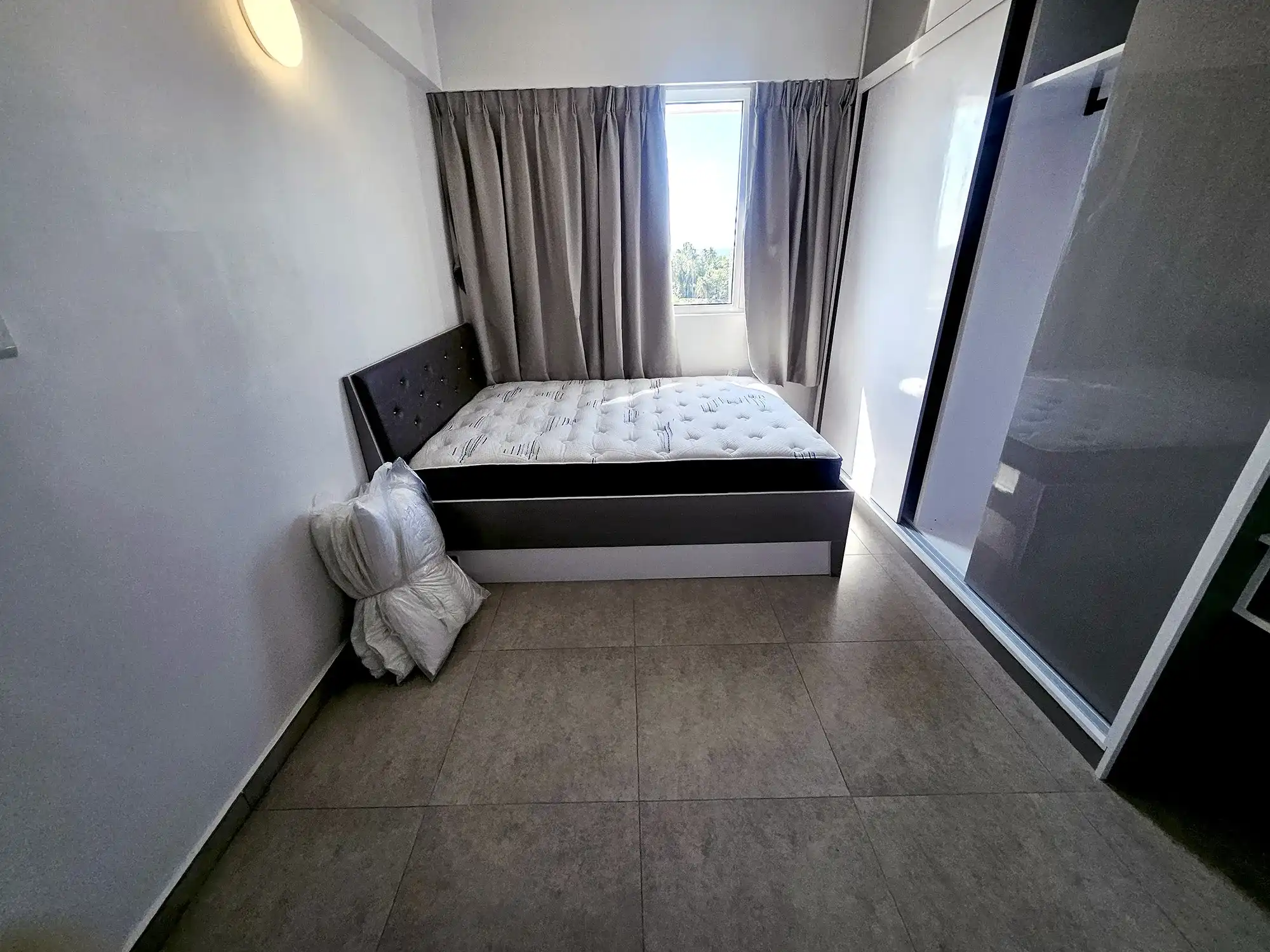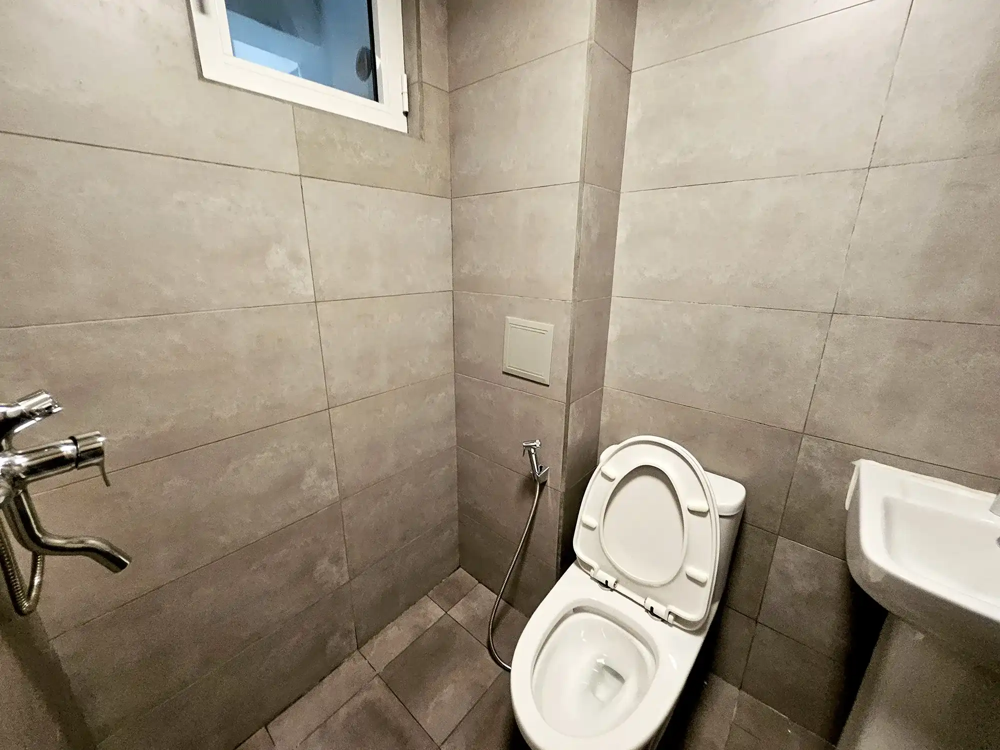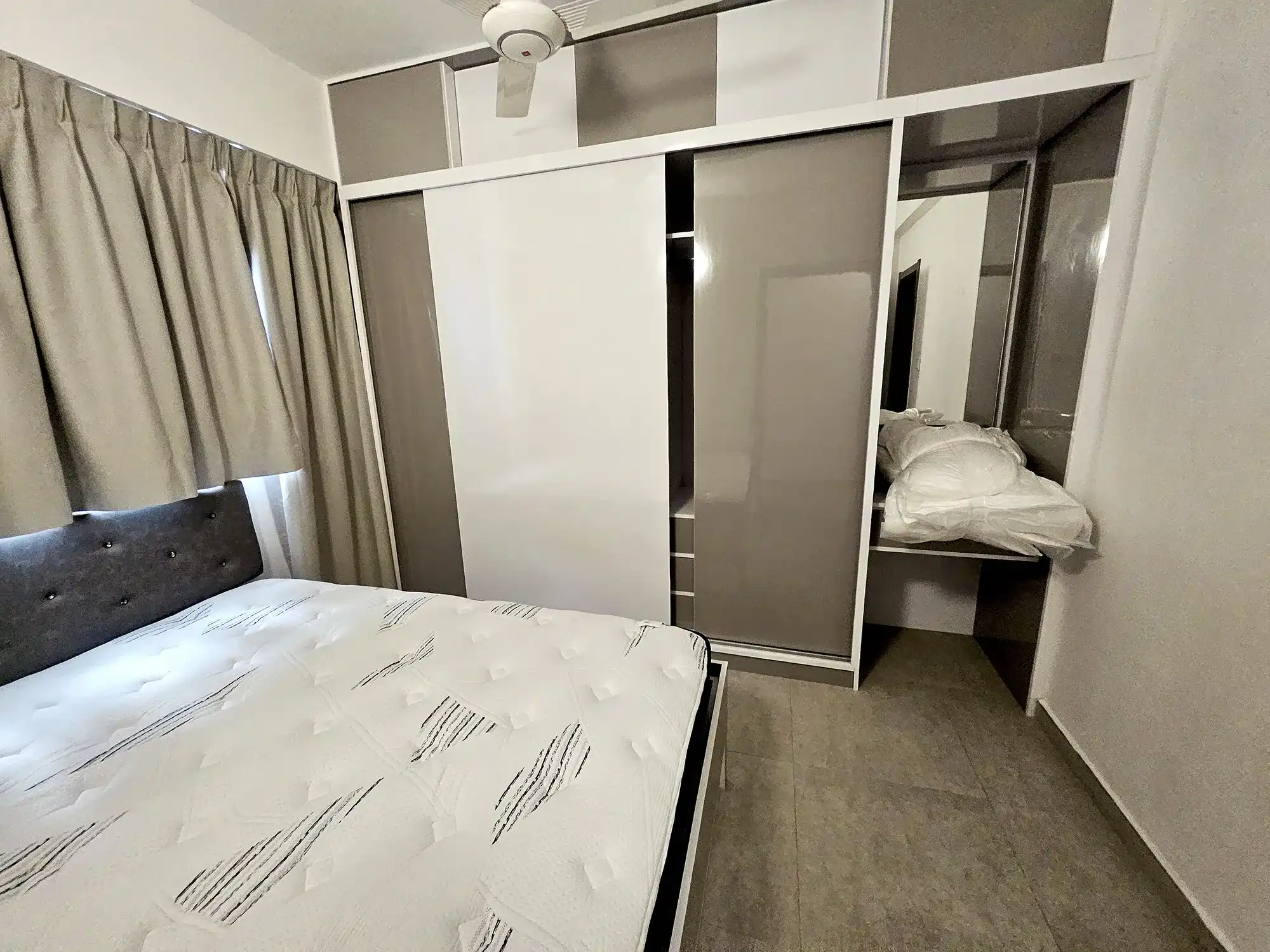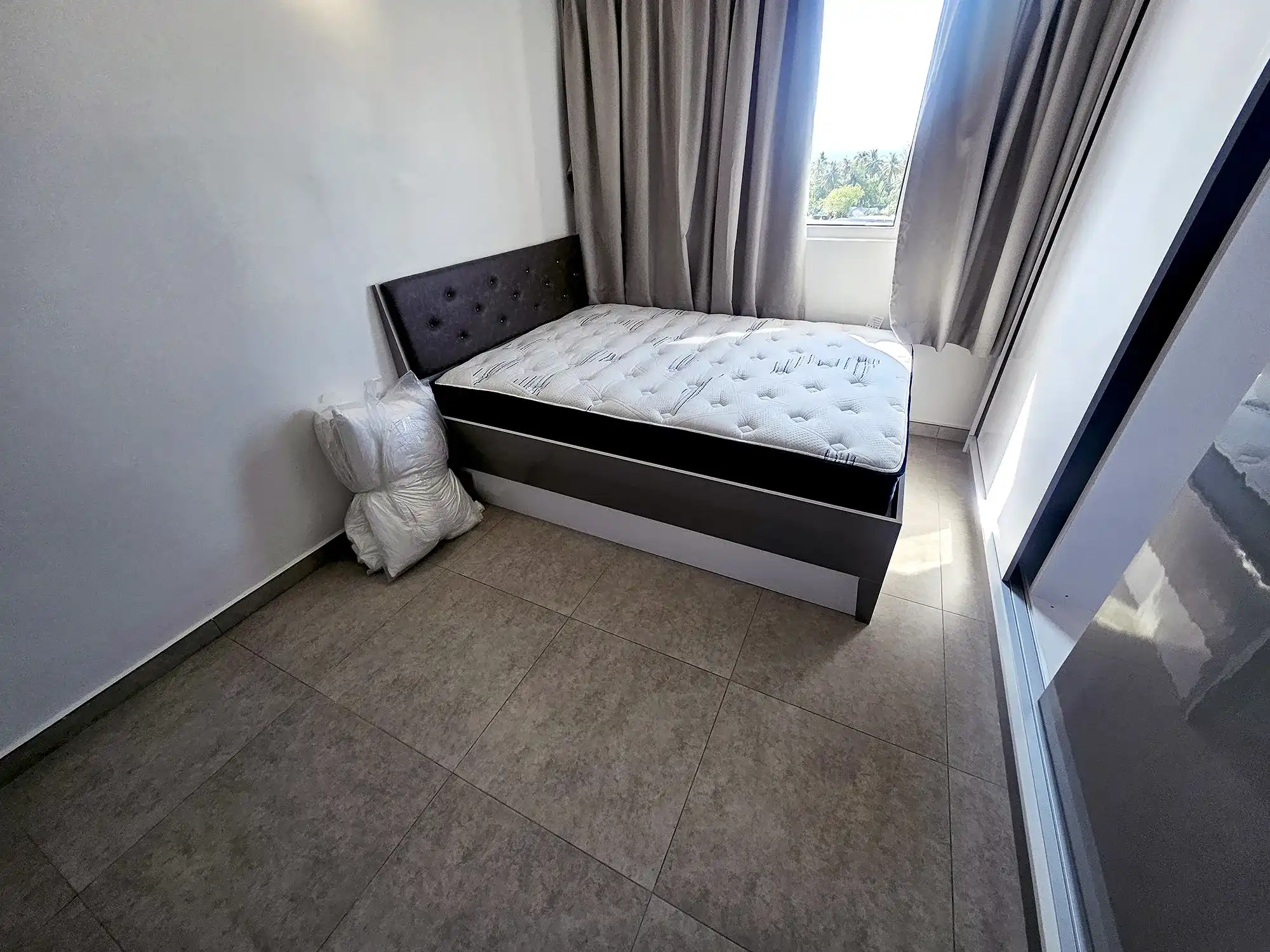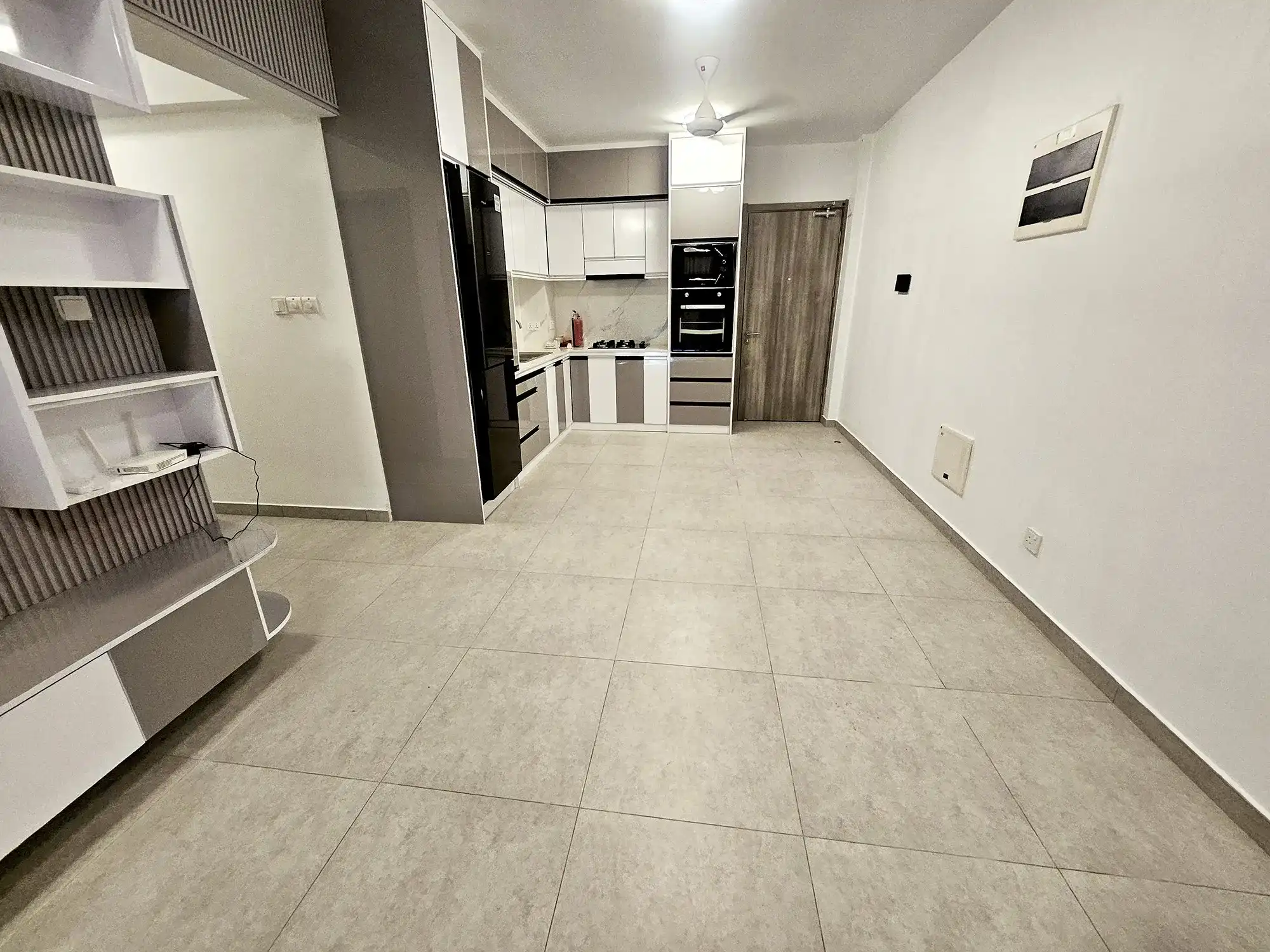 The apartment comes fully furnished, with two bedrooms fully furnished and the third room left unfurnished, which can be furnished on request or used as a store room or flexible multipurpose space. The entire apartment is fully air-conditioned, with ACs installed in all rooms. The kitchen is fully fitted with a cabinet set, gas stove, hood, oven, air fryer and refrigerator. Additional conveniences include a TV with Wi-Fi and Medianet connections already set up, as well as a washing machine for everyday practicality.