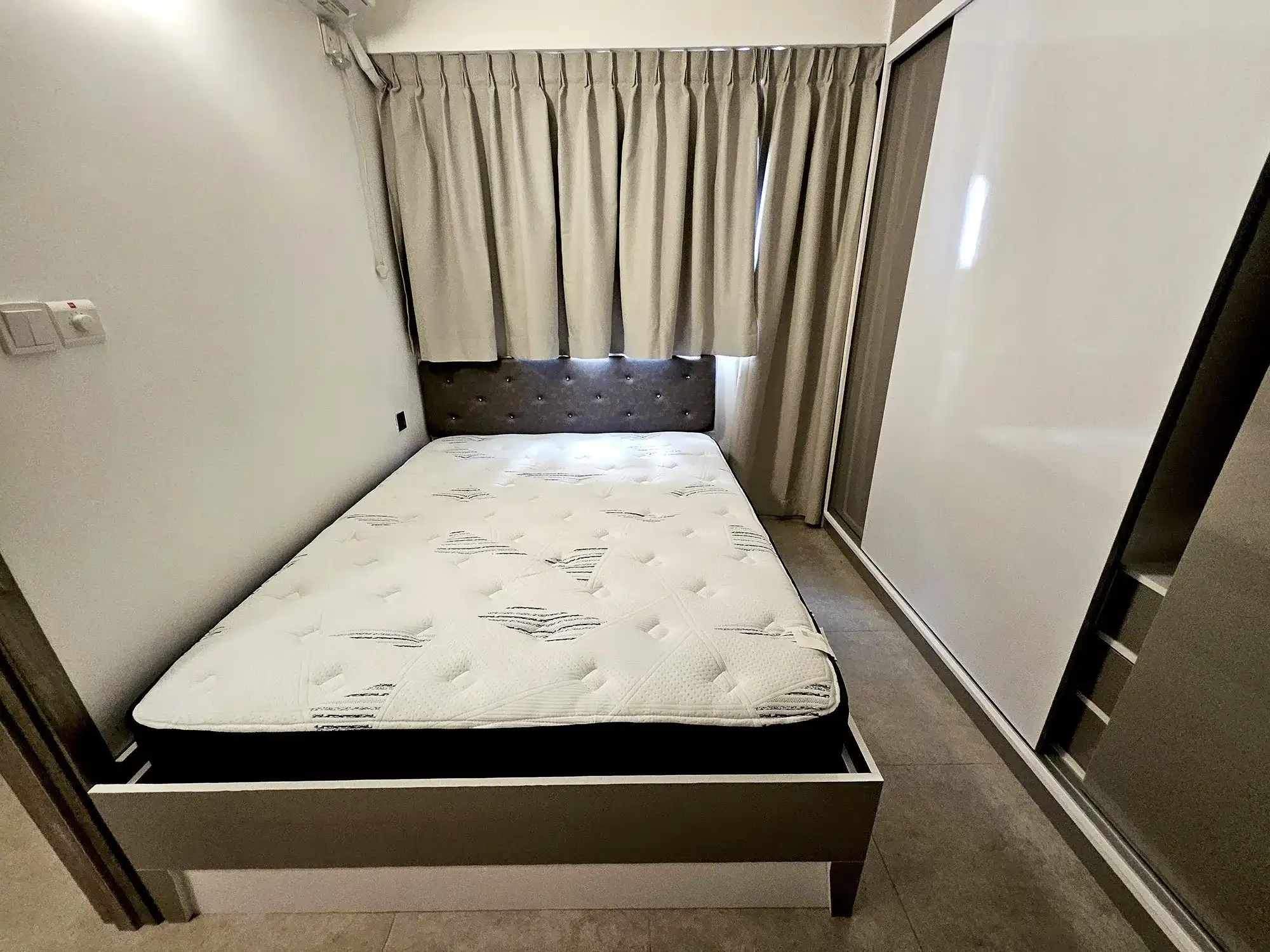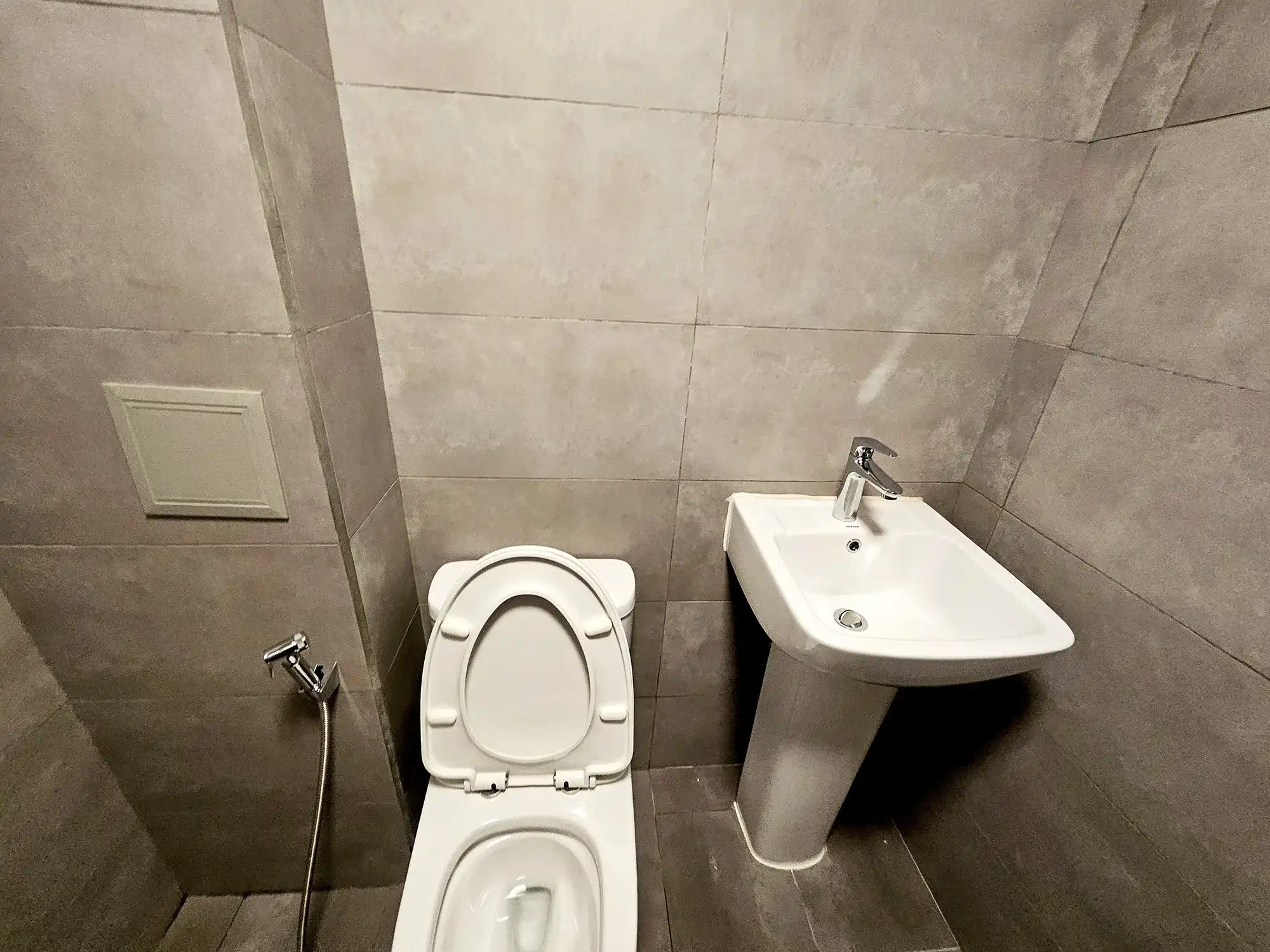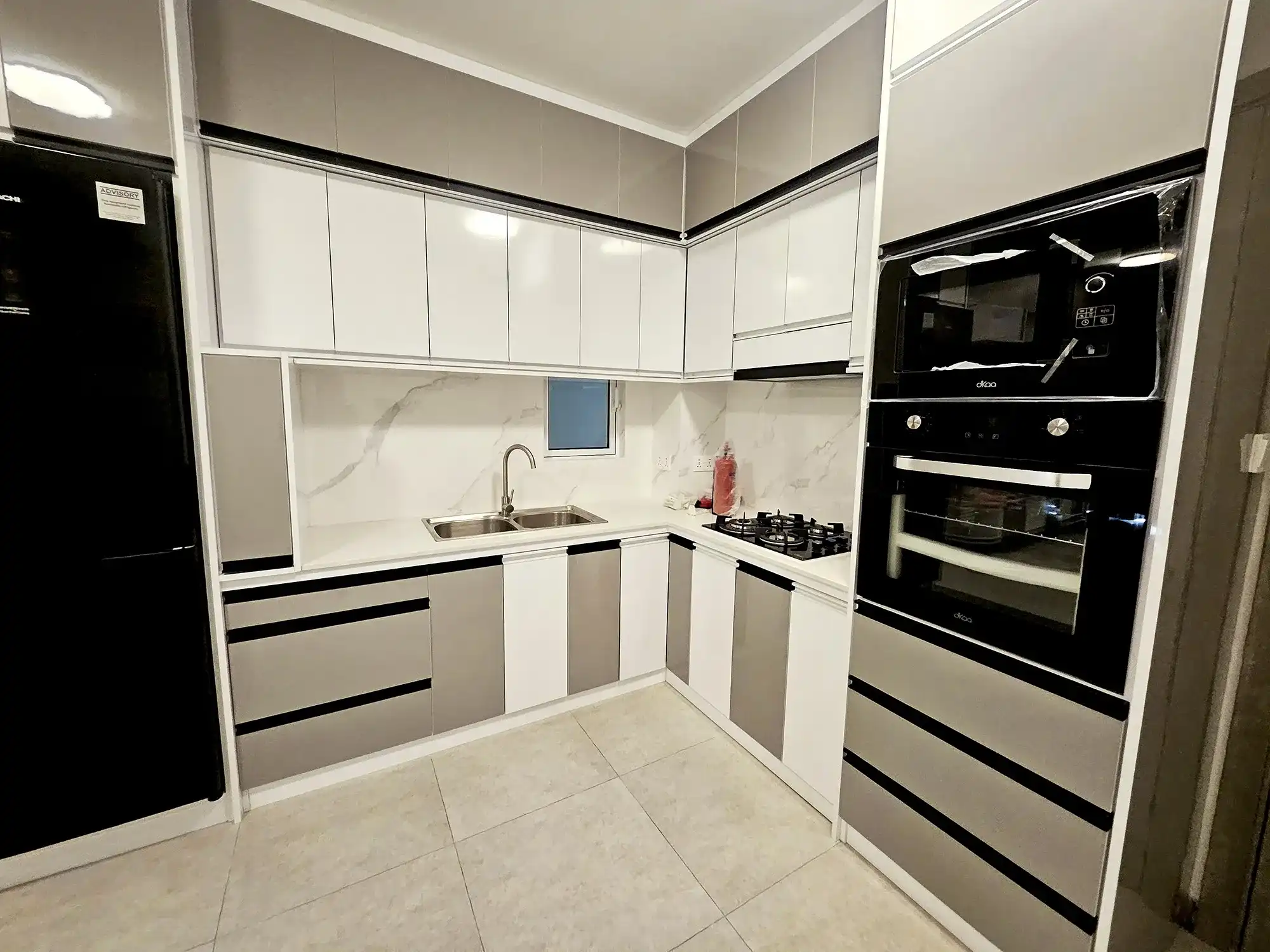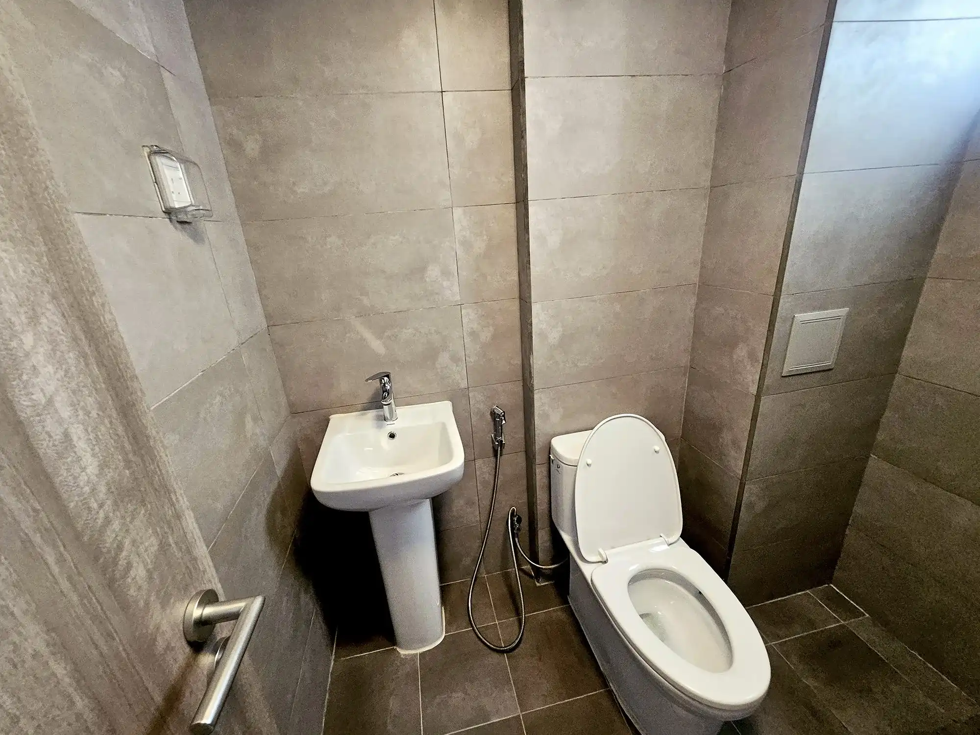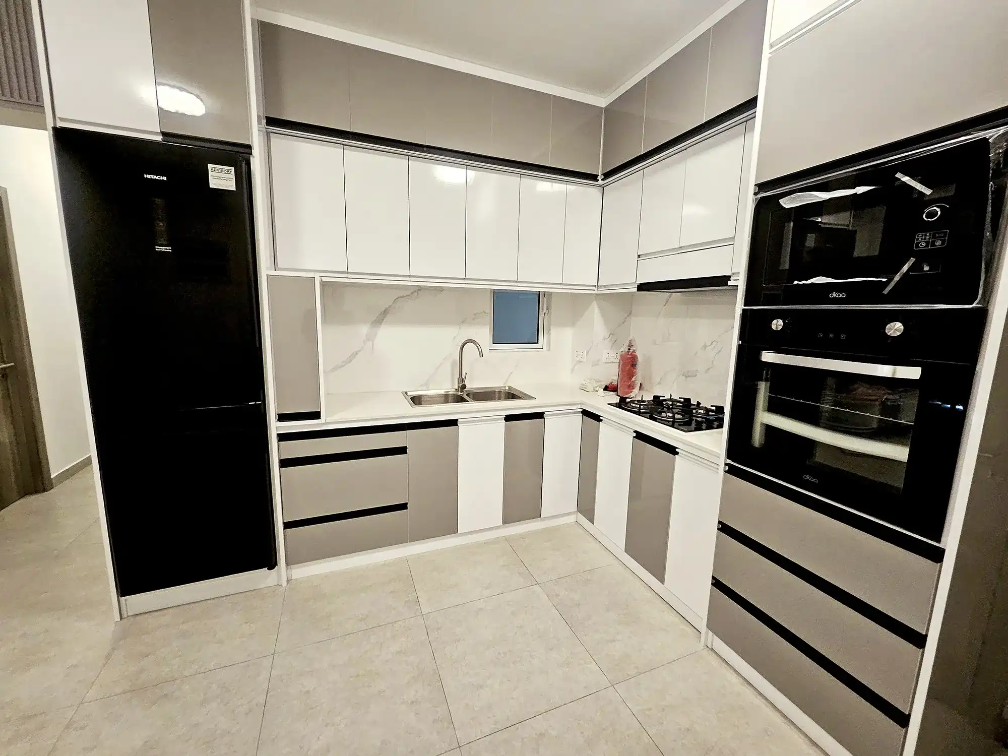 The apartment comes fully furnished, with two bedrooms fully furnished and the third room left unfurnished, which can be furnished on request or used as a store room or flexible multipurpose space. The entire apartment is fully air-conditioned, with ACs installed in all rooms. The kitchen is fully fitted with a cabinet set, gas stove, hood, oven, air fryer and refrigerator. Additional conveniences include a TV with Wi-Fi and Medianet connections already set up, as well as a washing machine for everyday practicality.