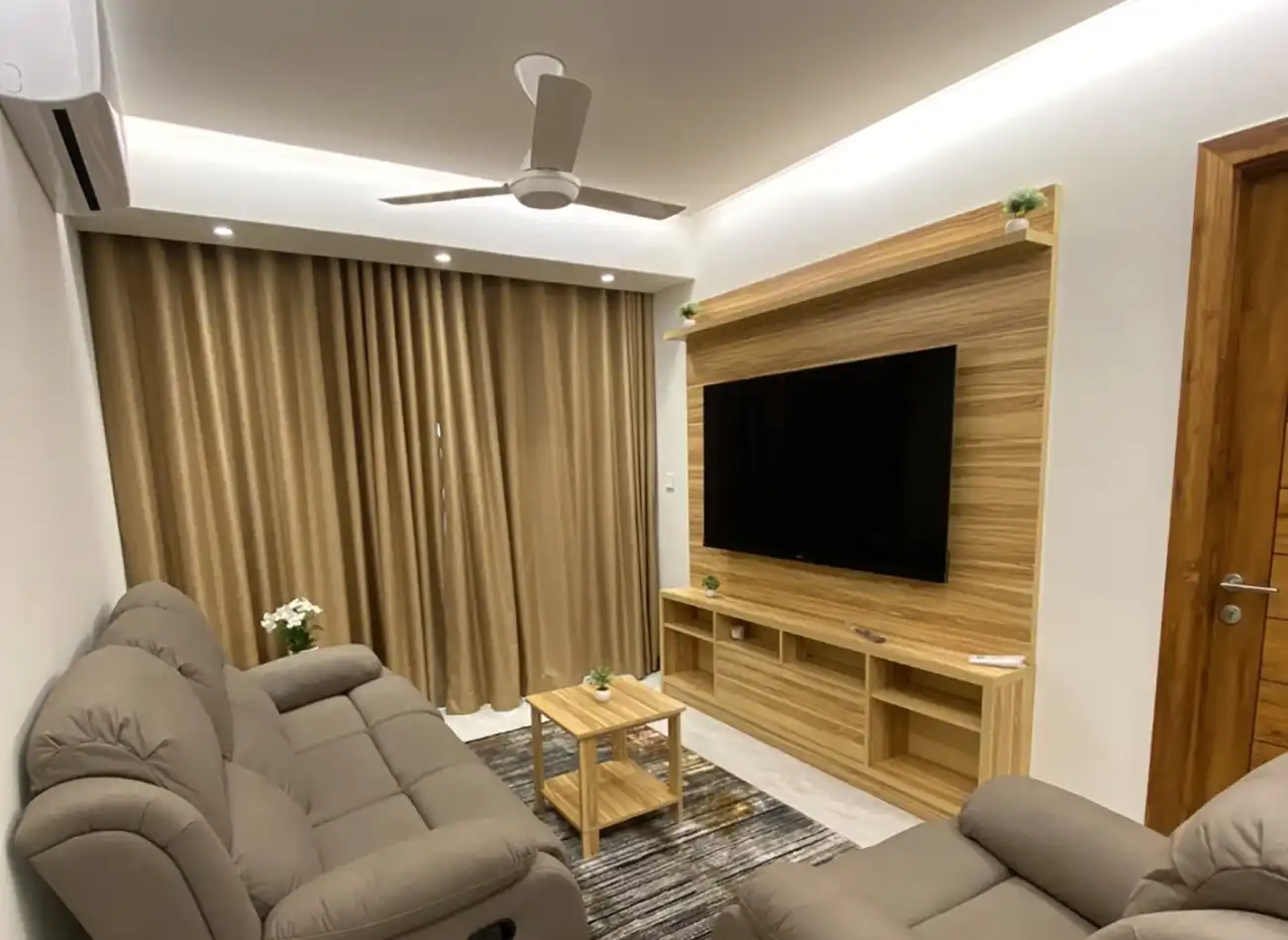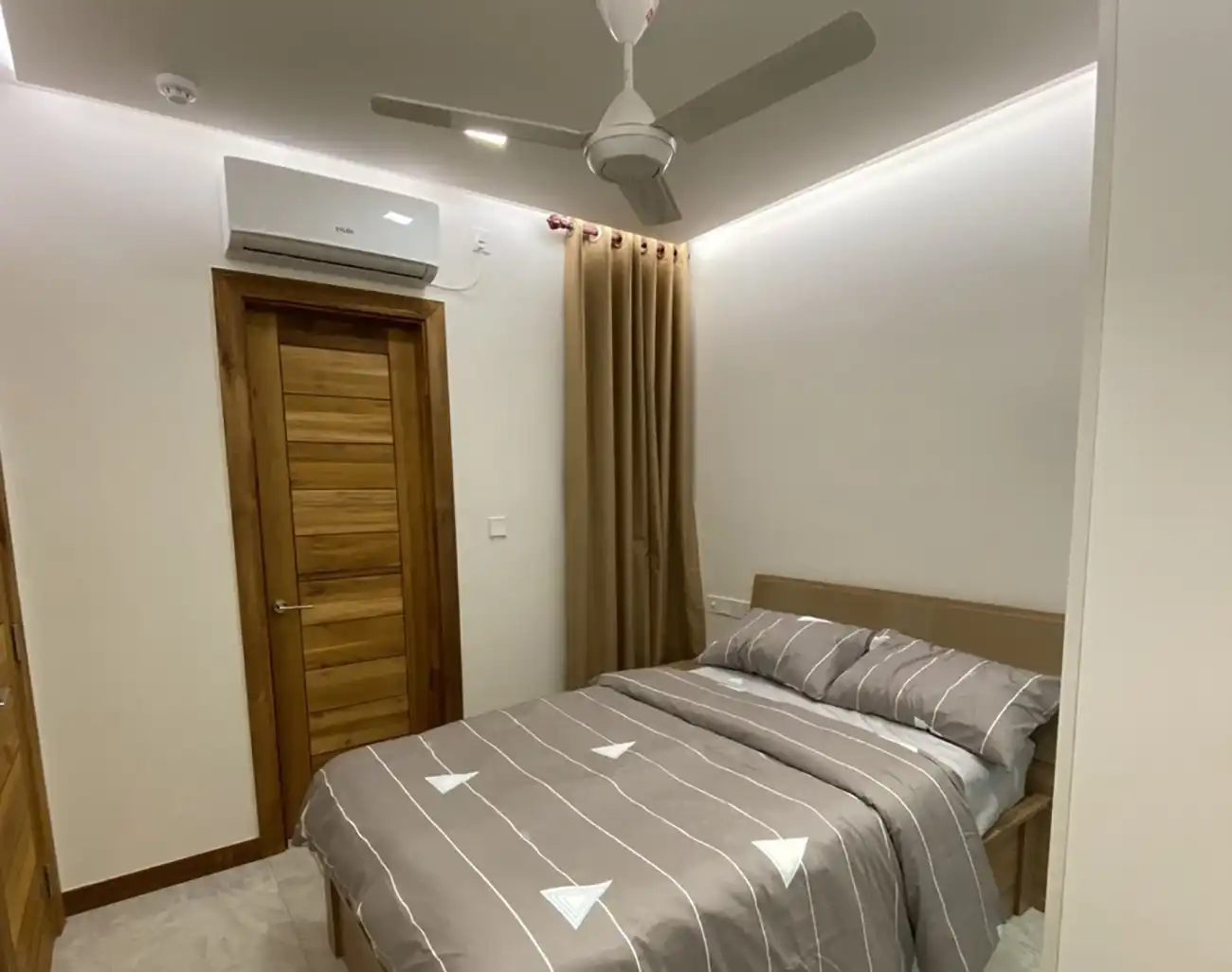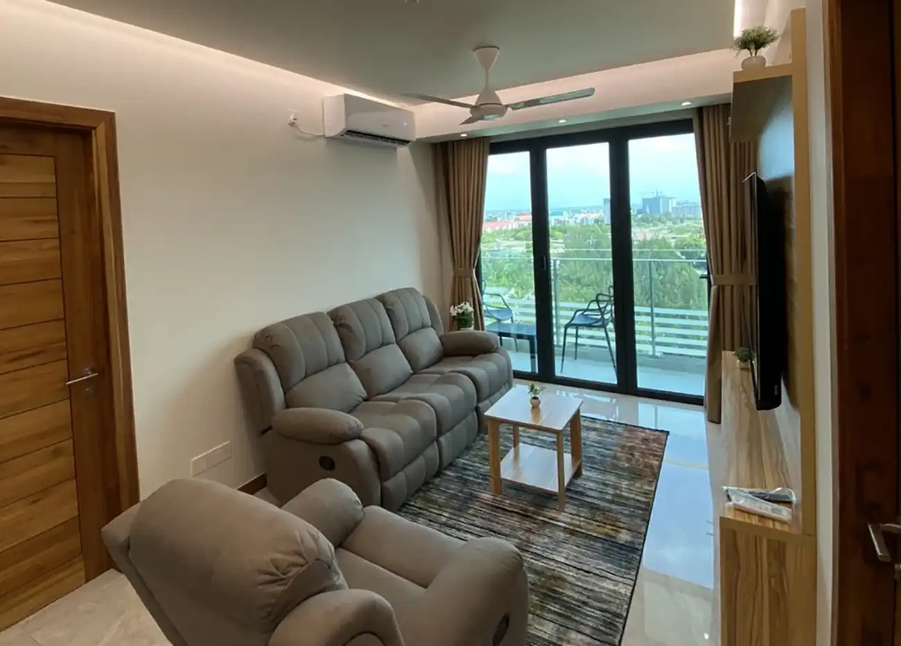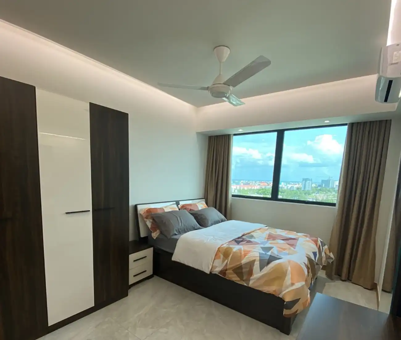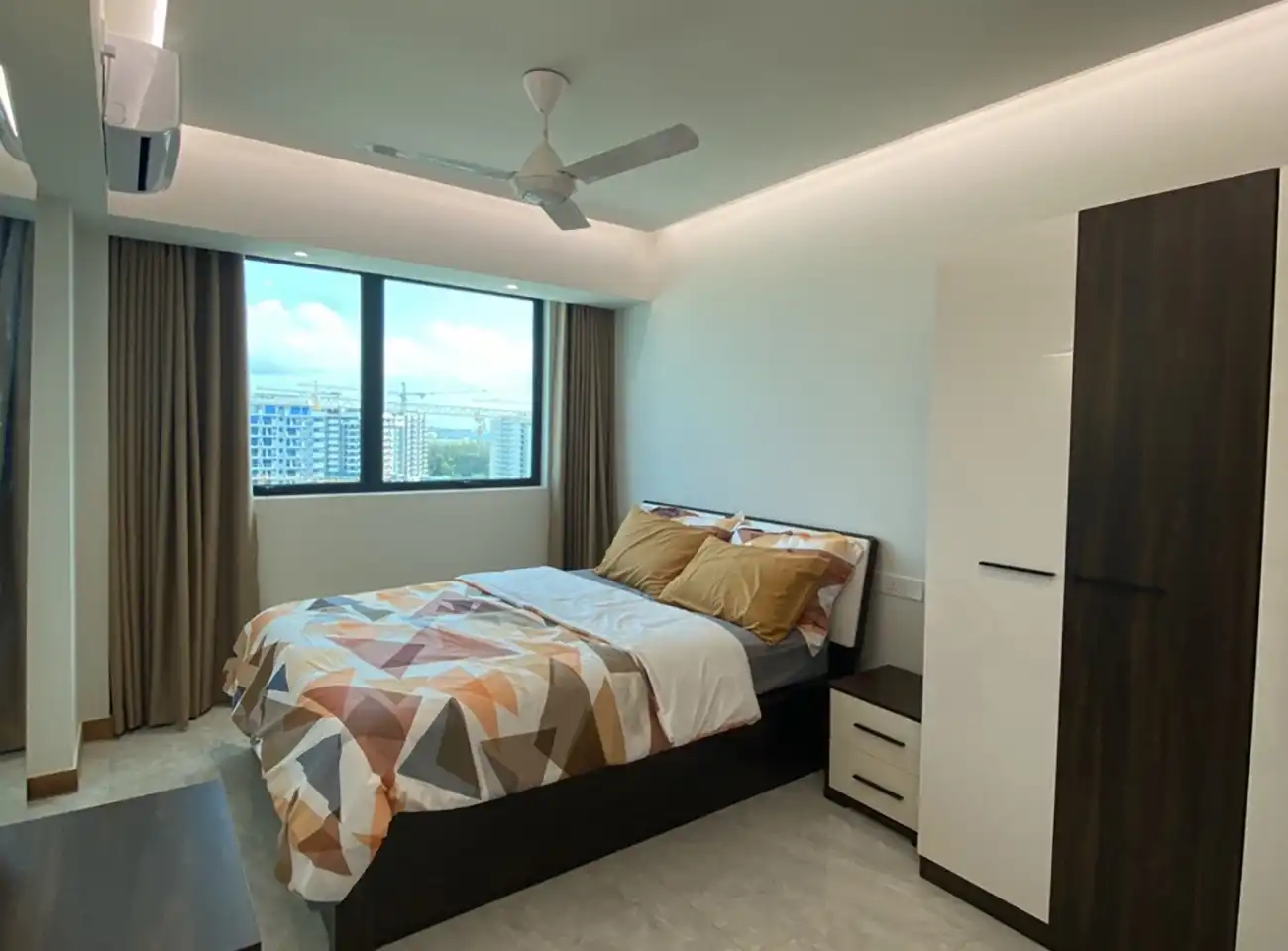 This fully furnished 3-bedroom apartment is located on the 11th floor and includes attached bathrooms in all bedrooms. The entire apartment is fully air-conditioned and features an open kitchen layout, a separate laundry area and a private balcony that enhances ventilation and natural light throughout the home.