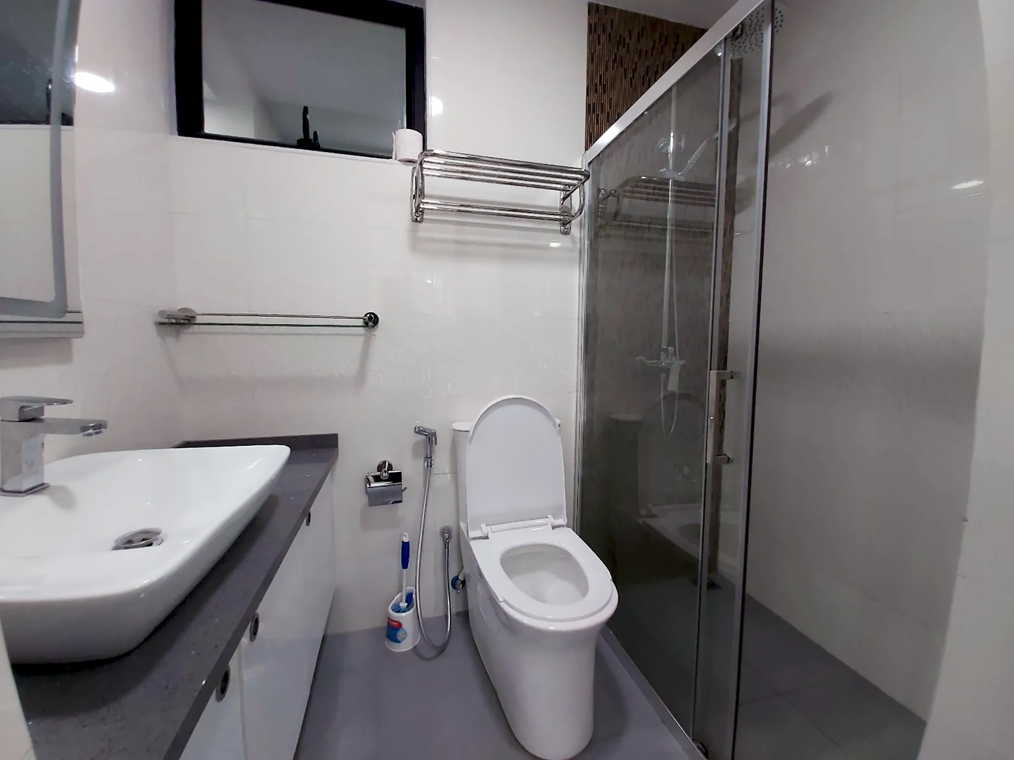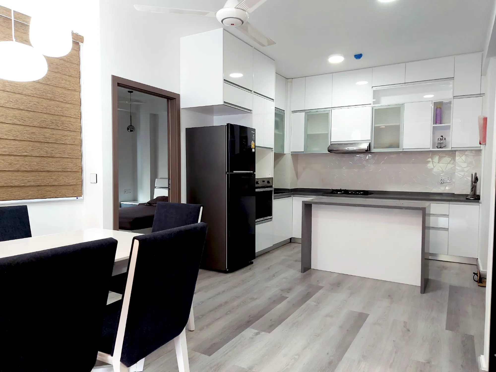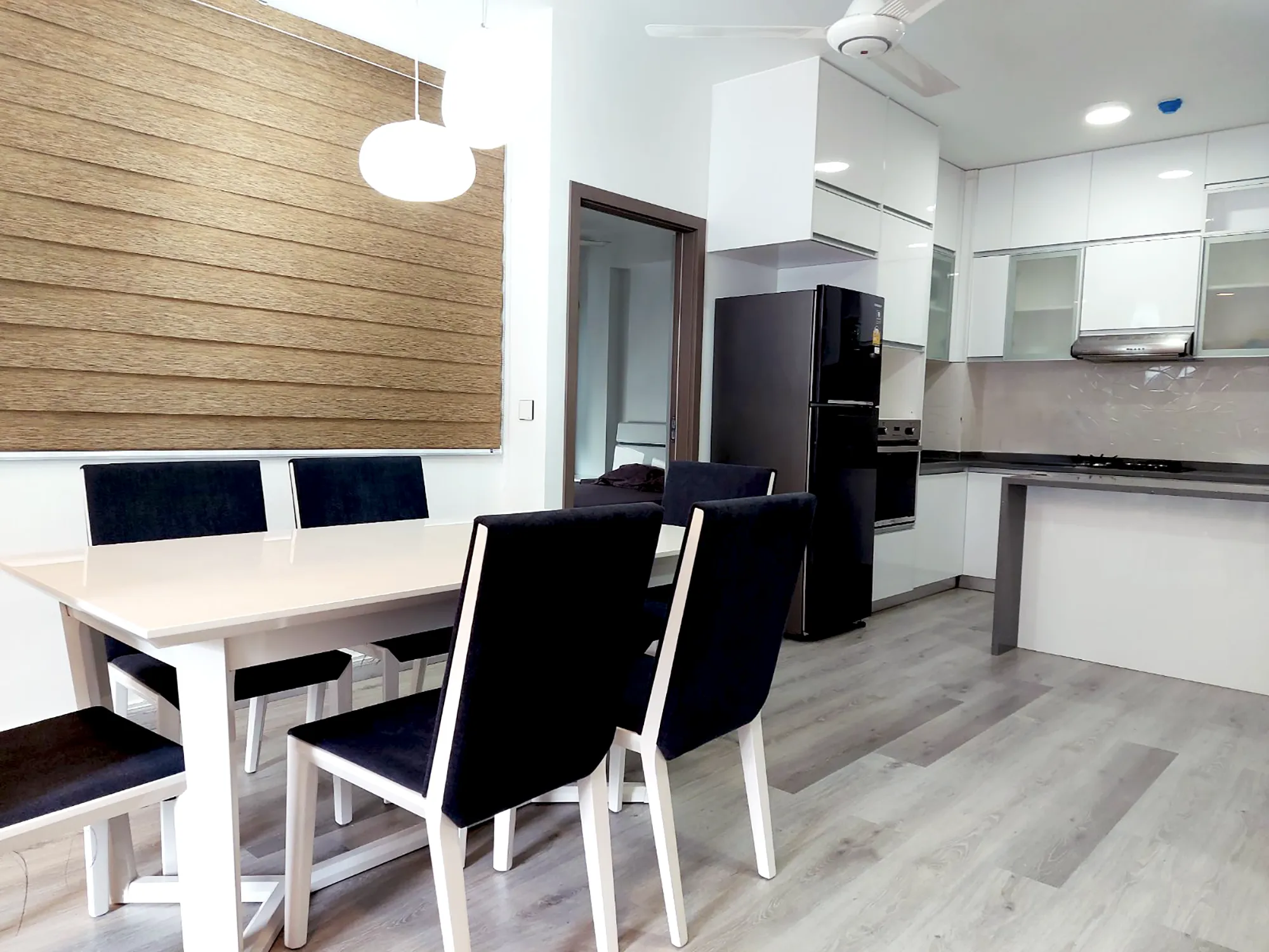 This fully furnished 3-bedroom apartment is located on the 6th floor of the condominium and features attached bathrooms in all bedrooms. The entire unit is fully air-conditioned and includes an open kitchen with a separate laundry area, along with a city-view balcony that offers privacy, natural light and everyday comfort. The apartment is ideal for residents seeking modern urban living complemented by premium building amenities.