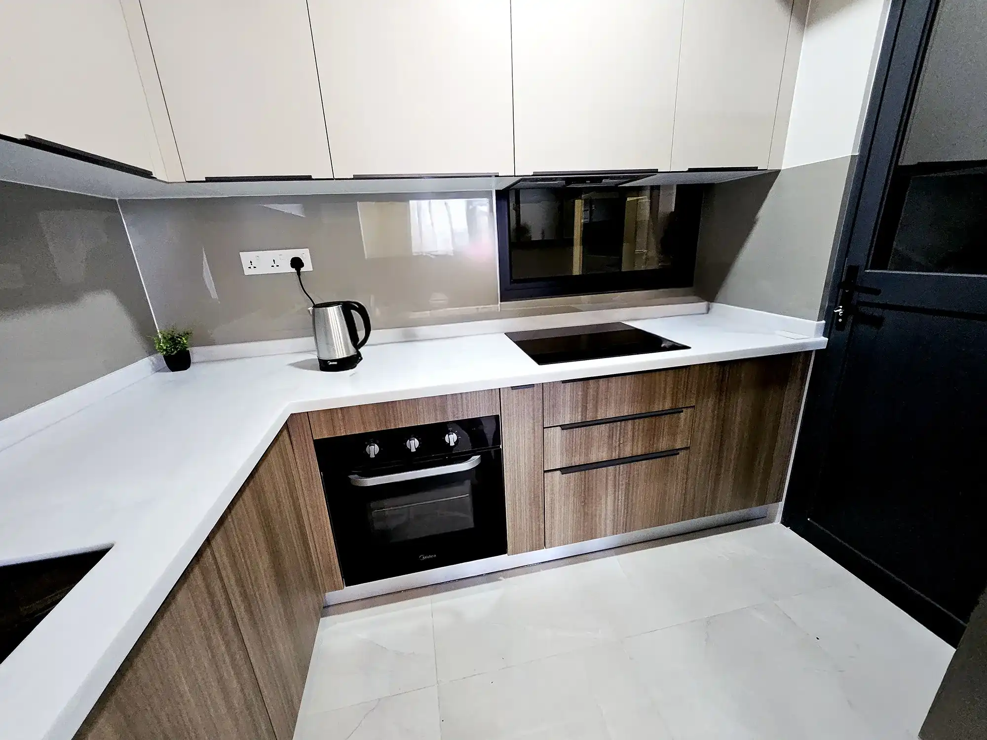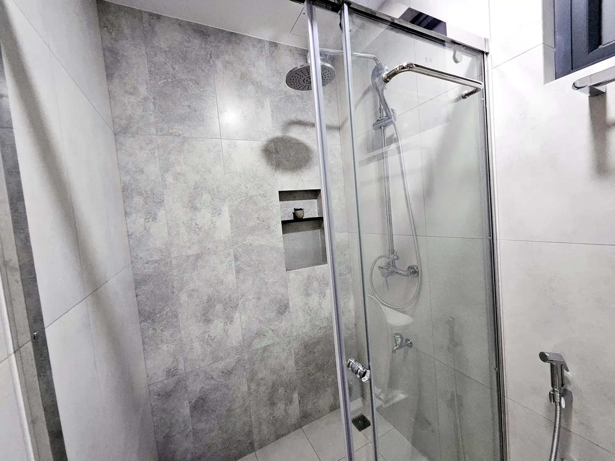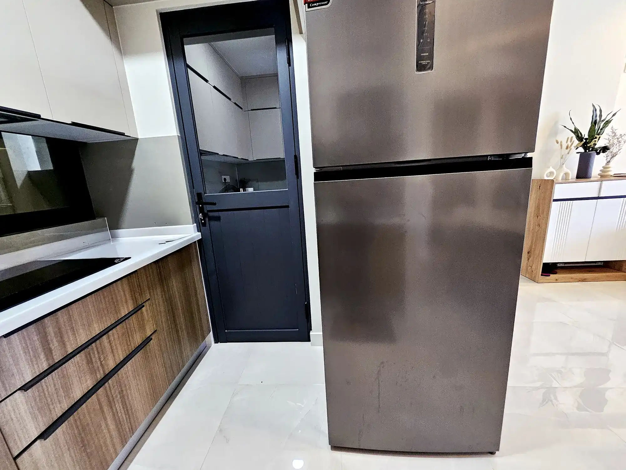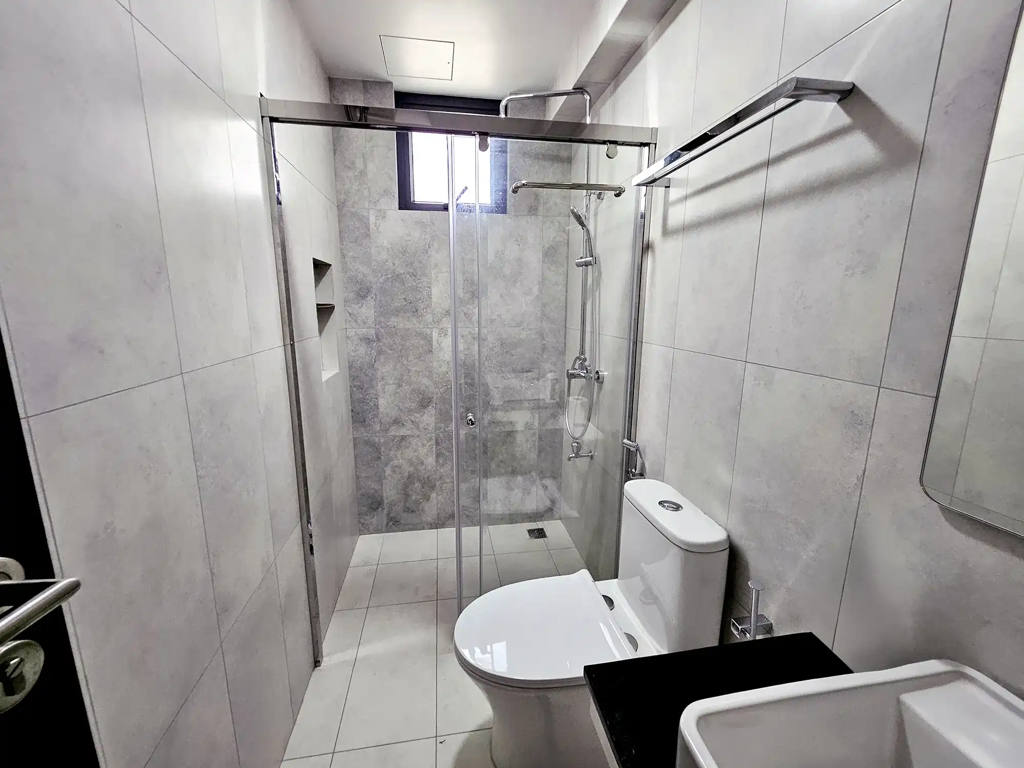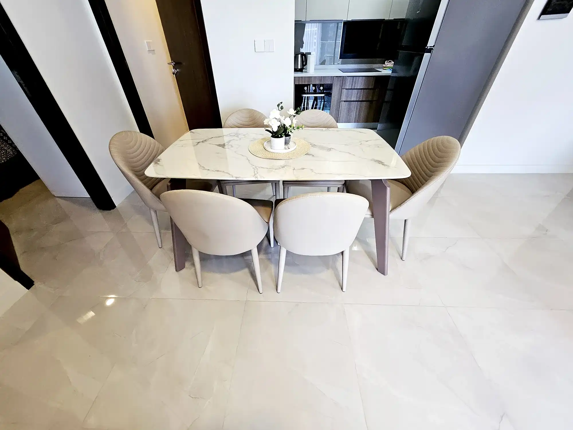 This fully furnished 3-bedroom apartment is situated on the 6th floor and features elegant contemporary interiors throughout. Each bedroom includes an attached bathroom fitted with branded sanitary ware and the entire apartment is fully air-conditioned, including the kitchen and living area. The layout also includes a separate laundry room, a TV rack in the living area, and three spacious city-view balconies that allow ample natural light and fresh air to flow through the apartment.