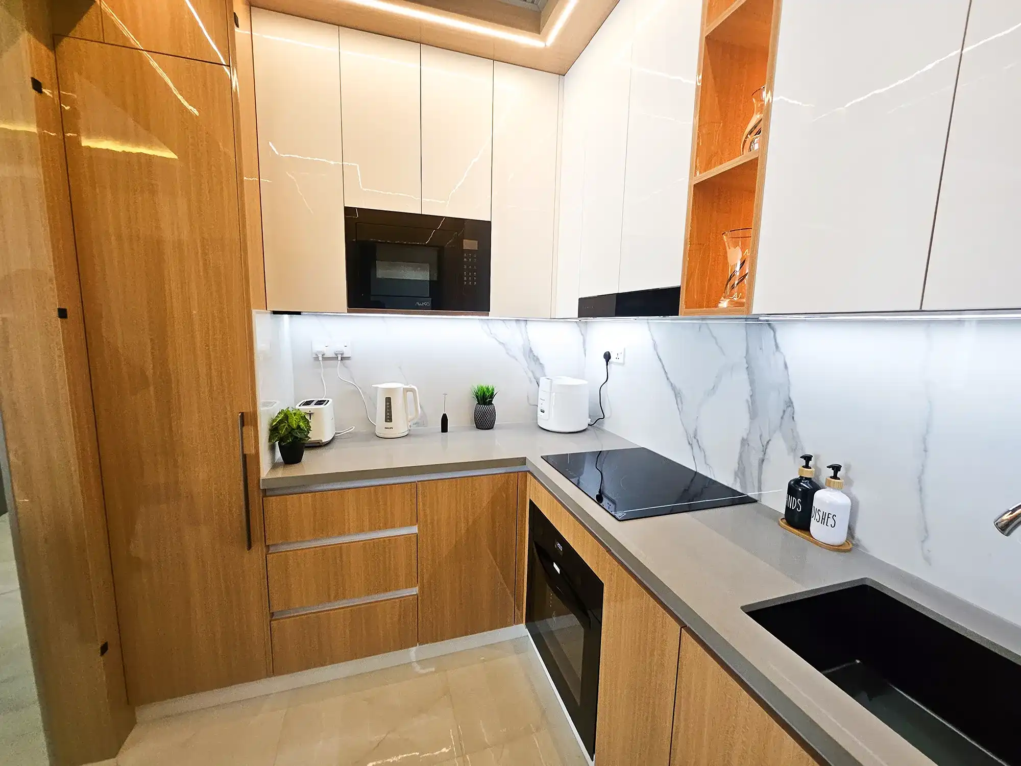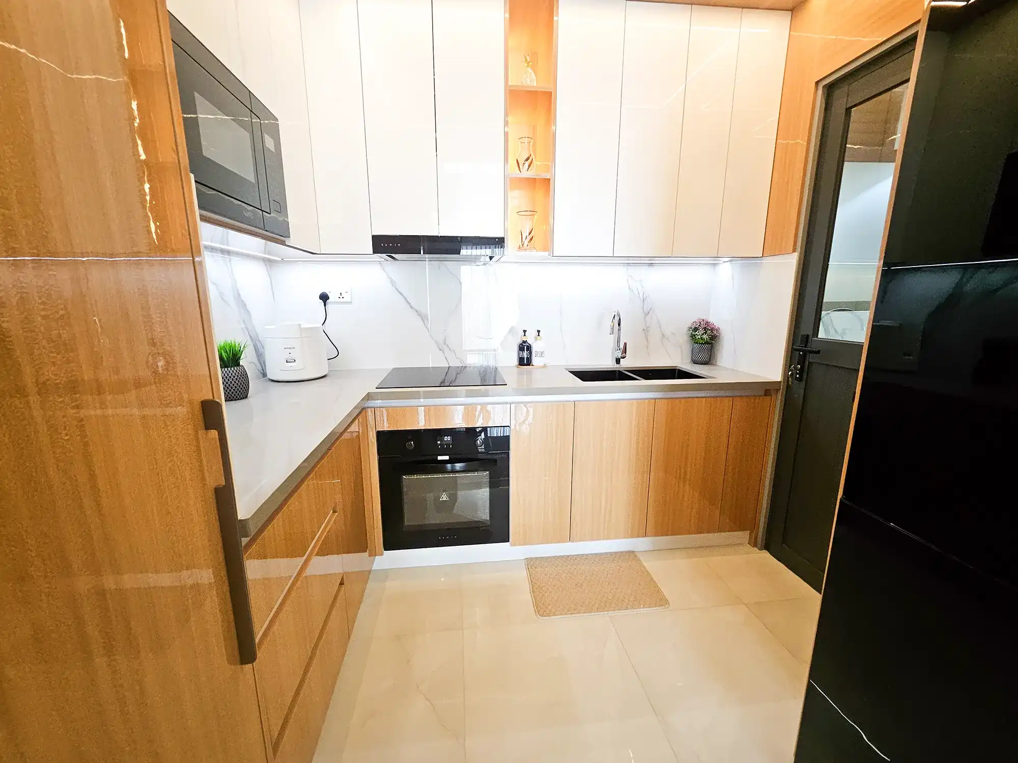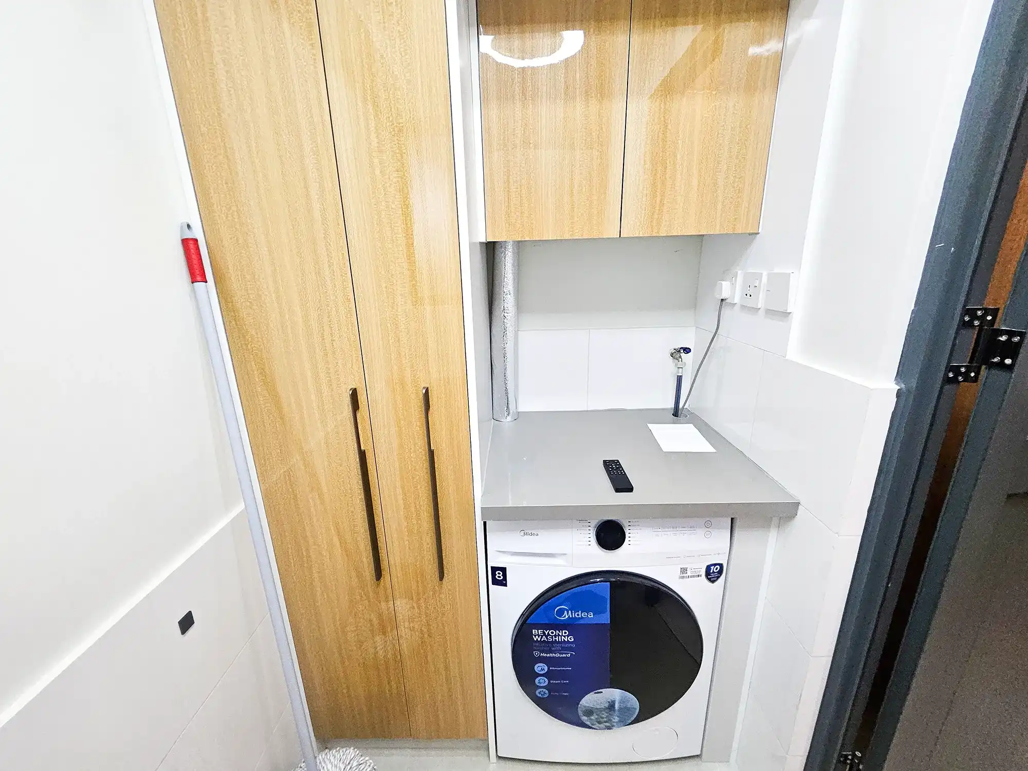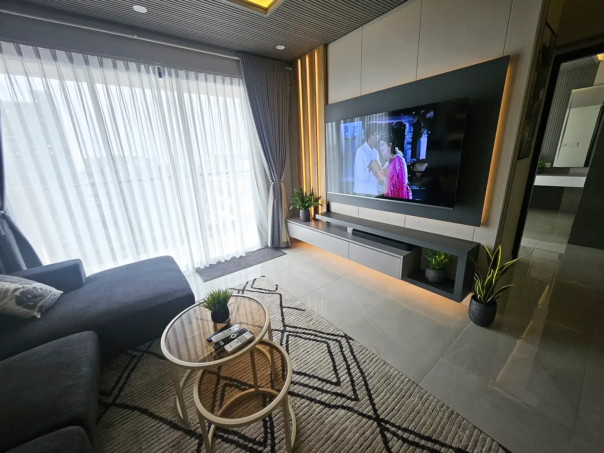 This fully furnished 3-bedroom apartment is situated on the 9th floor and features elegant contemporary interiors throughout. Each bedroom includes an attached bathroom fitted with branded sanitary ware and the entire apartment is fully air-conditioned, including the kitchen and living area. The layout also includes a separate laundry room and three spacious city-view balconies that allow ample natural light and fresh air to flow throughout the apartment.