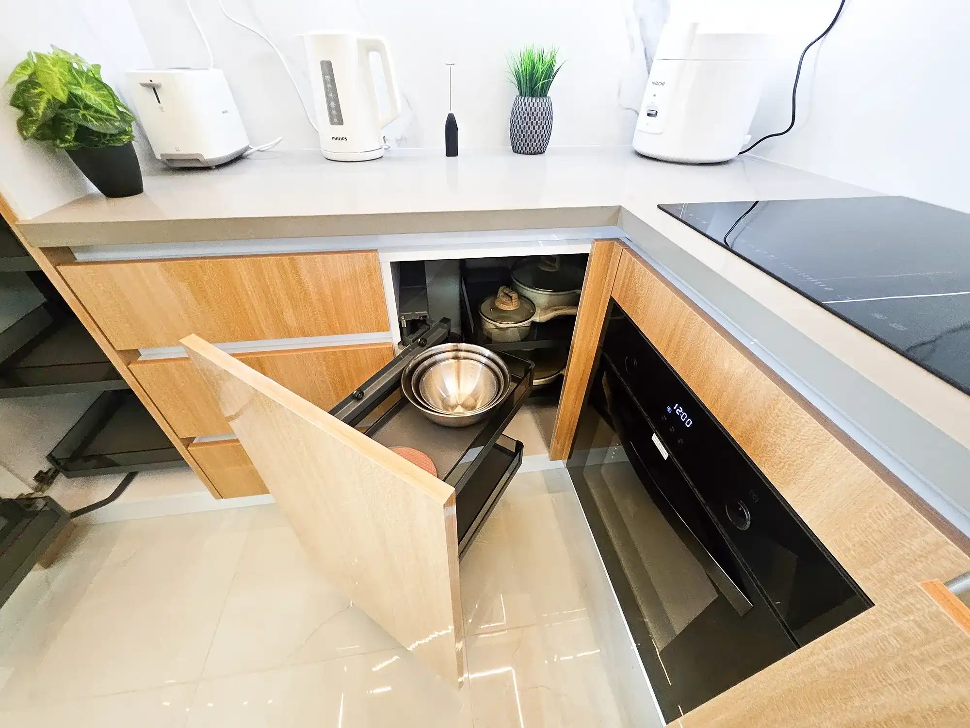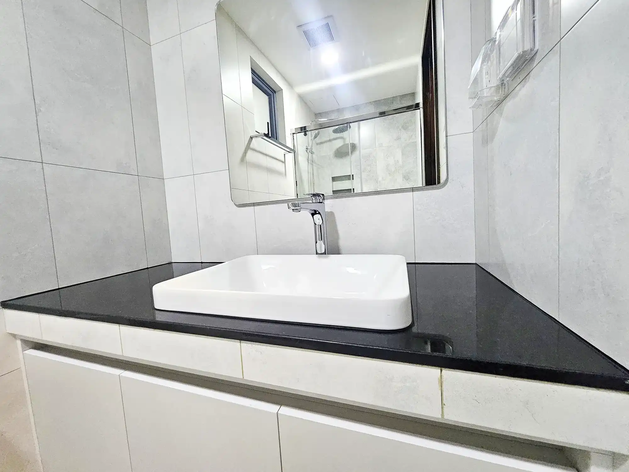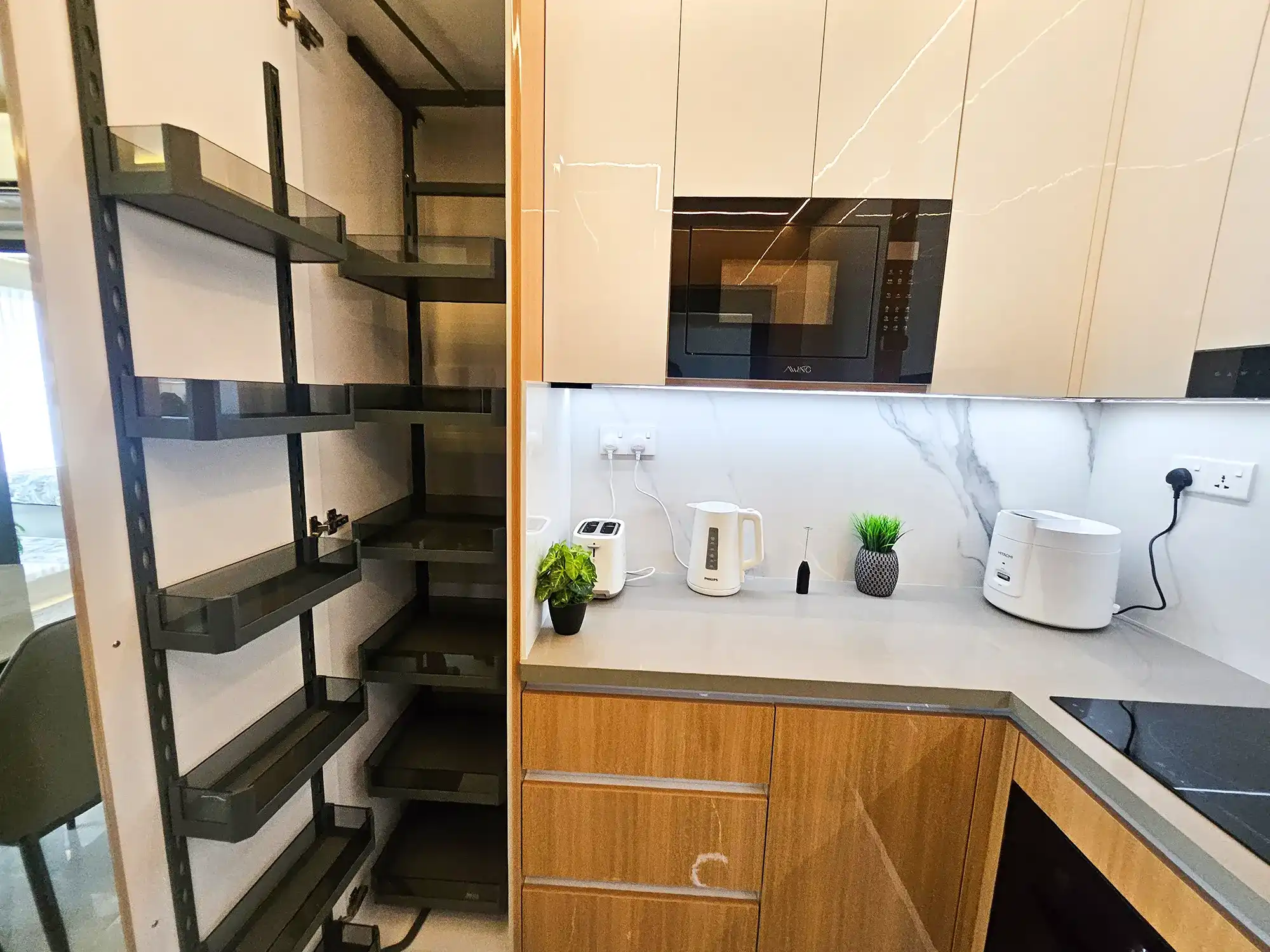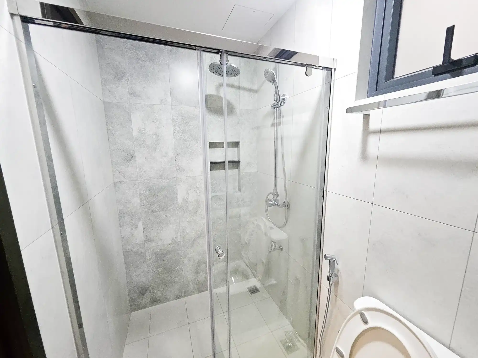 This fully furnished 3-bedroom apartment is situated on the 9th floor and features elegant contemporary interiors throughout. Each bedroom includes an attached bathroom fitted with branded sanitary ware and the entire apartment is fully air-conditioned, including the kitchen and living area. The layout also includes a separate laundry room and three spacious city-view balconies that allow ample natural light and fresh air to flow throughout the apartment.