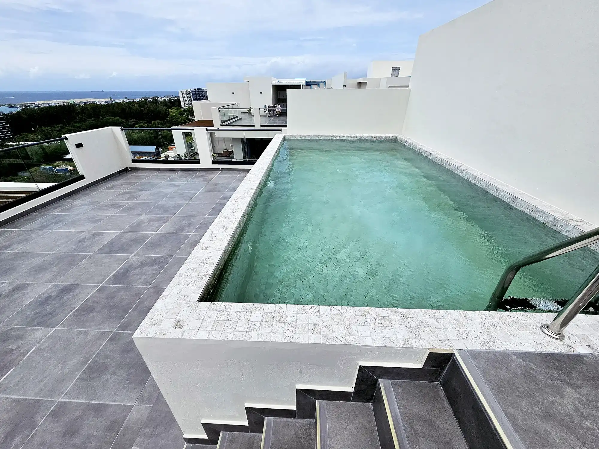 This exclusive 3+1 bedroom fully furnished penthouse spans the 13th and 14th floors, offering a unique blend of luxury and privacy. Featuring elegant contemporary interiors, each bedroom is equipped with an attached bathroom fitted with branded sanitary ware and the entire apartment is fully air-conditioned. The penthouse includes a separate laundry room, three spacious city-view balconies and a private rooftop terrace with a plunge pool — creating an elevated living experience with stunning panoramic views.