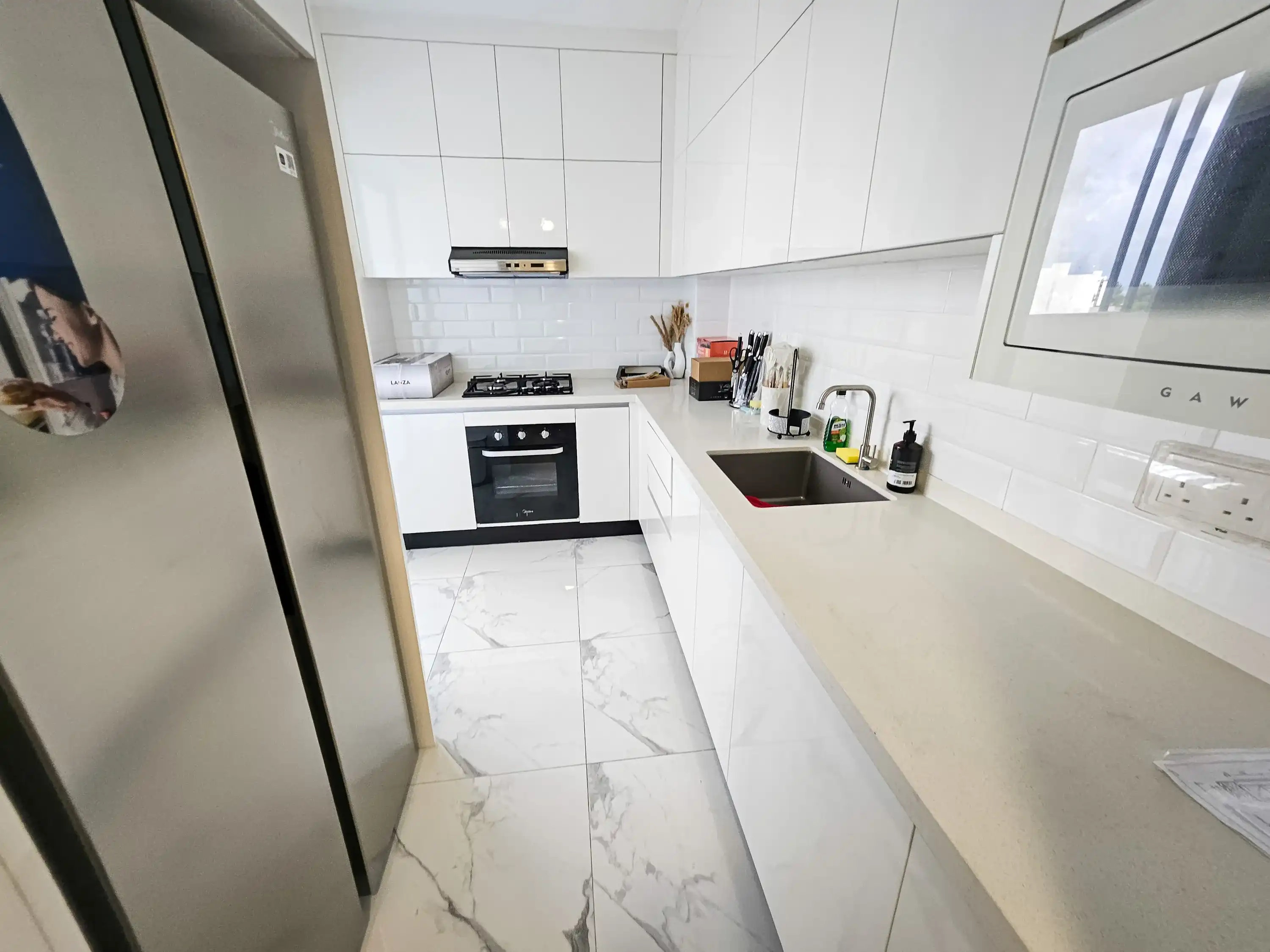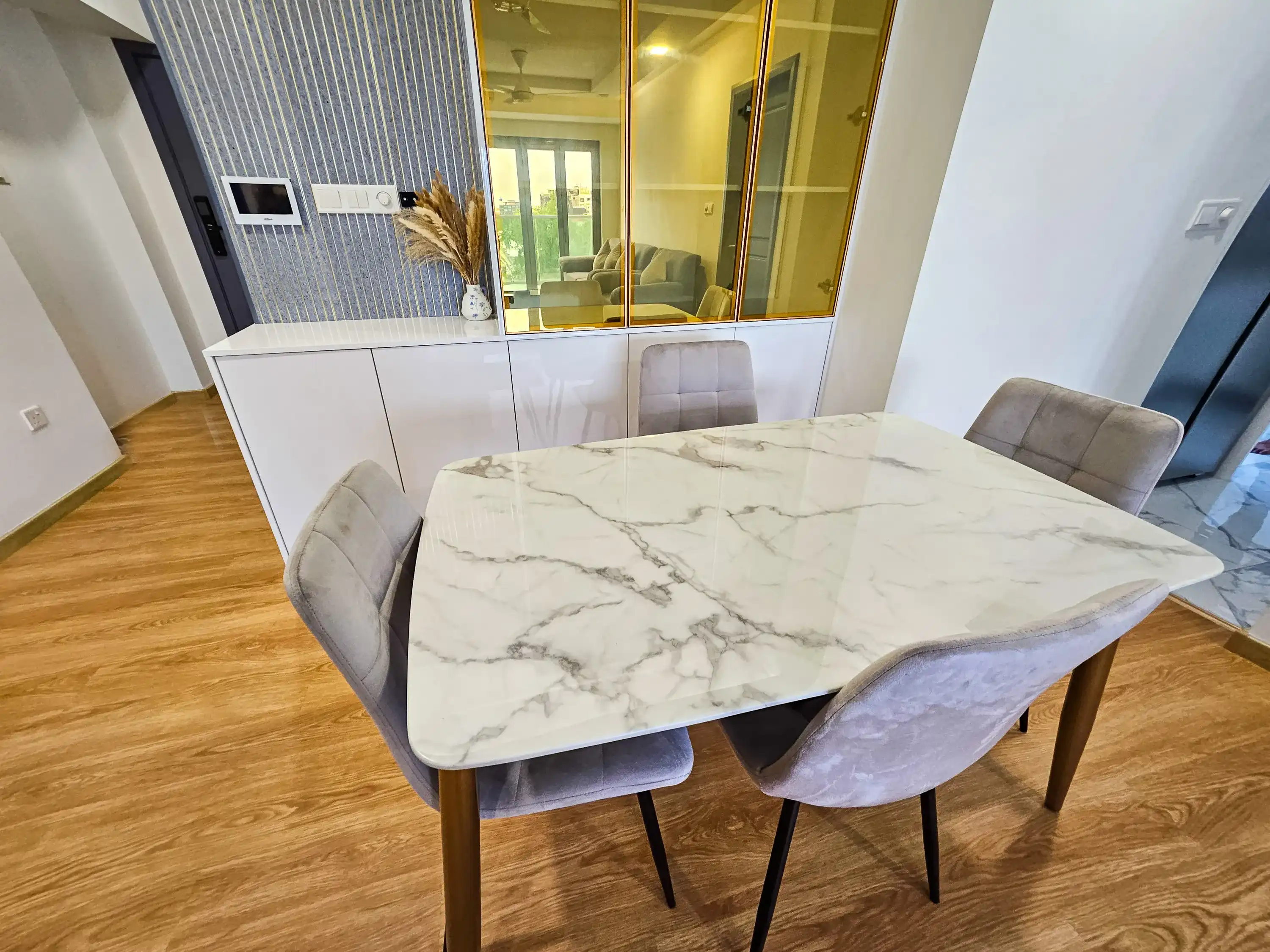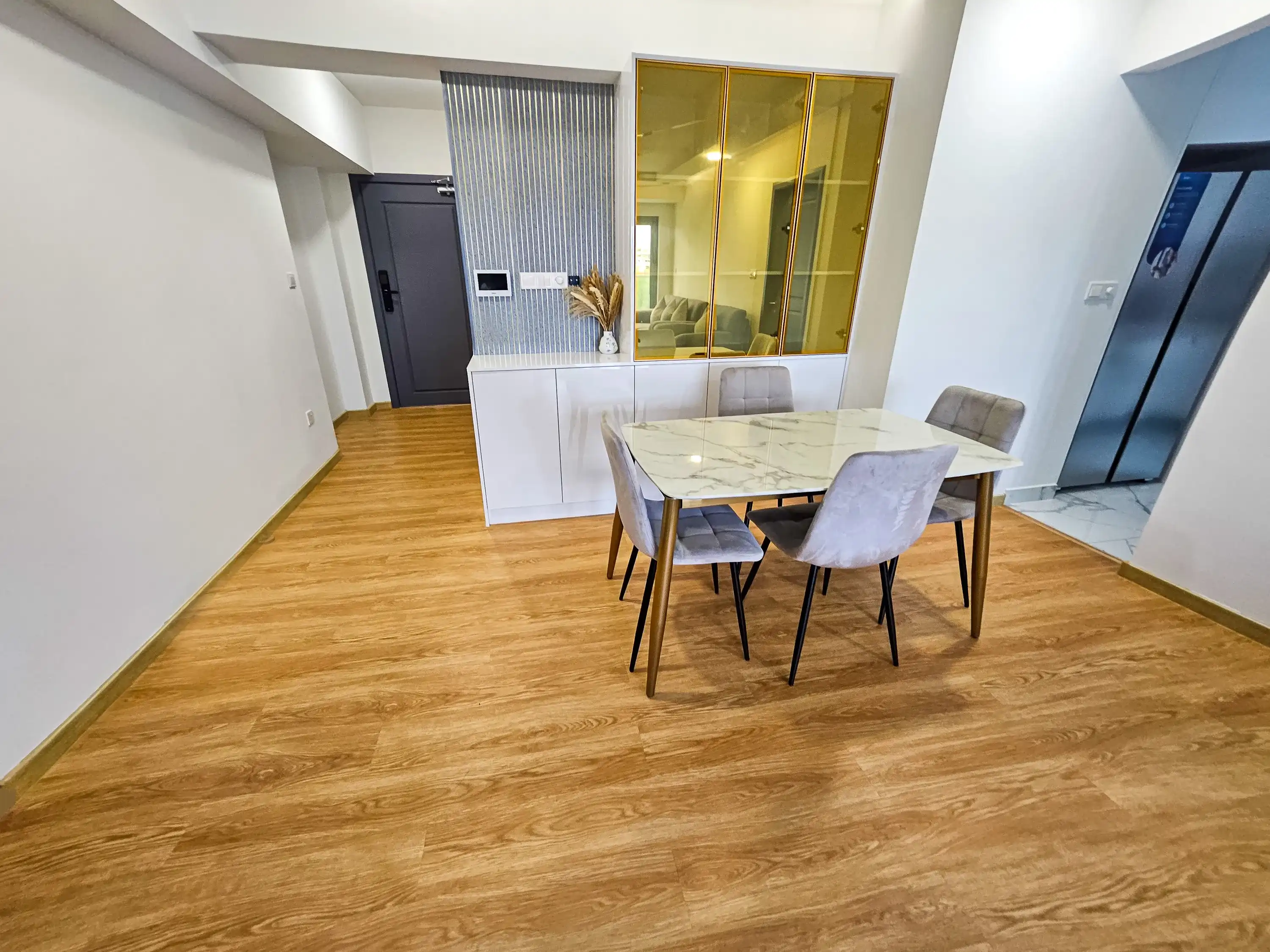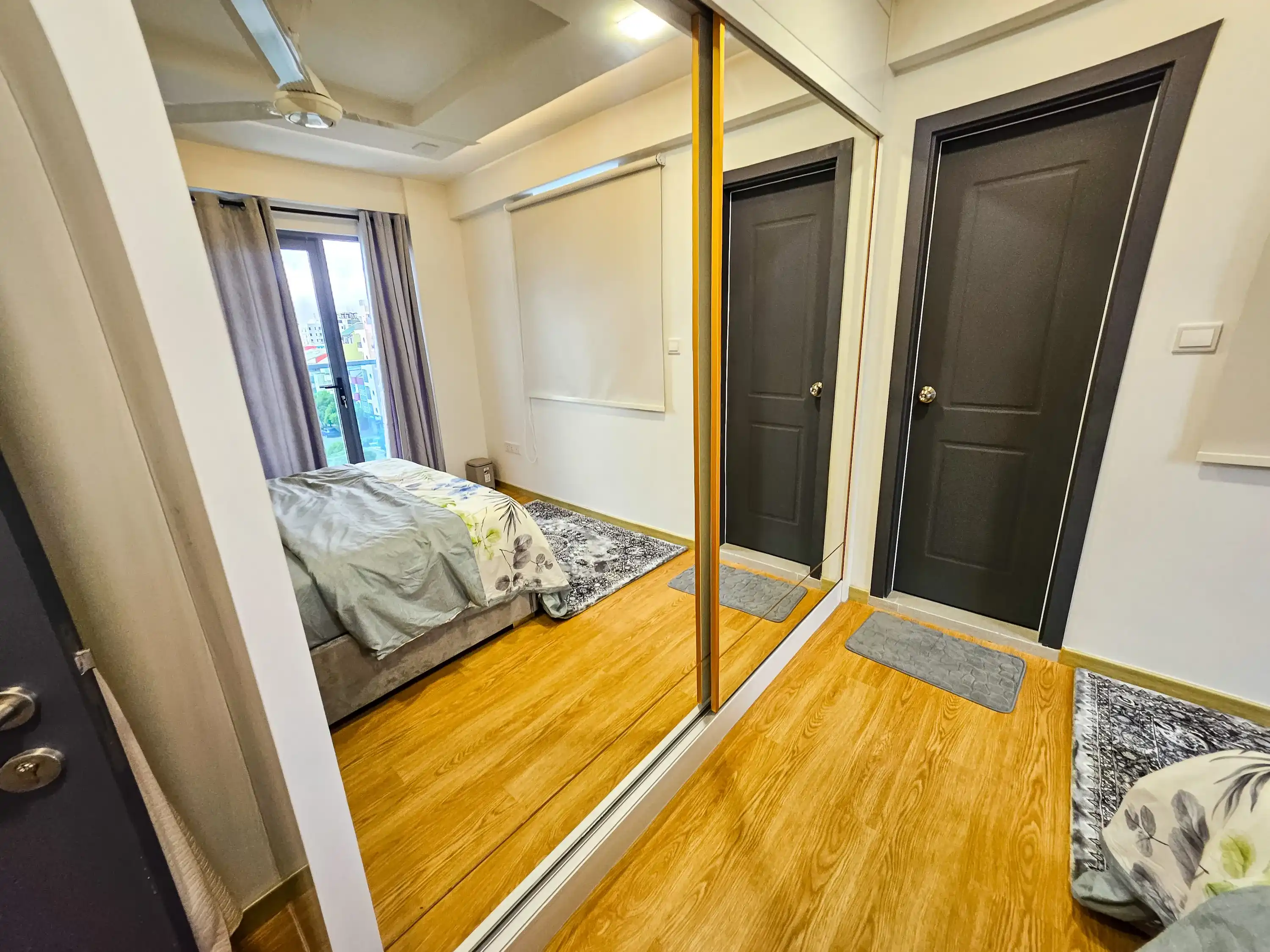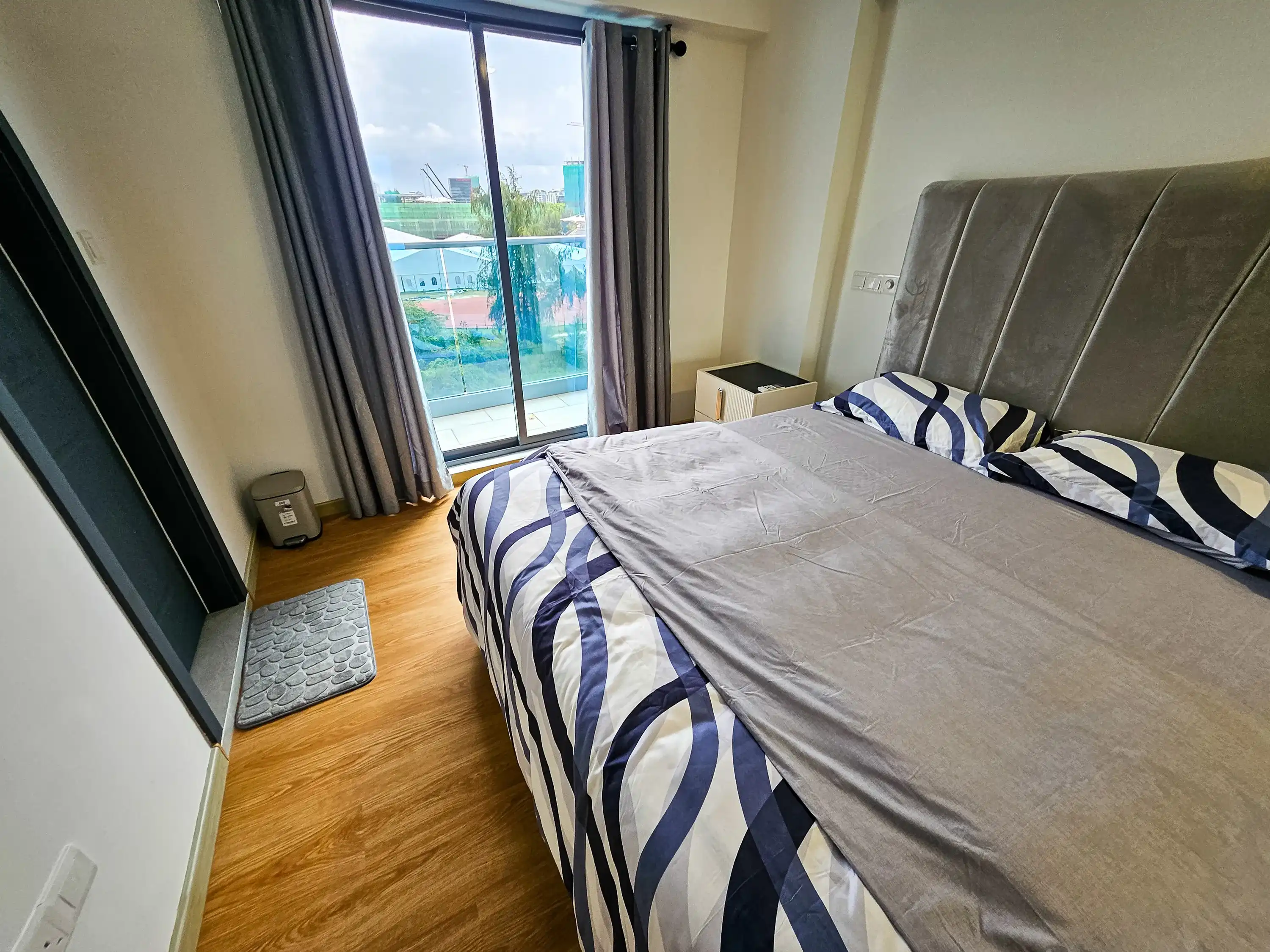 This 3+1-bedroom apartment is located on the 5th floor and comes fully furnished for modern living. Each bedroom features an attached bathroom and the entire unit is fully air-conditioned for year-round comfort. The apartment also includes three large balconies offering panoramic city views—perfect for relaxing, entertaining, or enjoying Hulhumalé’s vibrant surroundings.