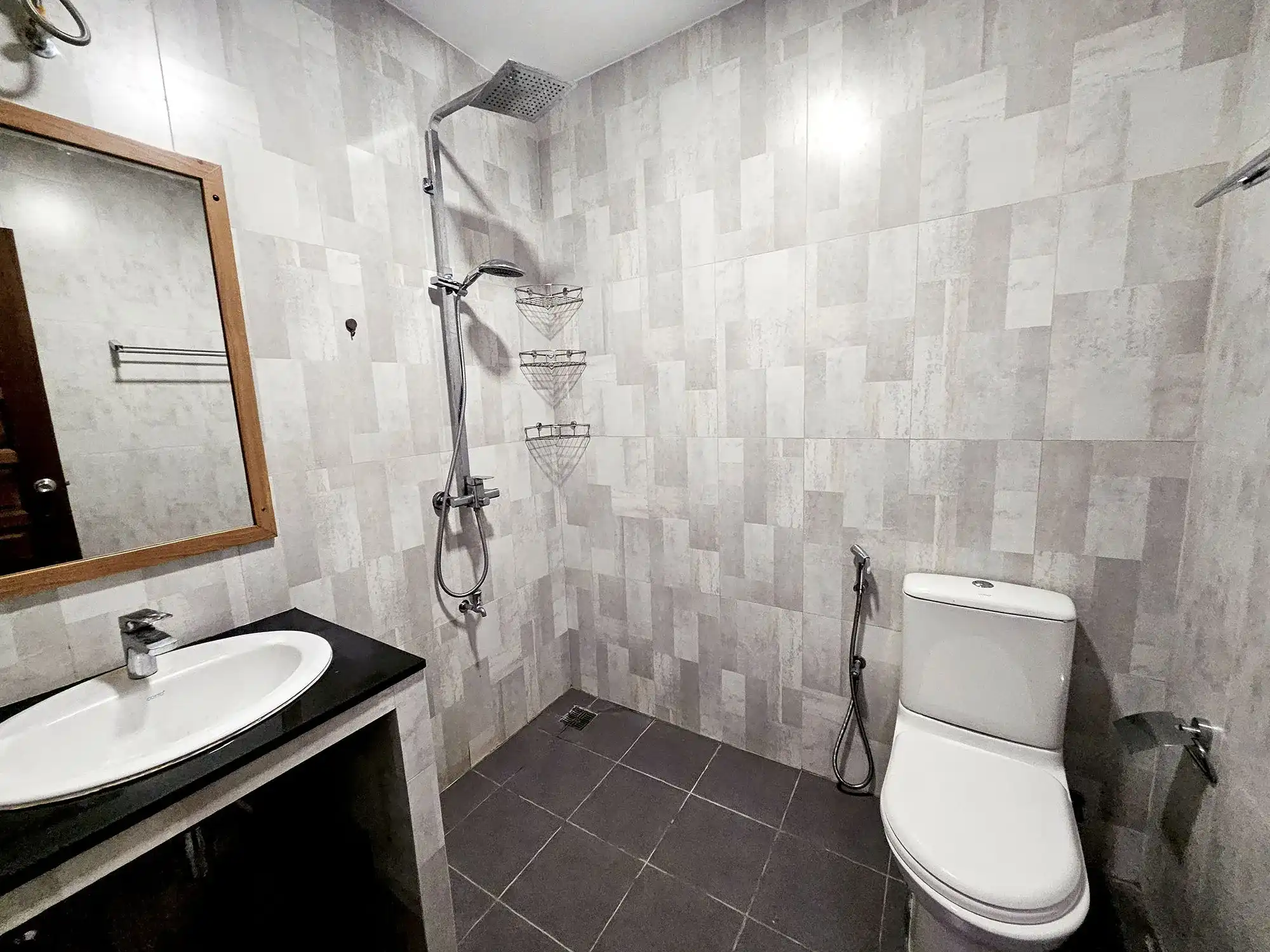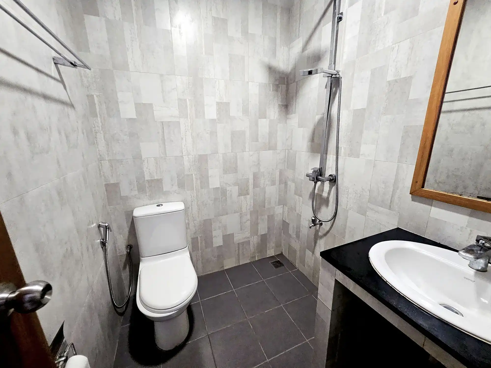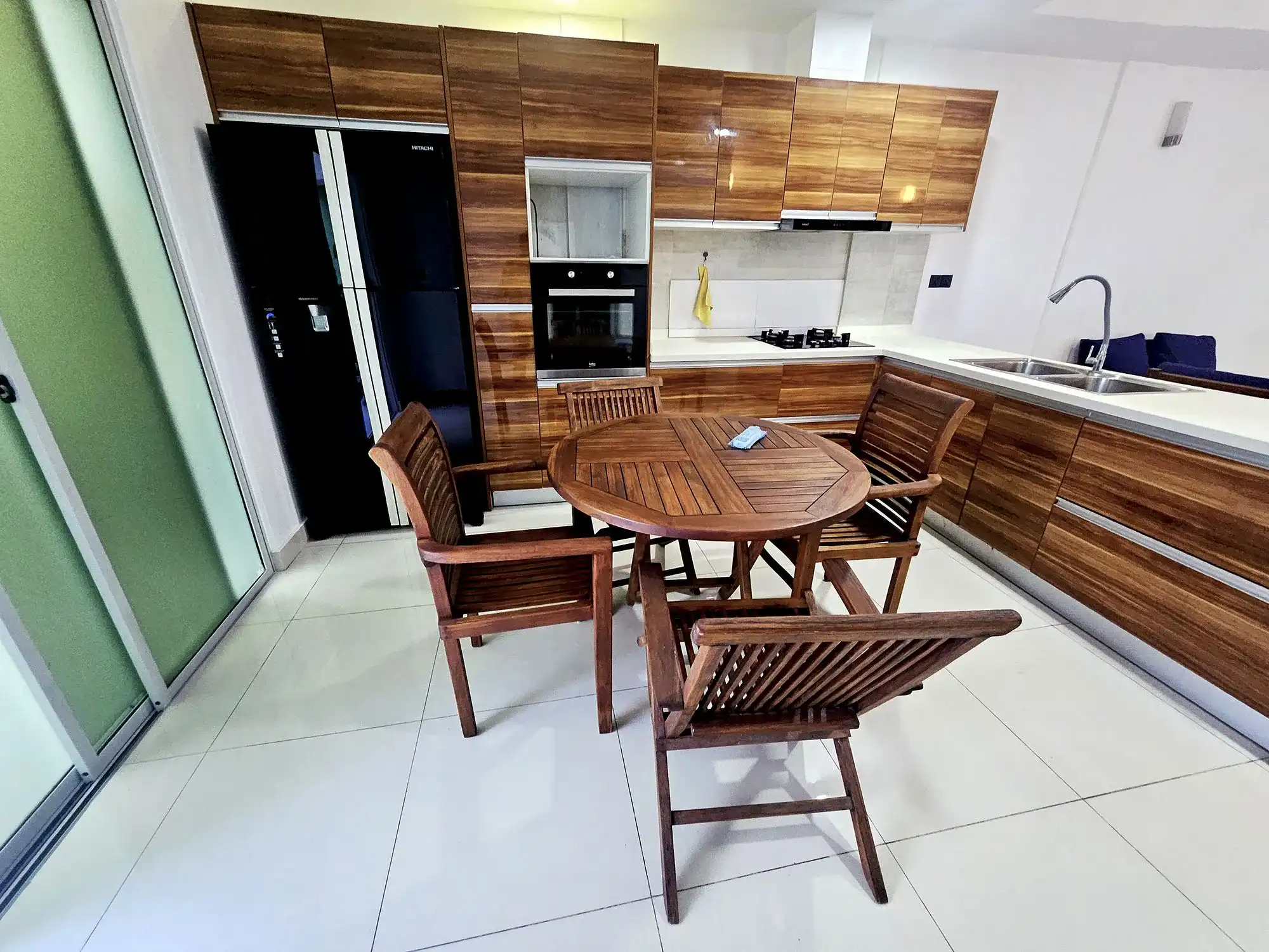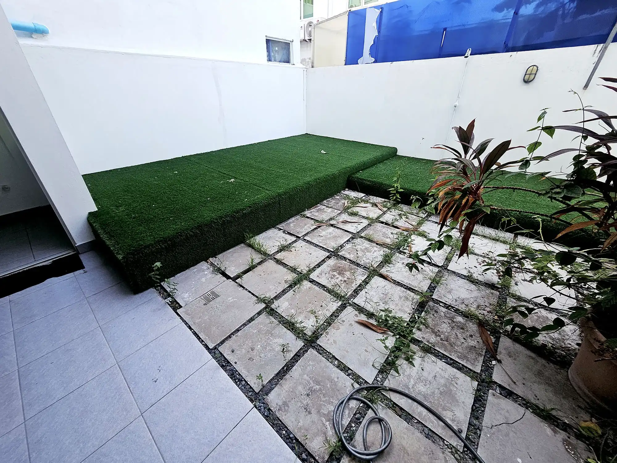 The apartment features spacious bedrooms with attached bathrooms split across two floors, ensuring comfort and privacy. It is fully air-conditioned and designed with excellent ventilation throughout the unit. With an open layout, a private garden space and a city-view balcony, residents can enjoy both practicality and comfort.