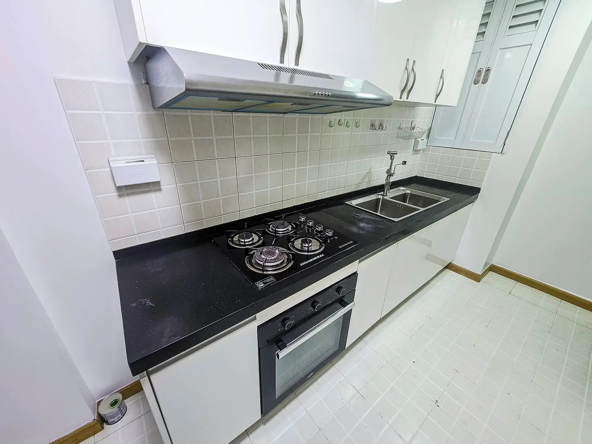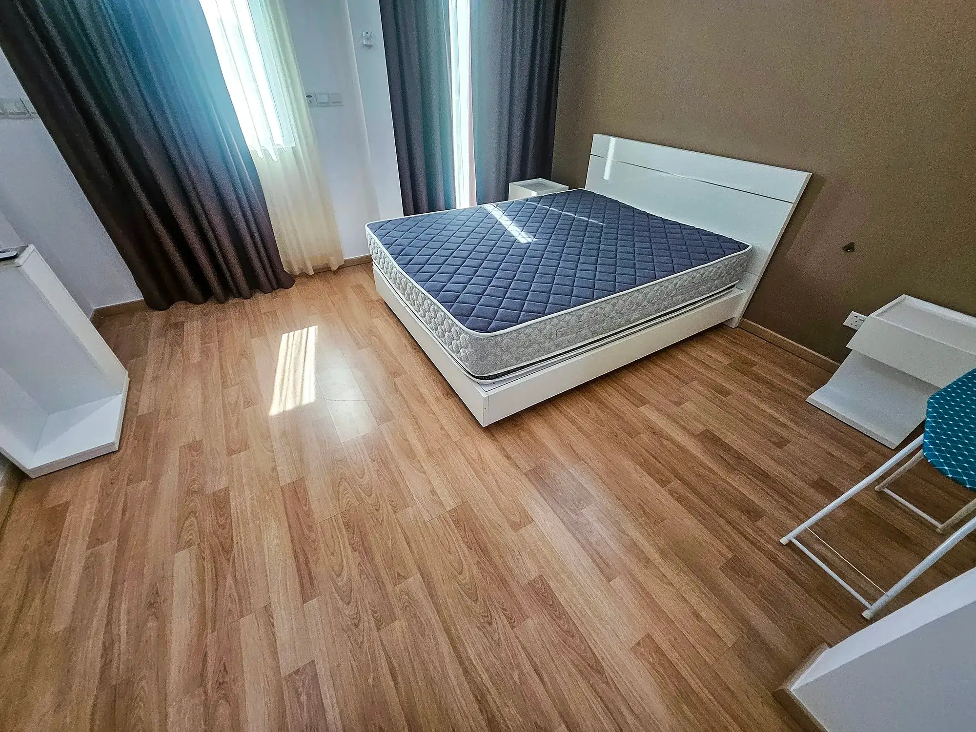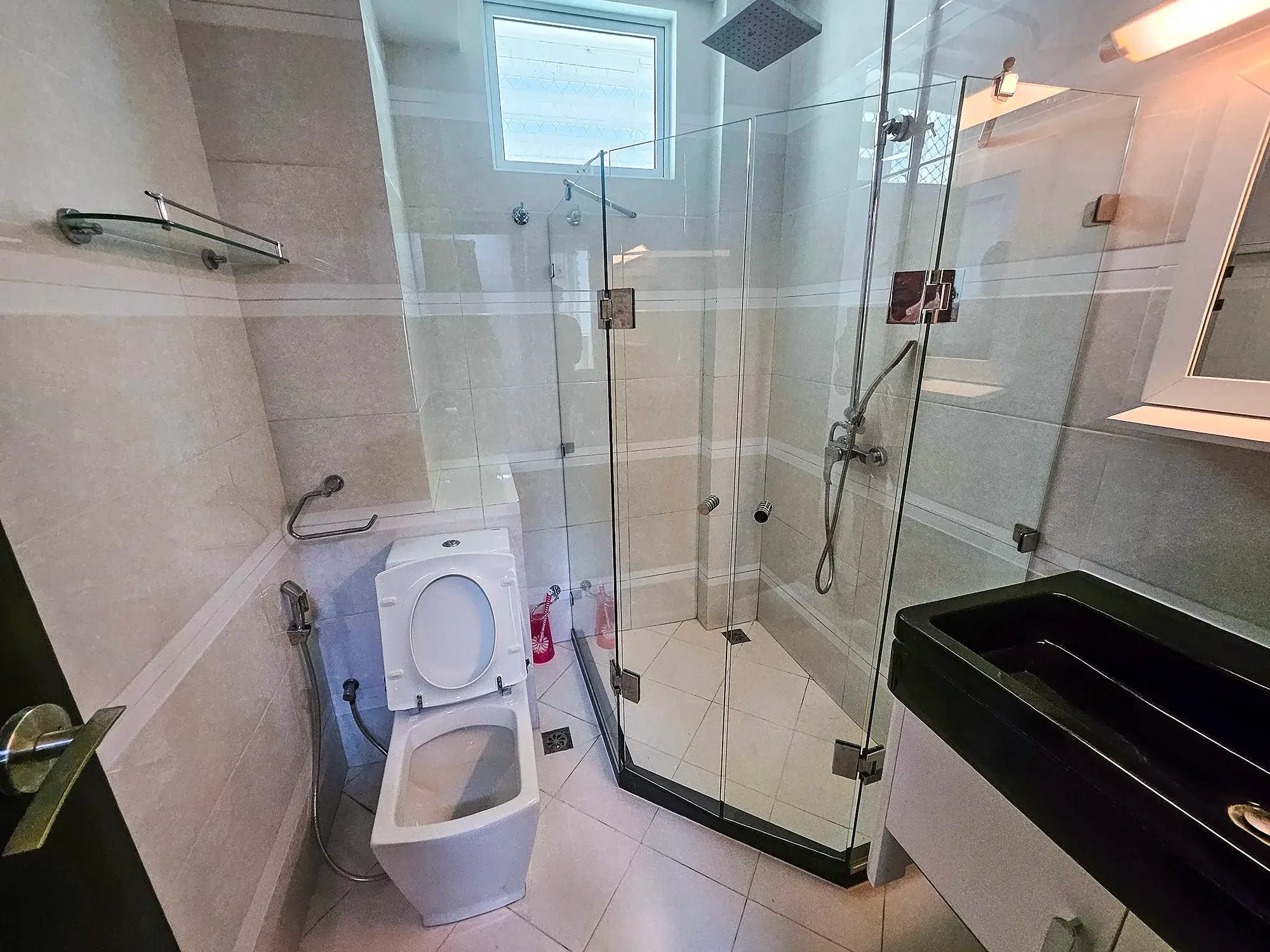 The kitchen is fully equipped with an oven, microwave, fridge, stove, hood, cutlery and rockeries. A separate laundry area adds to the convenience, making this penthouse a rare find in Hulhumale’ for those seeking space, privacy and luxury in one address.