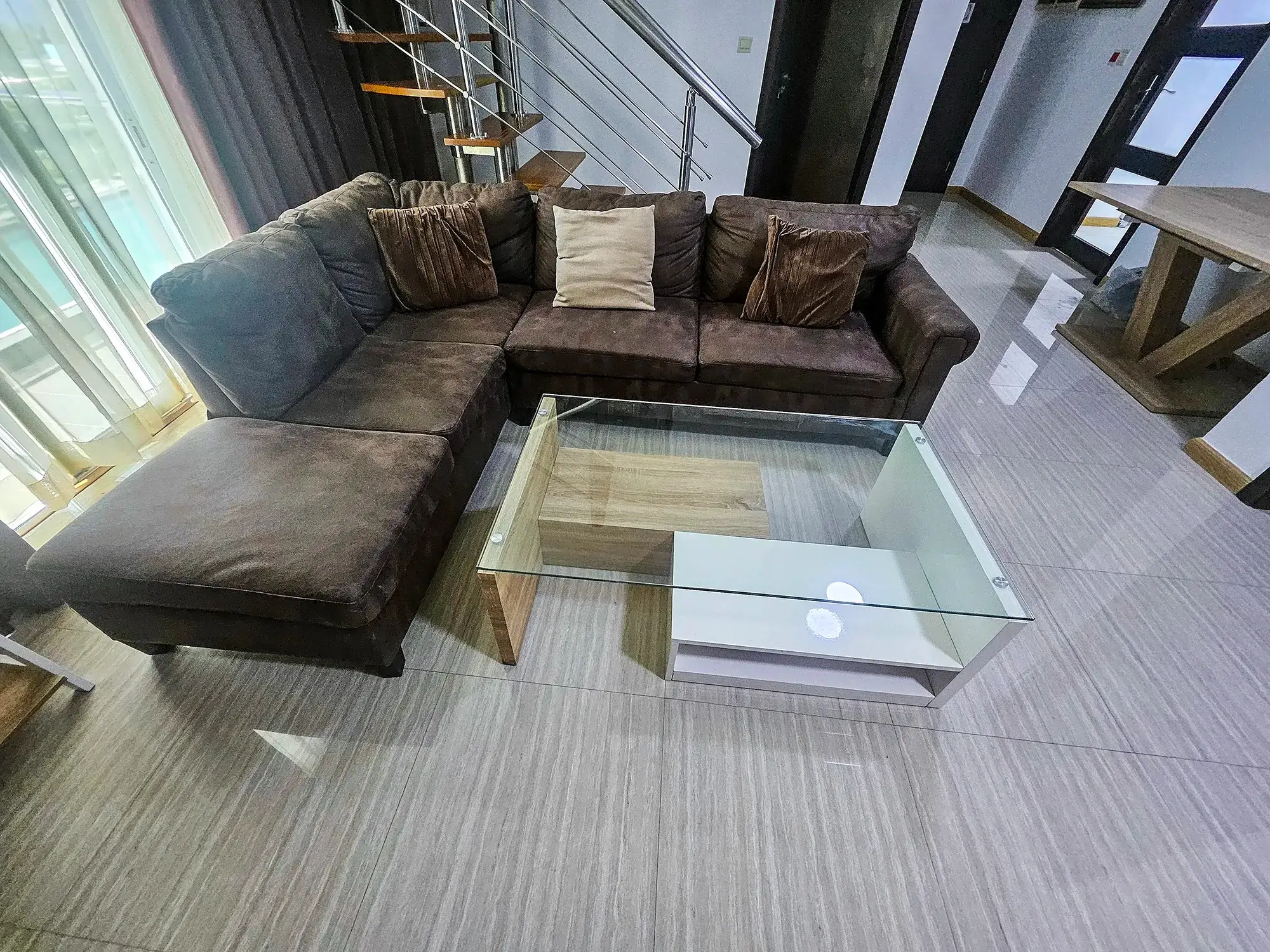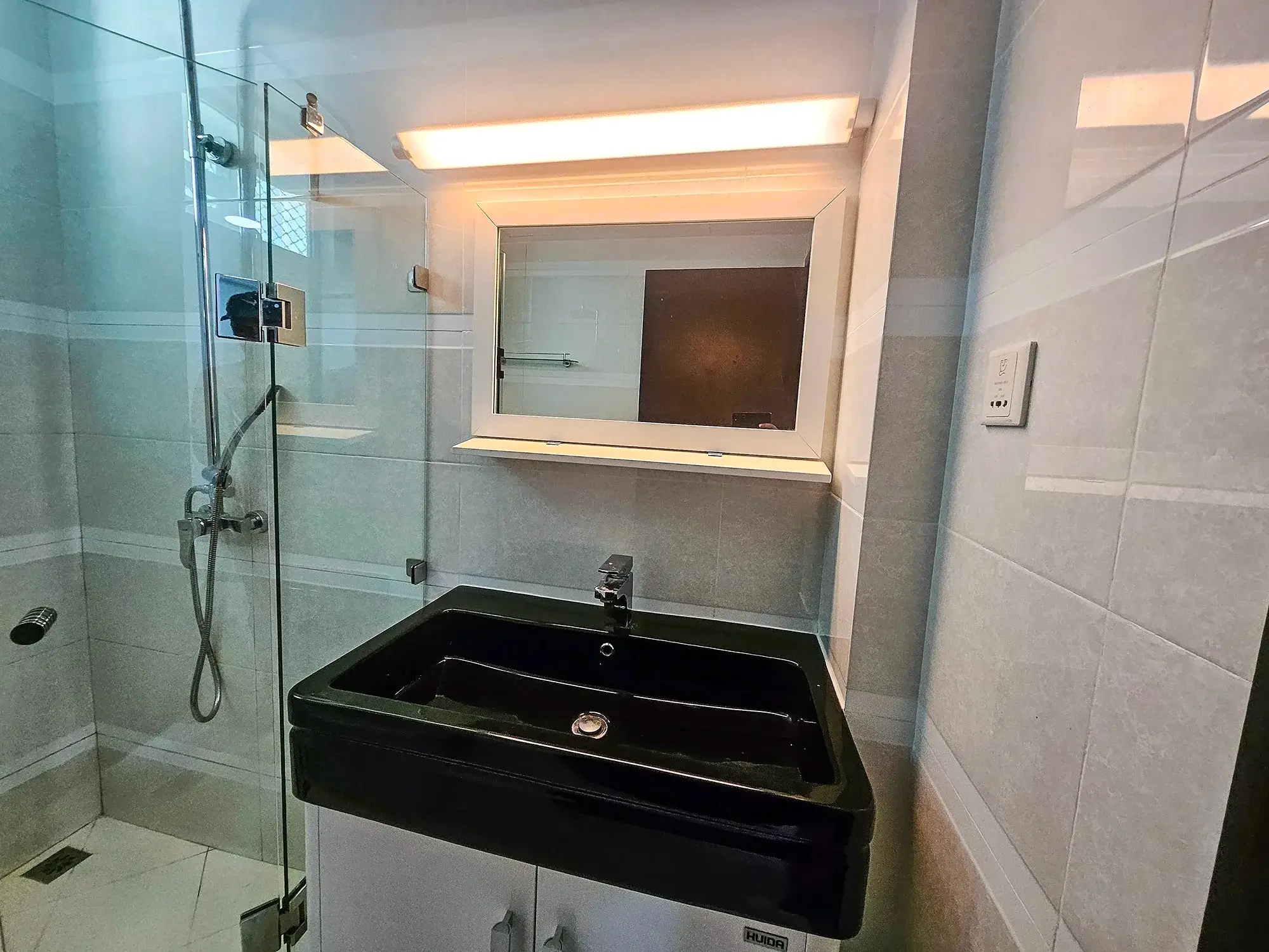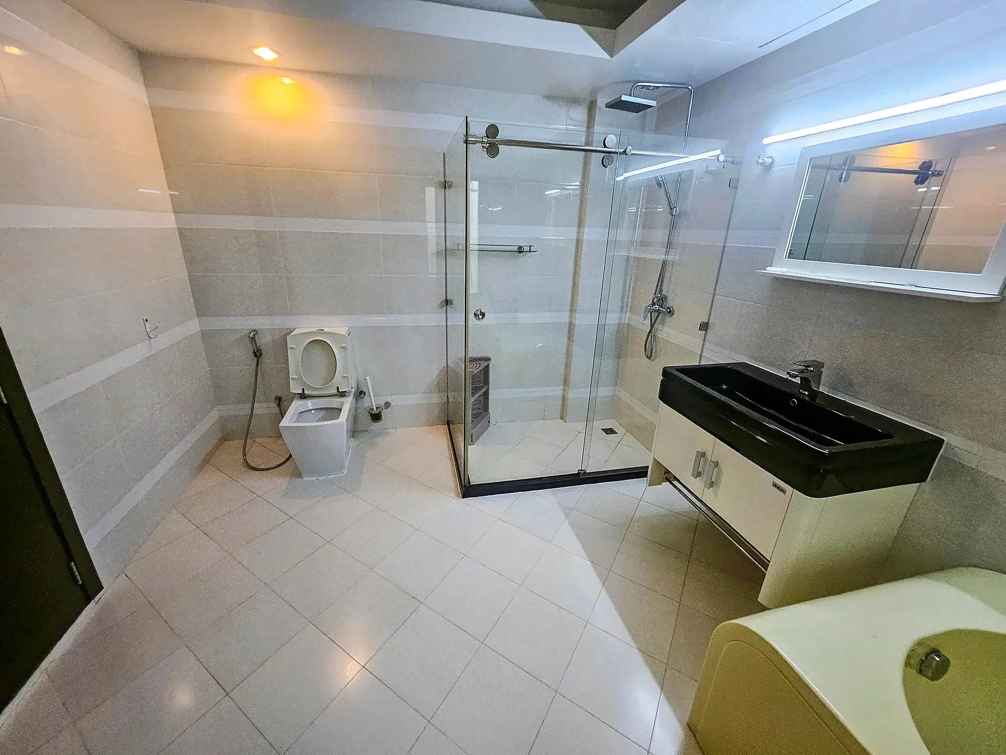 The kitchen is fully equipped with an oven, microwave, fridge, stove, hood, cutlery and rockeries. A separate laundry area adds to the convenience, making this penthouse a rare find in Hulhumale’ for those seeking space, privacy and luxury in one address.