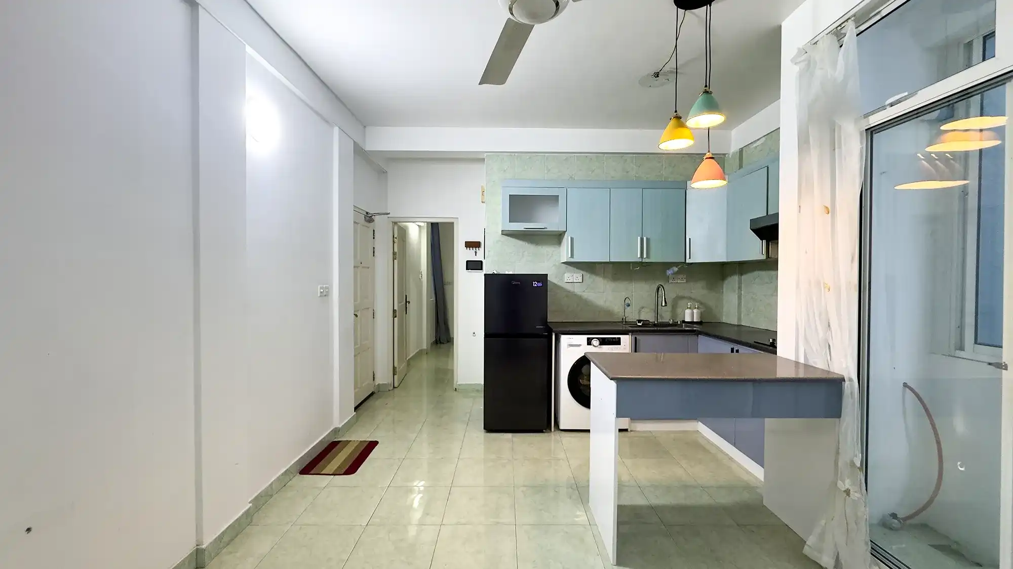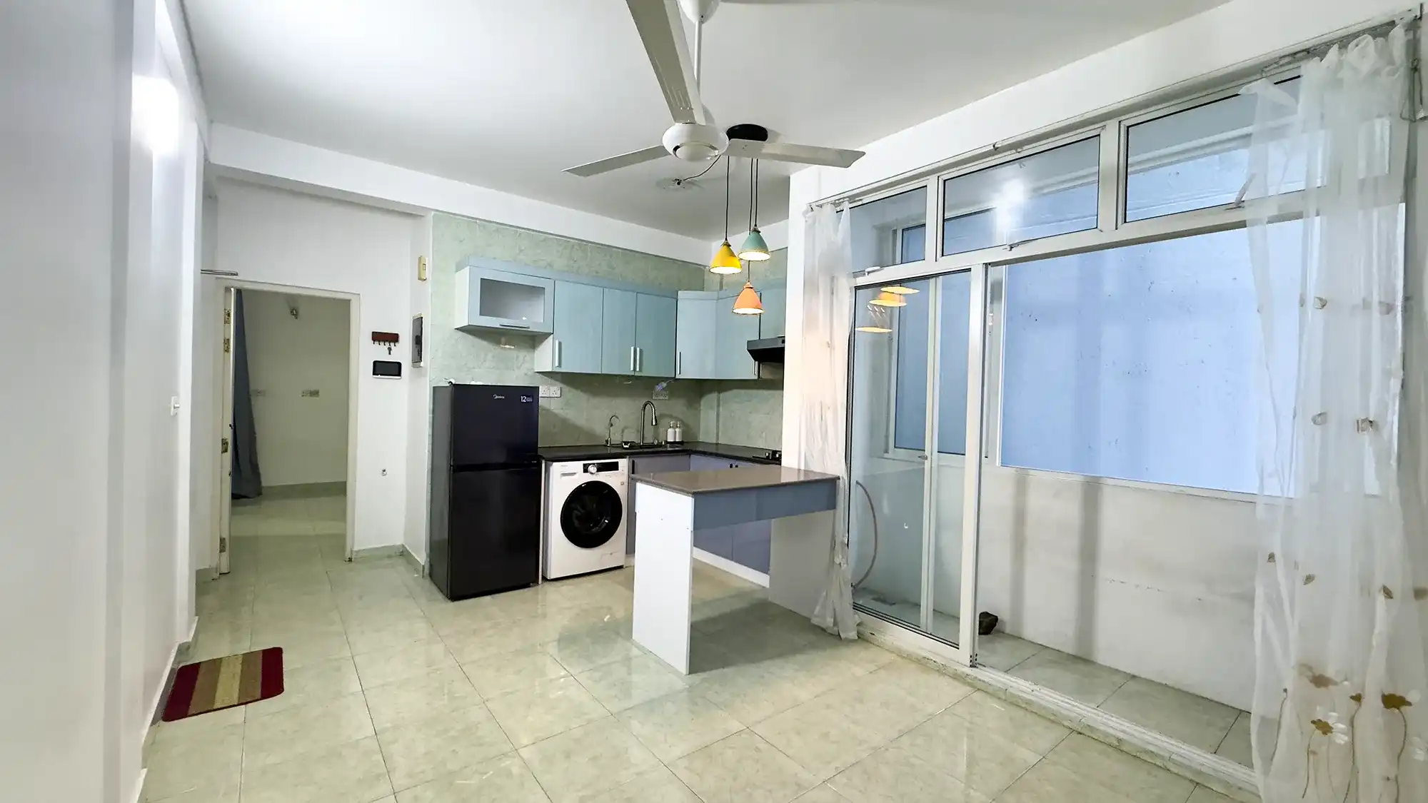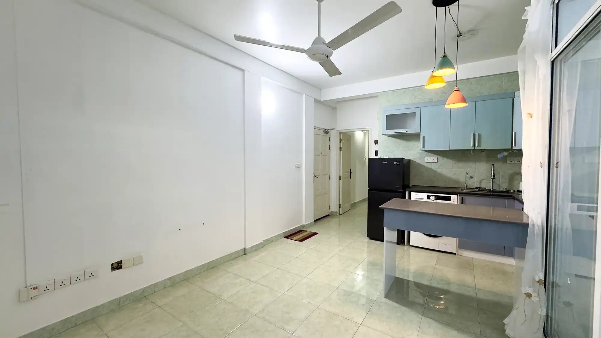 This semi-furnished 1-bedroom apartment with an attached bathroom is located on the 2nd floor of a residential building near Majeedhiyyaa School and the Parliament area in Henveyru, Male'. Positioned in a convenient and well-connected neighbourhood, the property offers easy access to schools, offices, shops and other daily amenities.