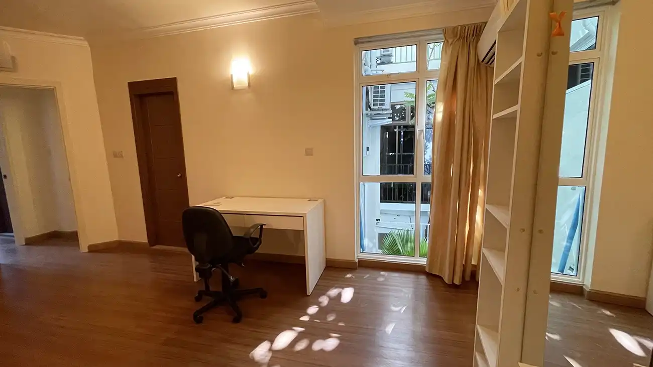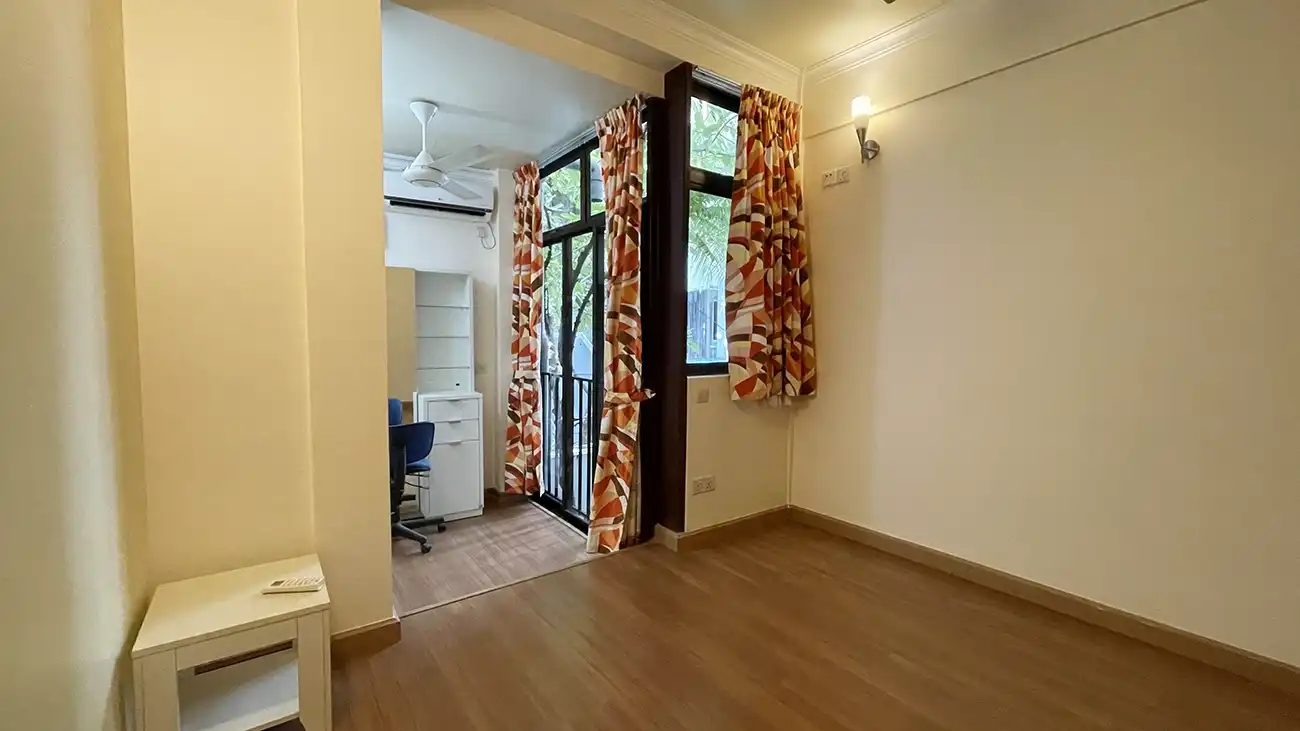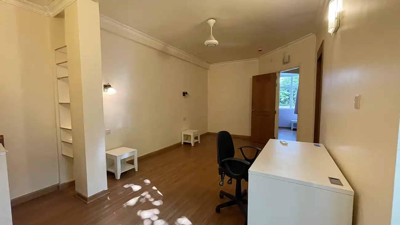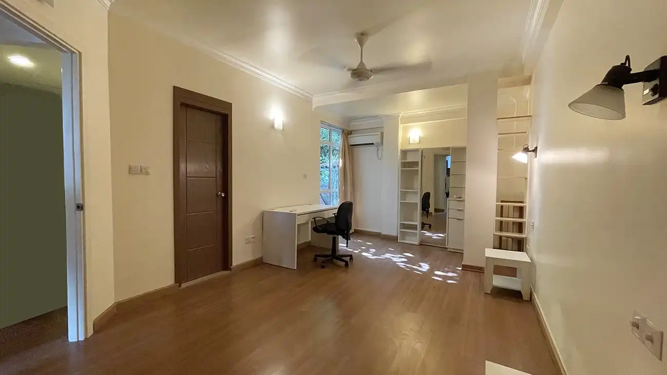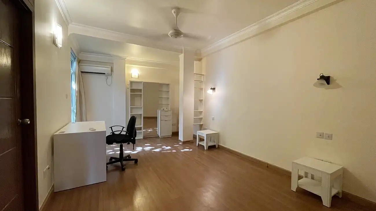 This semi furnished 3-bedroom duplex apartment is spread across the 1st and 2nd floors and features 3 bedrooms with 3 attached bathrooms. The entire apartment is fully air-conditioned and includes a spacious layout with an extra-large study room, suitable for a home office or additional living space. The open kitchen is fully equipped with a hob and hood, microwave, refrigerator, oven and laundry area. Large balconies connected to the living area and study room provide excellent ventilation and natural light.