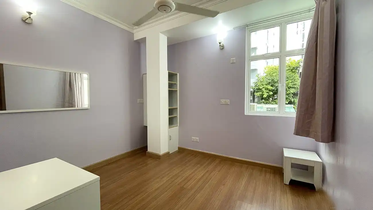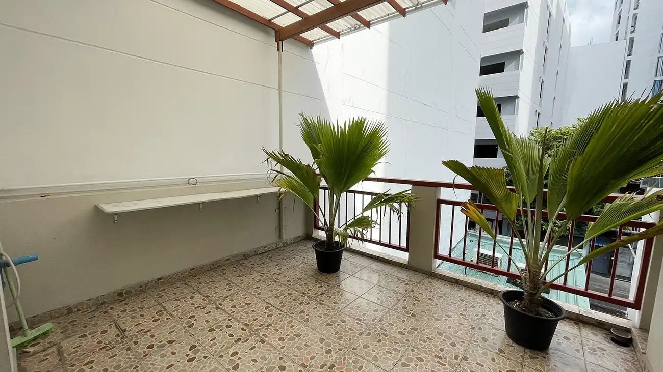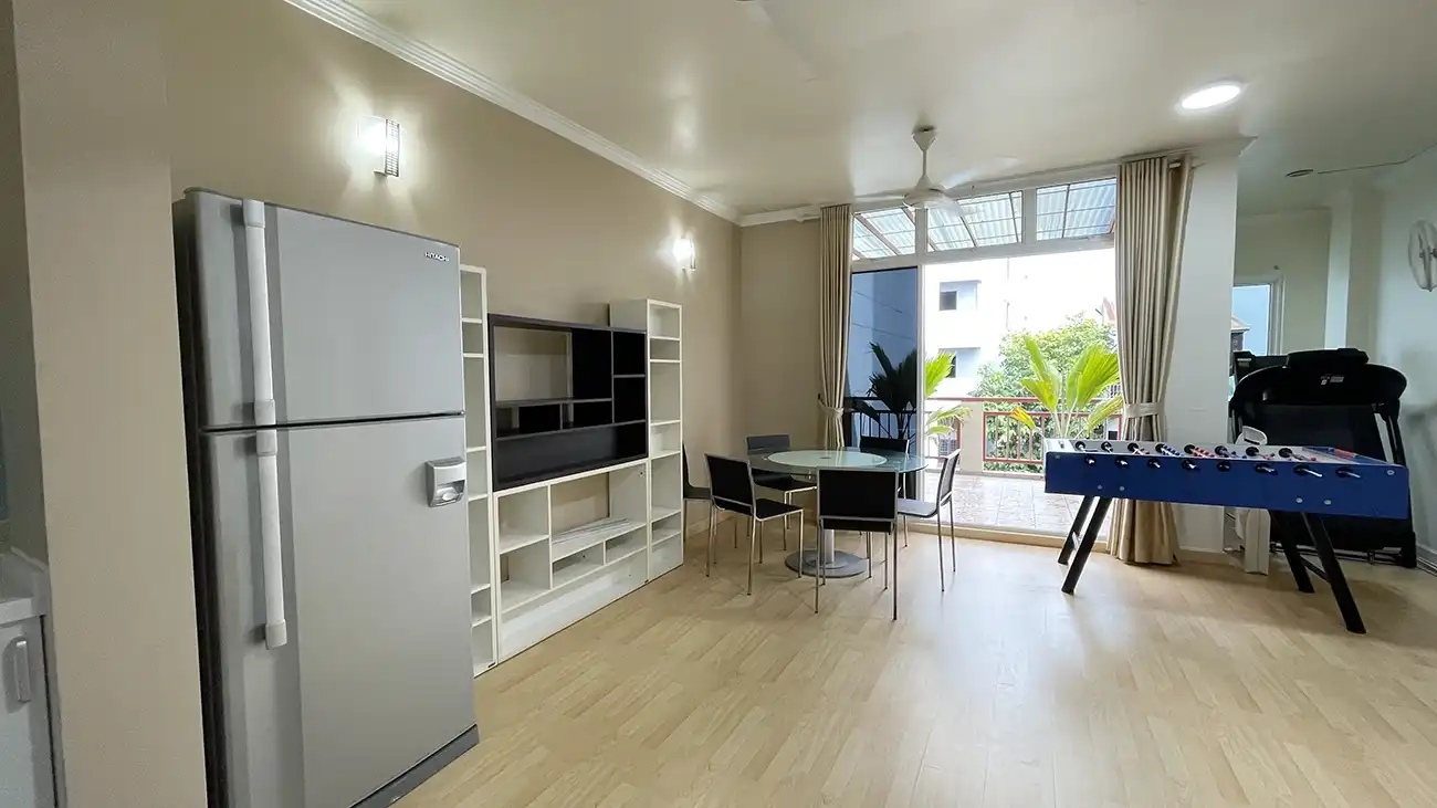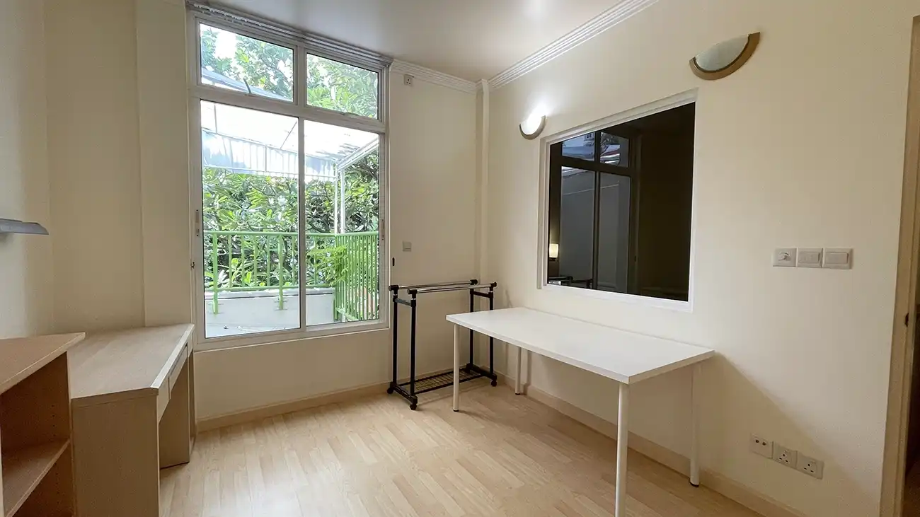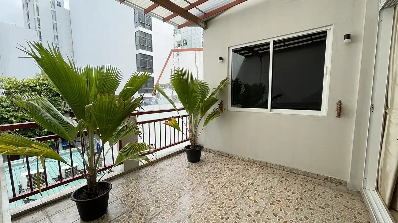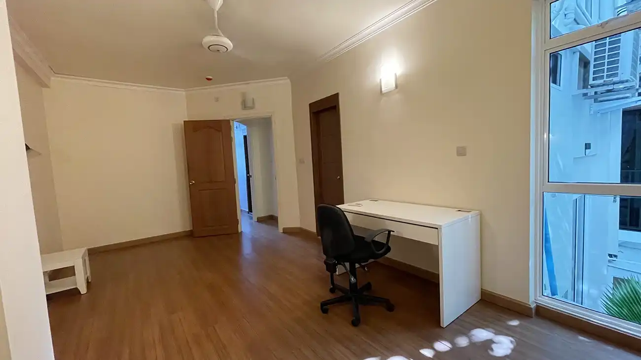 This semi furnished 3-bedroom duplex apartment is spread across the 1st and 2nd floors and features 3 bedrooms with 3 attached bathrooms. The entire apartment is fully air-conditioned and includes a spacious layout with an extra-large study room, suitable for a home office or additional living space. The open kitchen is fully equipped with a hob and hood, microwave, refrigerator, oven and laundry area. Large balconies connected to the living area and study room provide excellent ventilation and natural light.