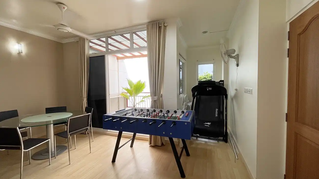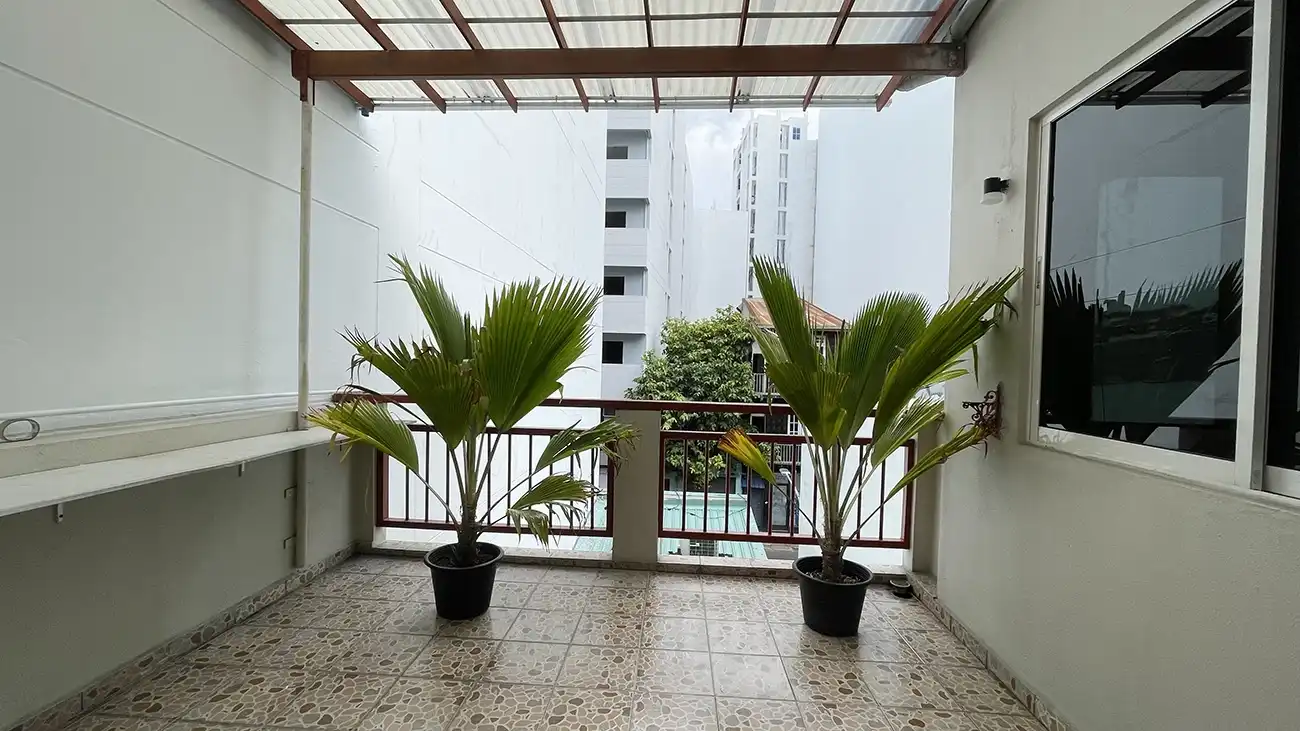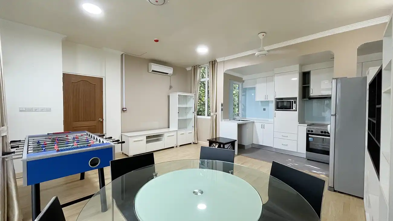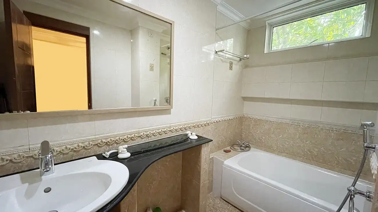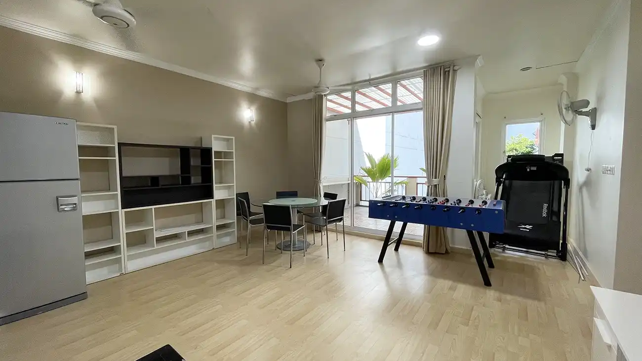This semi furnished 3-bedroom duplex apartment is spread across the 1st and 2nd floors and features 3 bedrooms with 3 attached bathrooms. The entire apartment is fully air-conditioned and includes a spacious layout with an extra-large study room, suitable for a home office or additional living space. The open kitchen is fully equipped with a hob and hood, microwave, refrigerator, oven and laundry area. Large balconies connected to the living area and study room provide excellent ventilation and natural light.