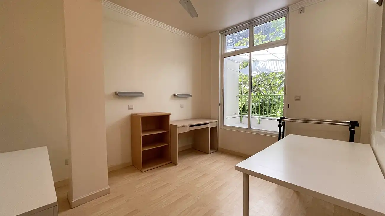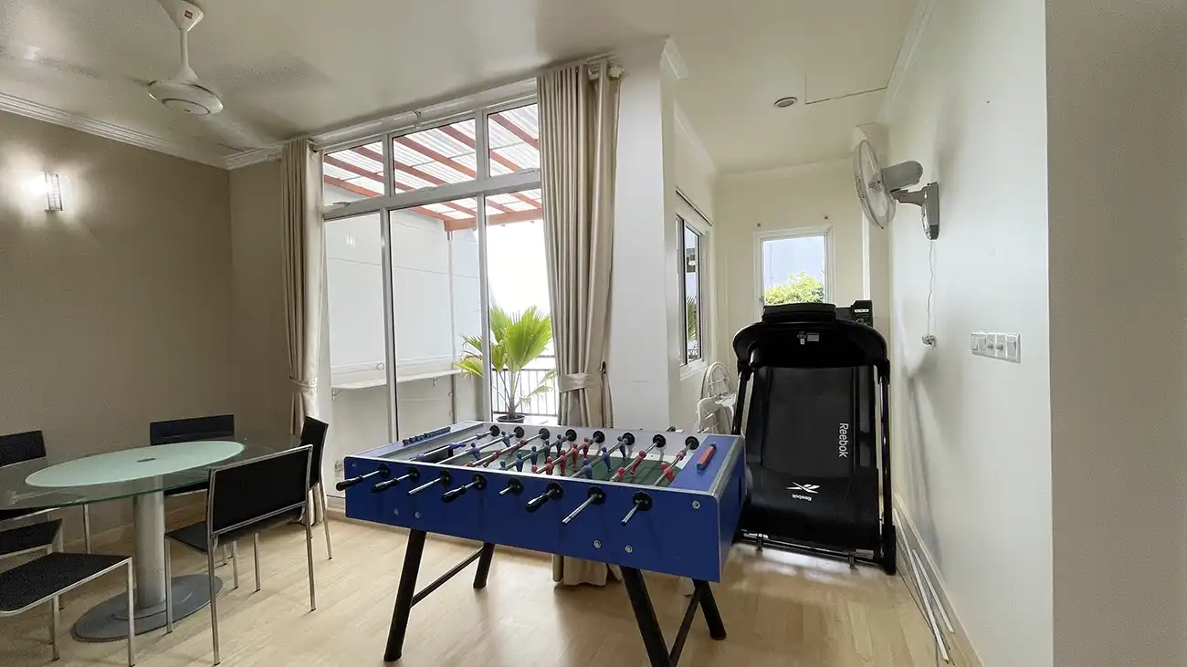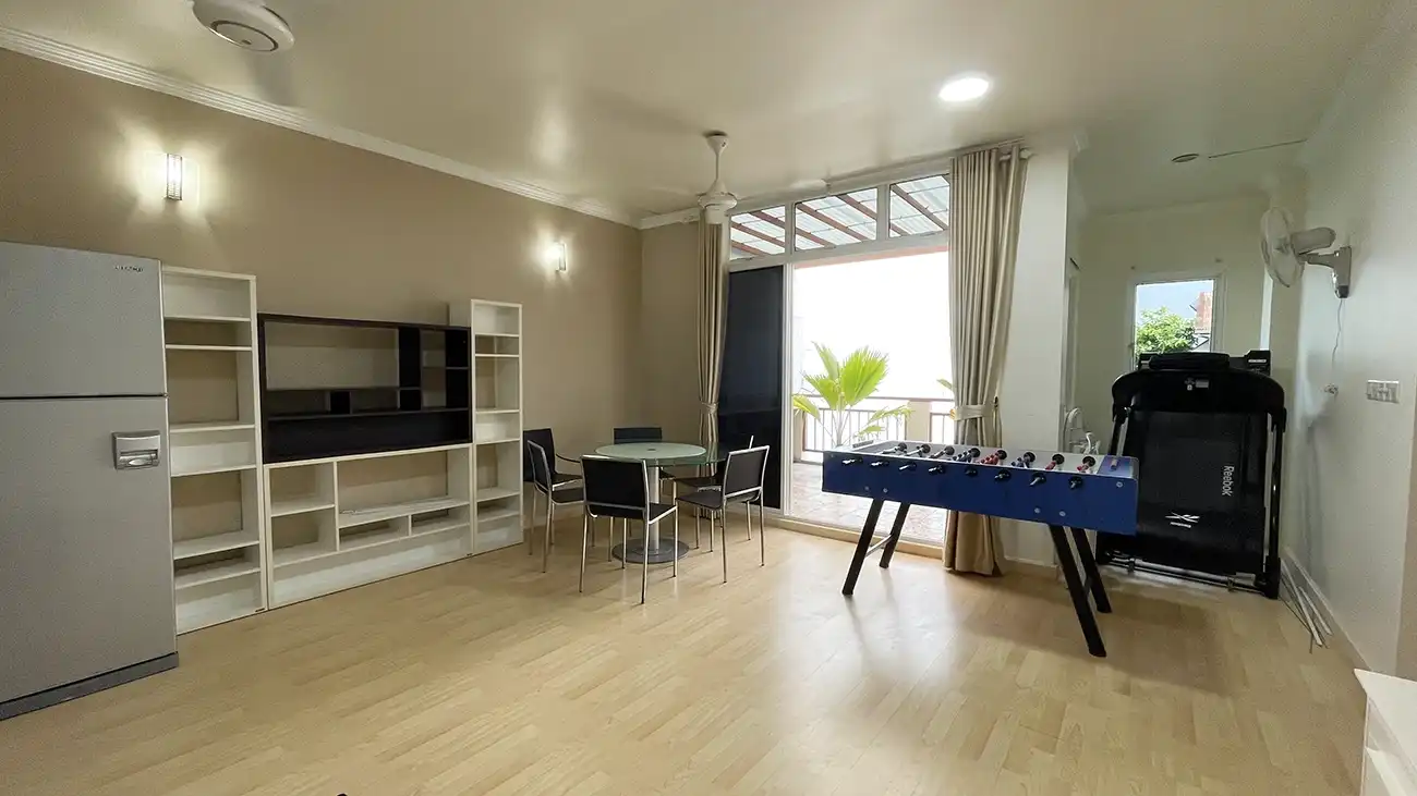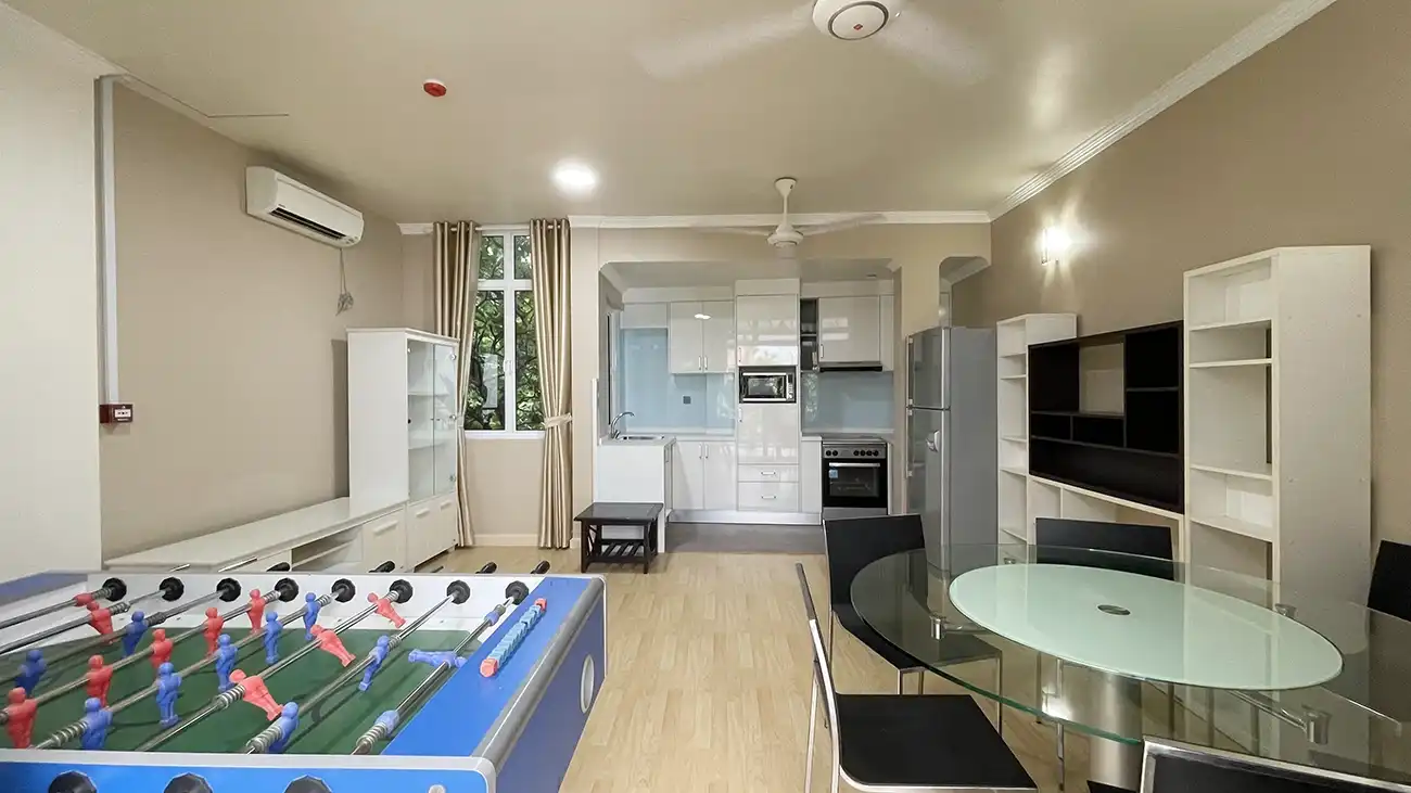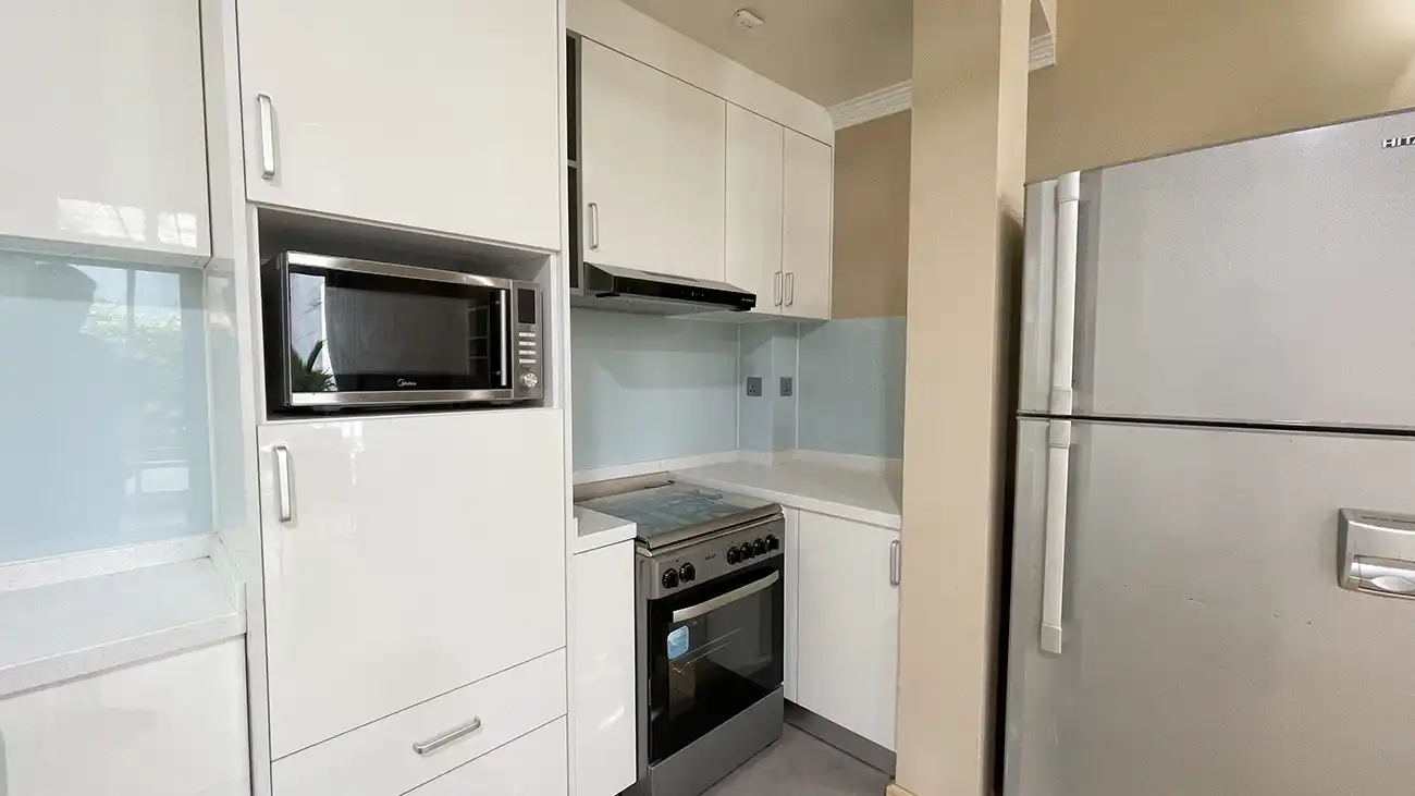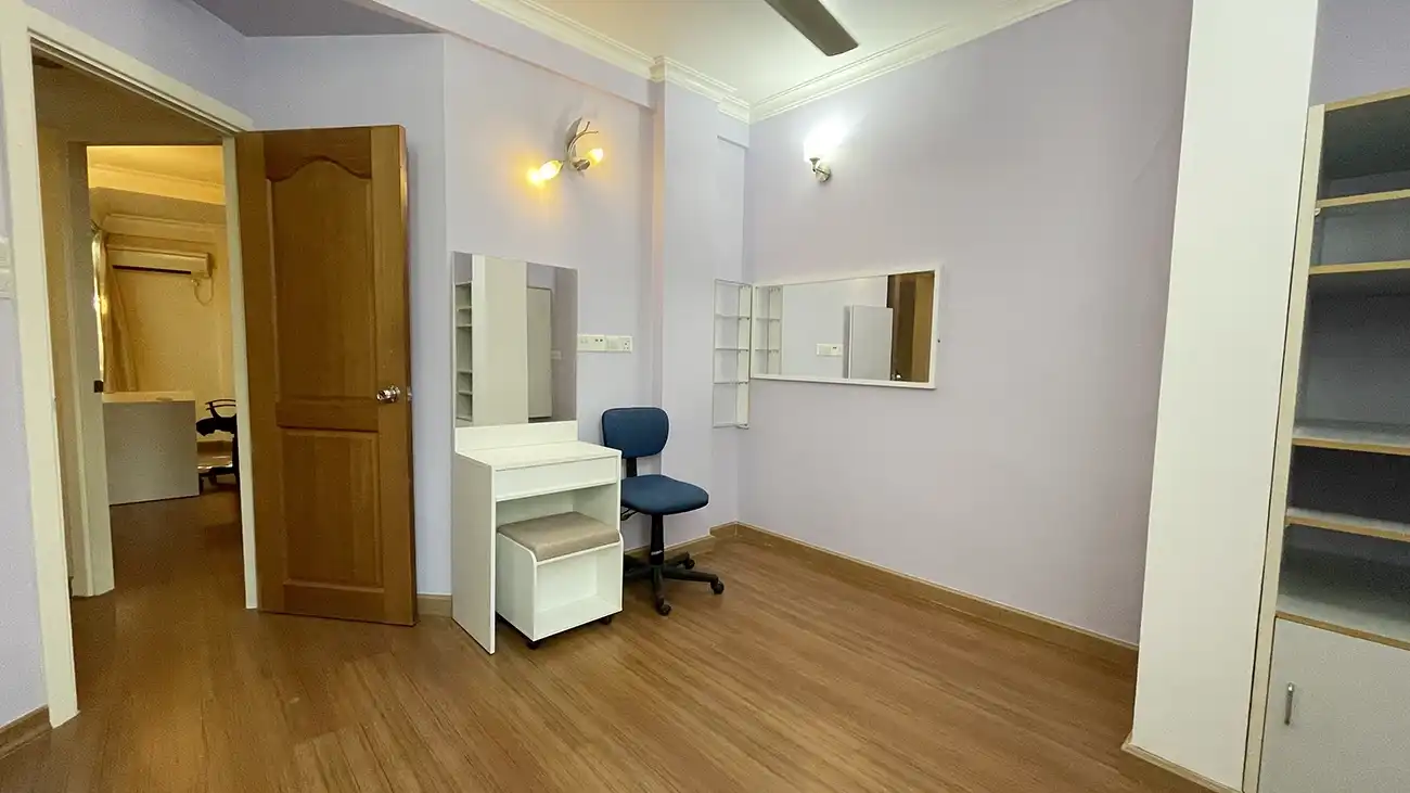 This semi furnished 3-bedroom duplex apartment is spread across the 1st and 2nd floors and features 3 bedrooms with 3 attached bathrooms. The entire apartment is fully air-conditioned and includes a spacious layout with an extra-large study room, suitable for a home office or additional living space. The open kitchen is fully equipped with a hob and hood, microwave, refrigerator, oven and laundry area. Large balconies connected to the living area and study room provide excellent ventilation and natural light.