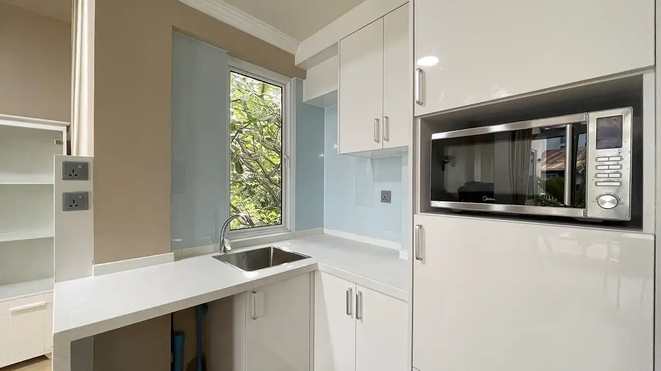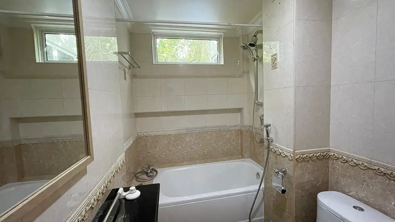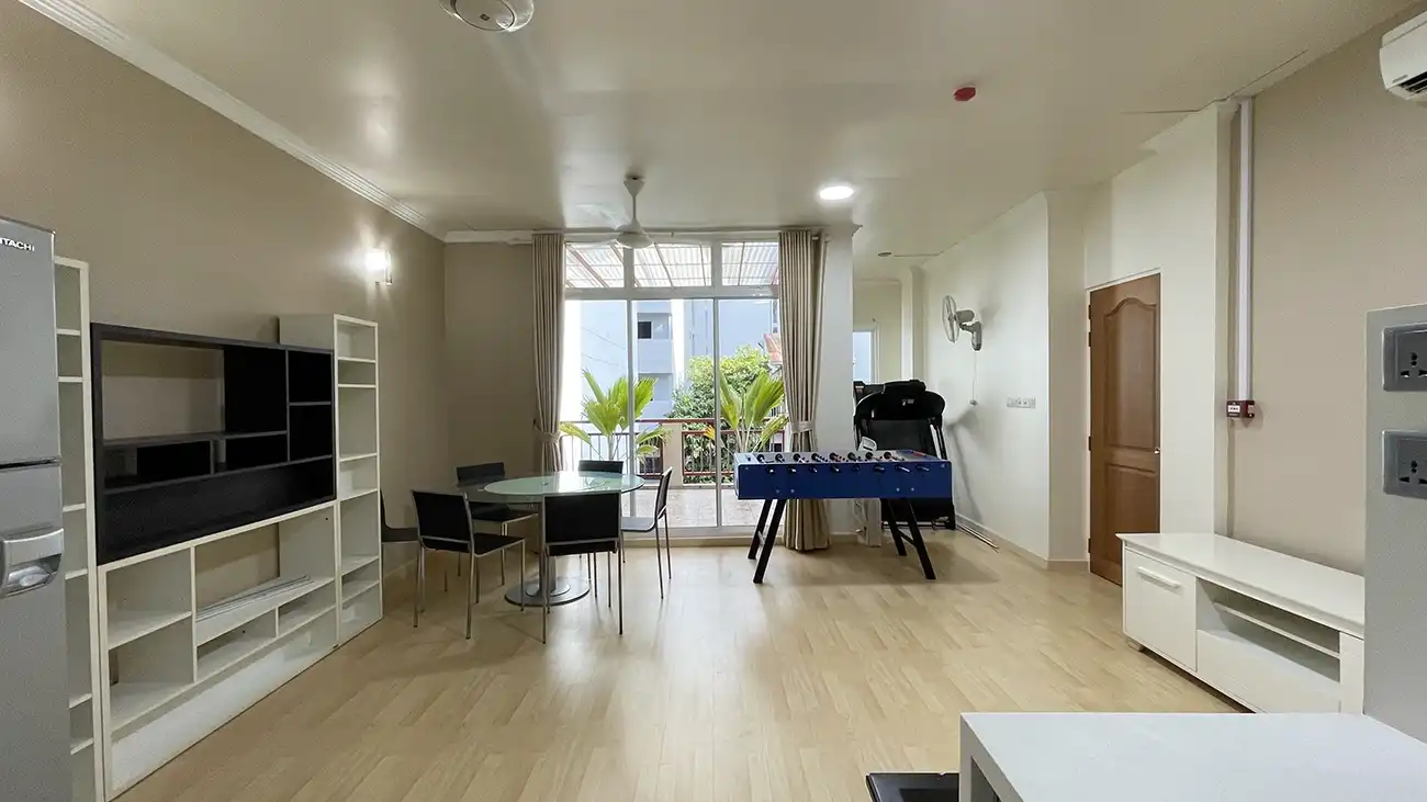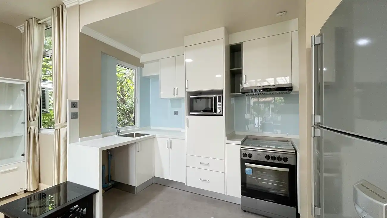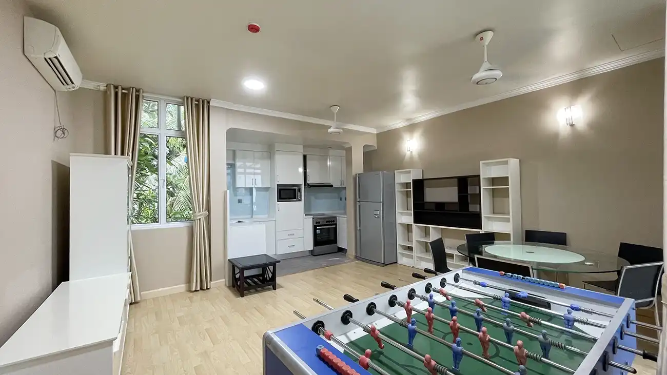 This semi furnished 3-bedroom duplex apartment is spread across the 1st and 2nd floors and features 3 bedrooms with 3 attached bathrooms. The entire apartment is fully air-conditioned and includes a spacious layout with an extra-large study room, suitable for a home office or additional living space. The open kitchen is fully equipped with a hob and hood, microwave, refrigerator, oven and laundry area. Large balconies connected to the living area and study room provide excellent ventilation and natural light.