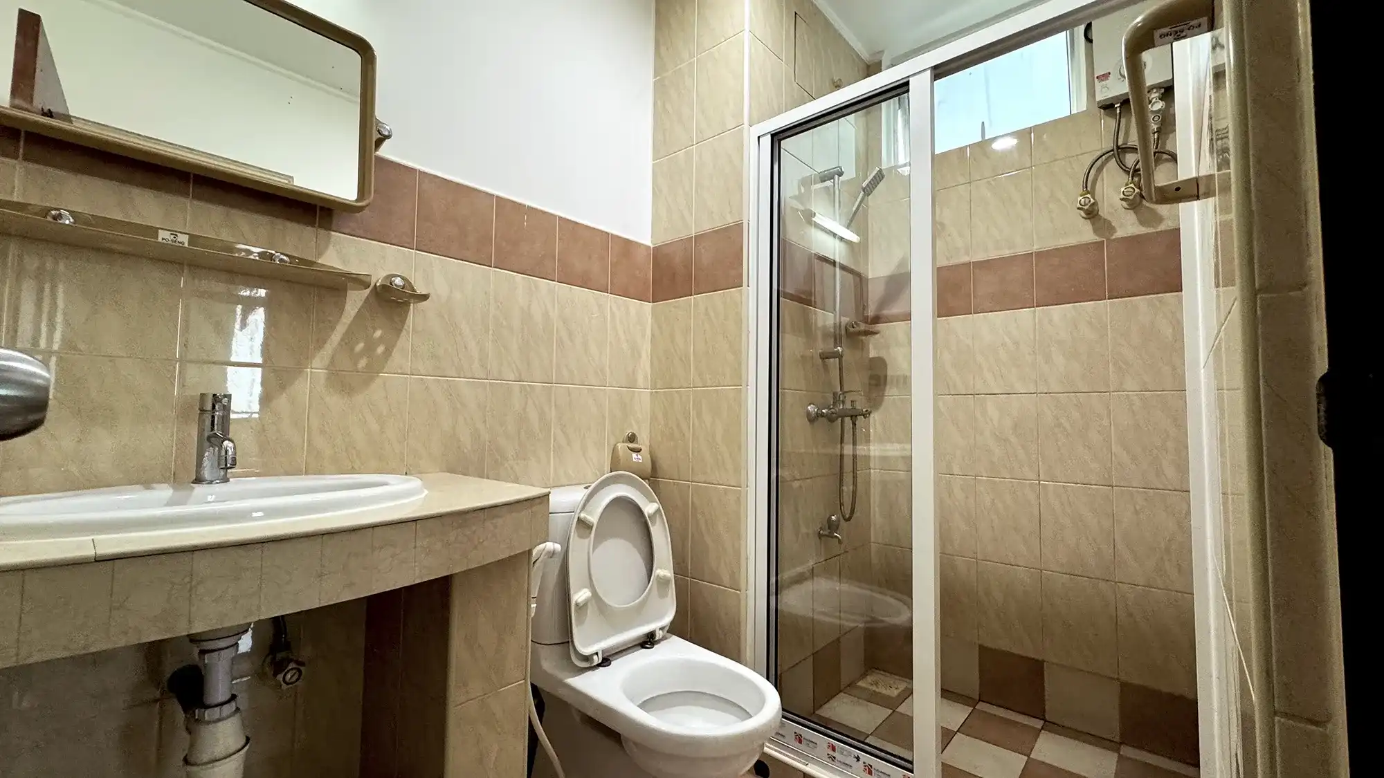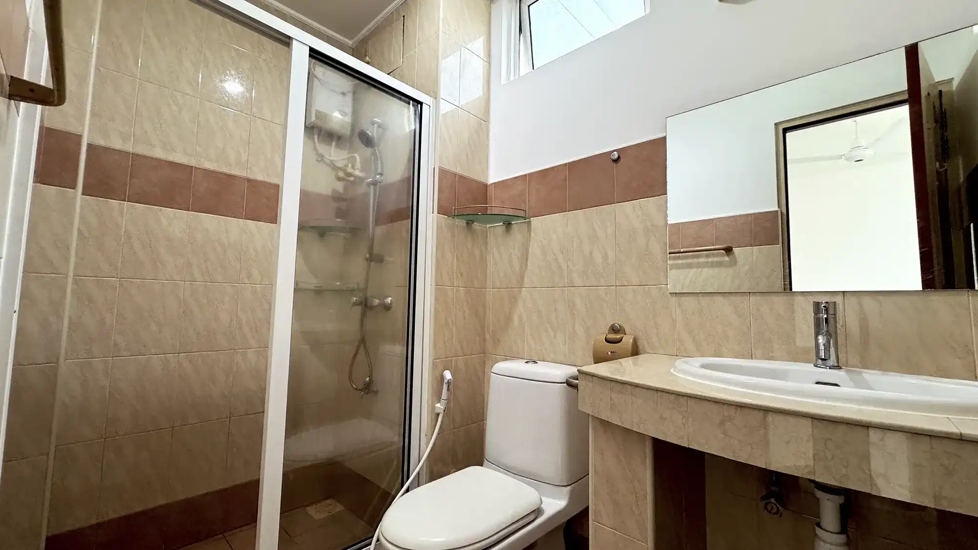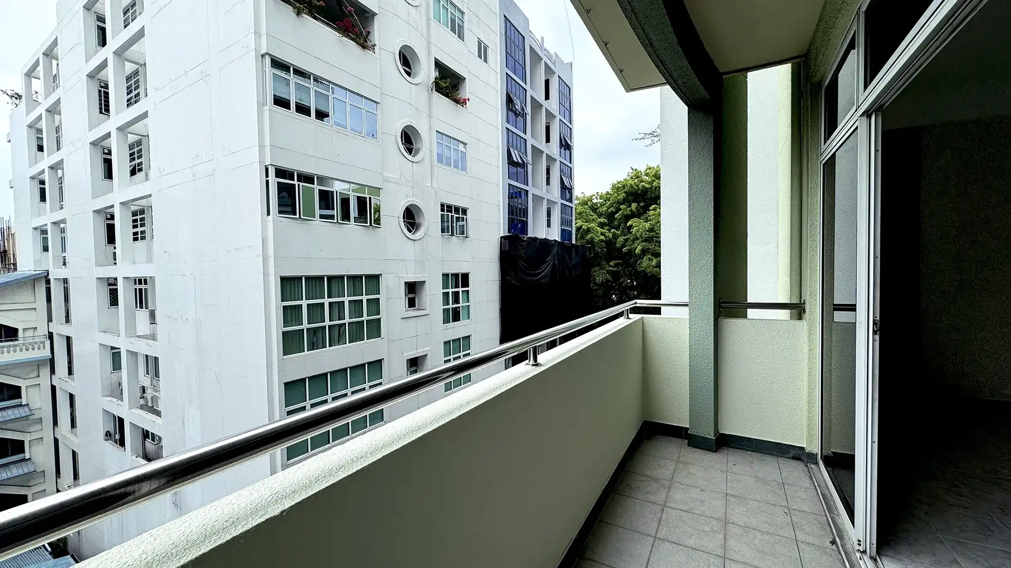 The apartment has been recently renovated and features three bedrooms with attached bathrooms, plus a maid’s room.