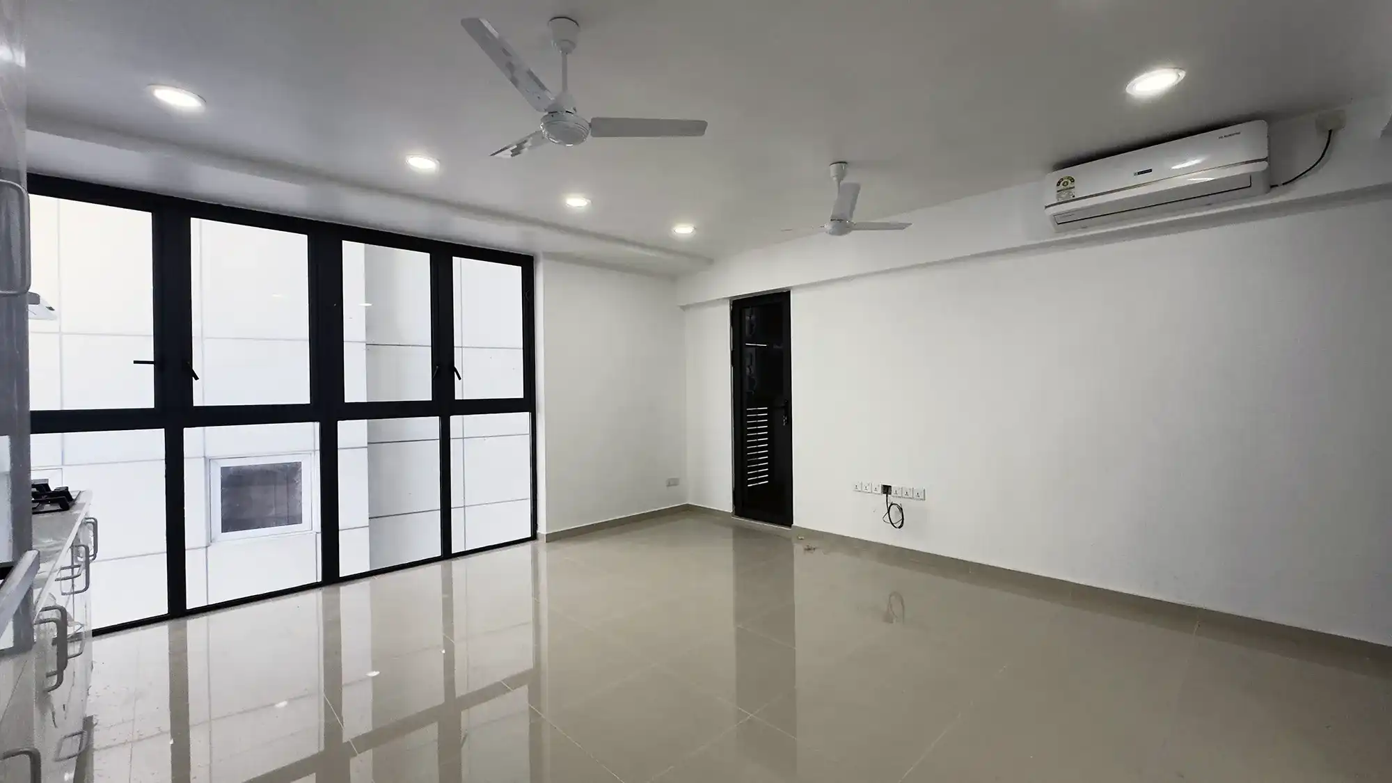 The apartment includes an attached bathroom, a fully fitted kitchen with essential appliances and a dedicated laundry area. The unit is equipped with double-glazed windows, providing enhanced sound insulation from city noise, improved cooling efficiency and greater energy savings ensuring a more peaceful and comfortable living experience. While the apartment does not include a balcony, it offers fully air-conditioned interiors and a modern layout designed for efficient city living.